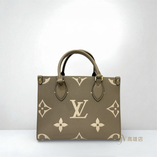 JK2001 LV包包 斑鳩灰牛皮壓紋金釦On The Go PM手提斜背托特包M45779(喬萱高雄店)