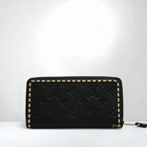 JA2041 LV皮夾 黑色牛皮壓紋滾白邊Zippyㄇ拉長夾M64805 (桃園店)