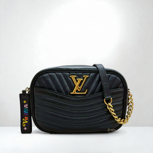 JA2055 LV包包 黑金牛皮縫線彩色皮標new wave拉鍊相機包M53682 (桃園店)