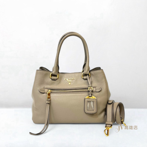 JP0546 Prada包包大象灰牛皮金釦手提斜背包 1BG044(喬萱高雄店)