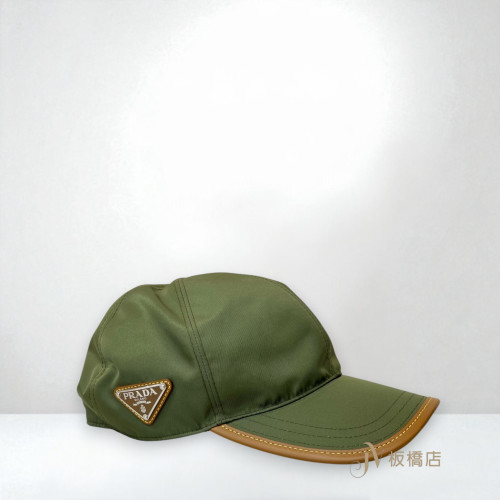JS1152 PRADA帽子 軍綠色尼龍駝色包邊棒球帽2HC274 (板橋店)