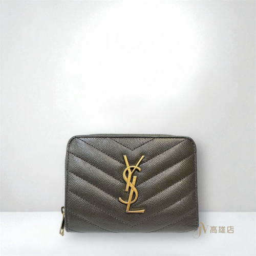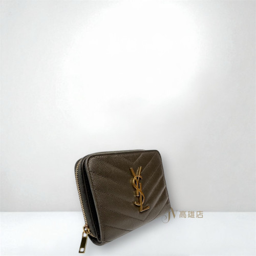 JK2099 YSL短夾 大象灰魚子醬金釦前後釦6卡短夾(高雄店)