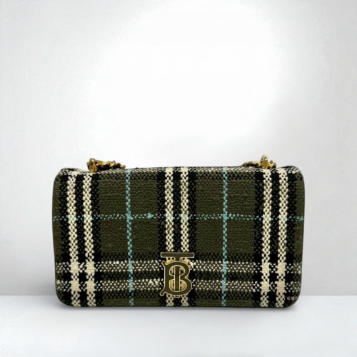 • JS1274 Burberry包包 橄欖綠毛呢格紋 Mini Lola 下蓋斜背包 (板橋店)