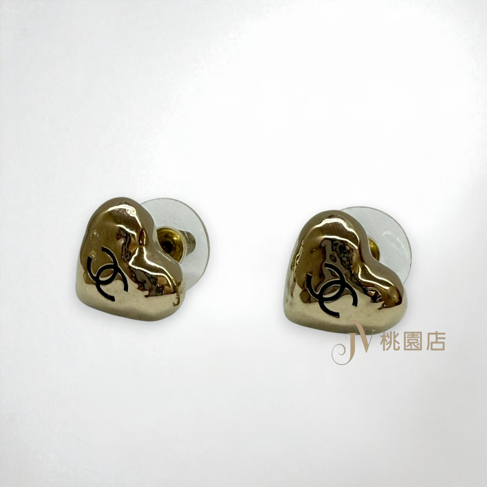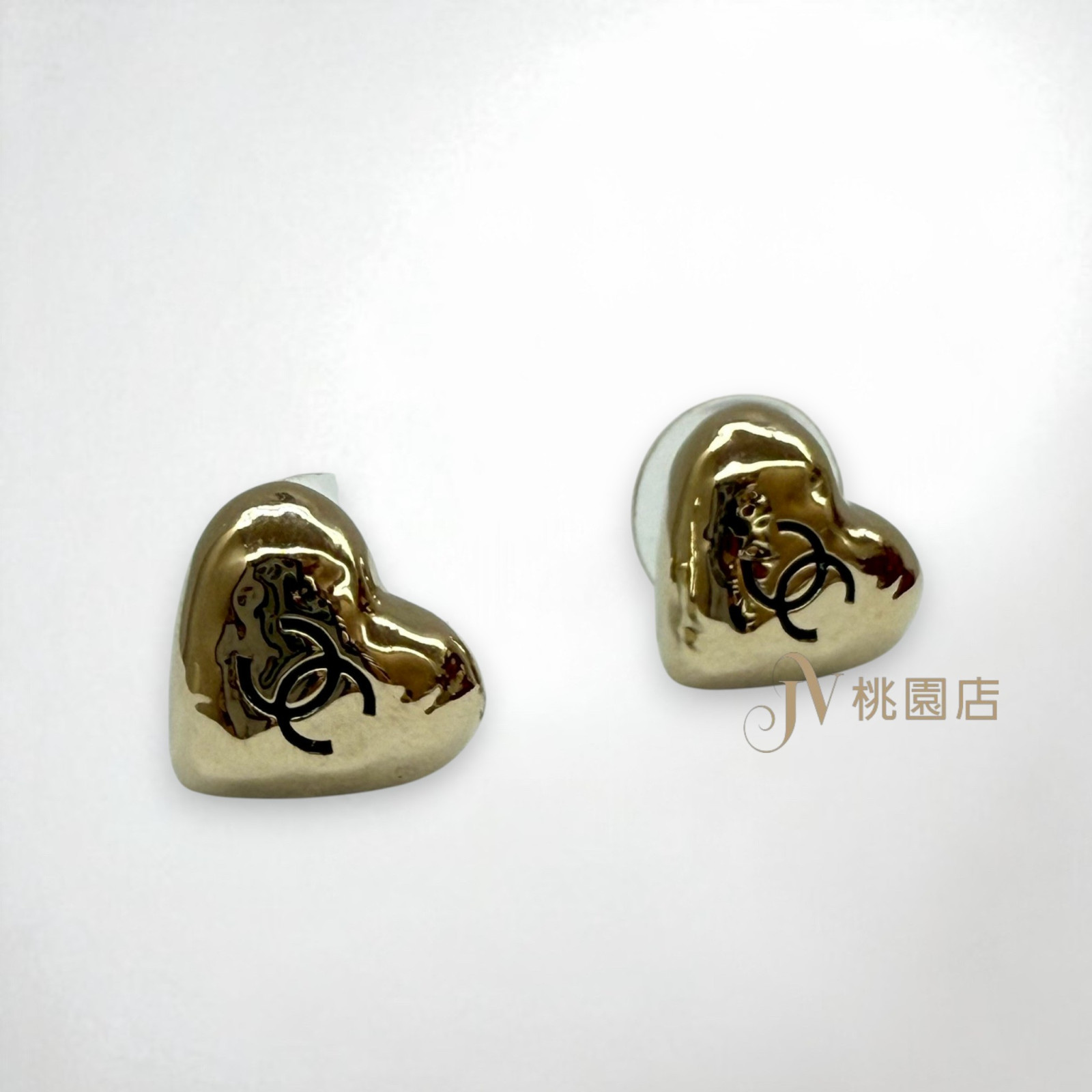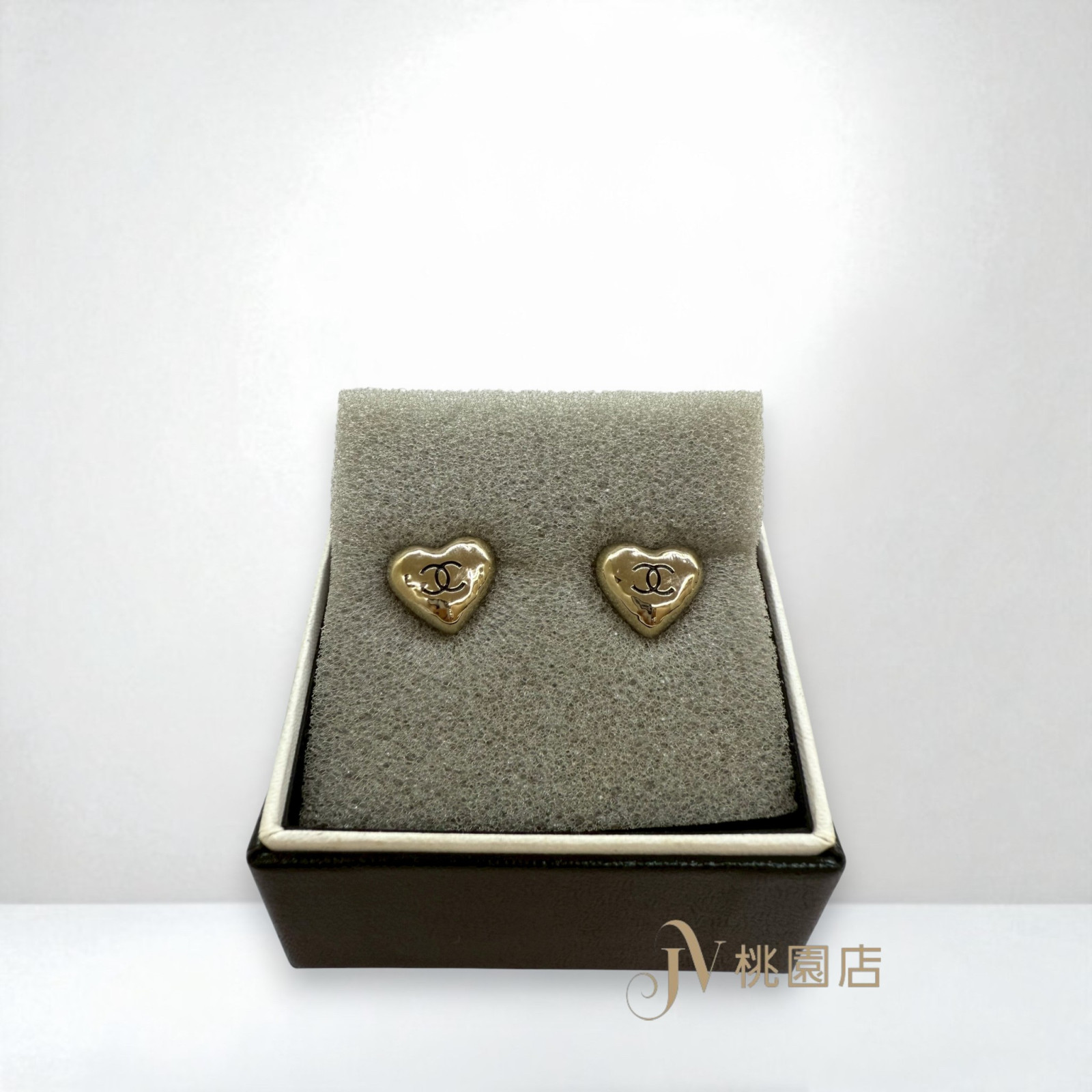 JA0019 CHANEL耳環 淡金色愛心造型針式耳環 (桃園店)