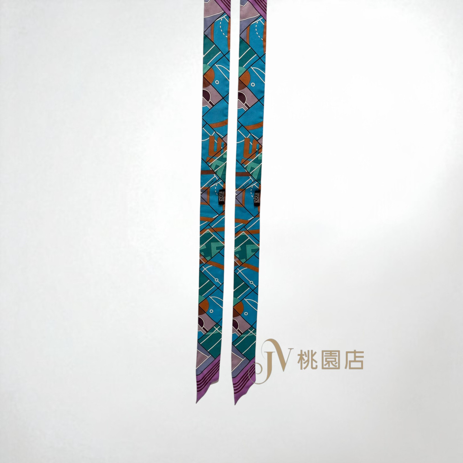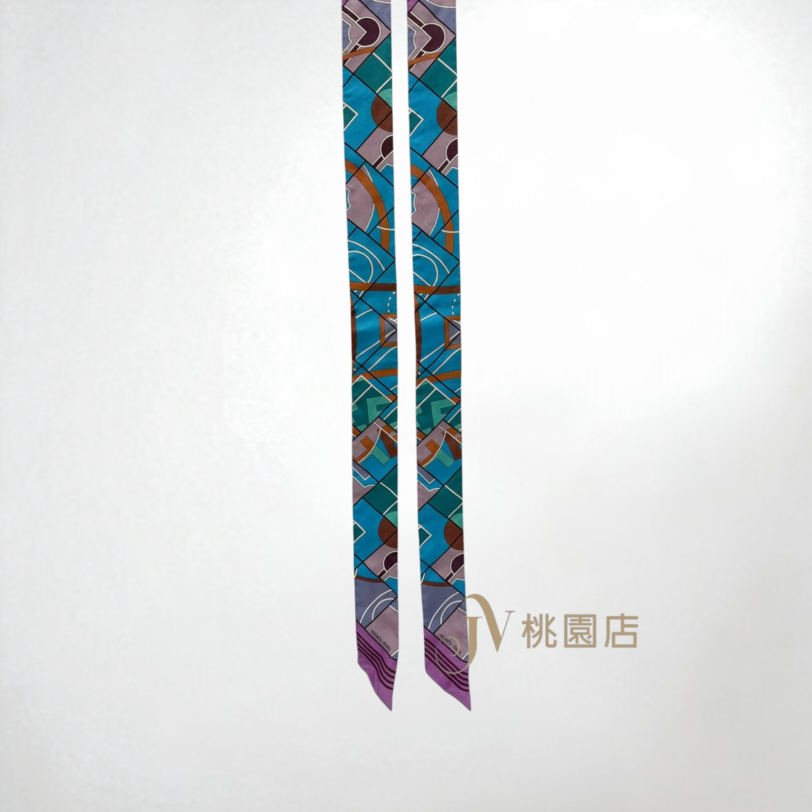 路徑: 首頁 / 精品賣場 / Hermes / Hermes-配件 / JA0293 HERMES絲巾 藍紫綠字母LOGO幾何造型 TWILLY一對 (桃園店)...