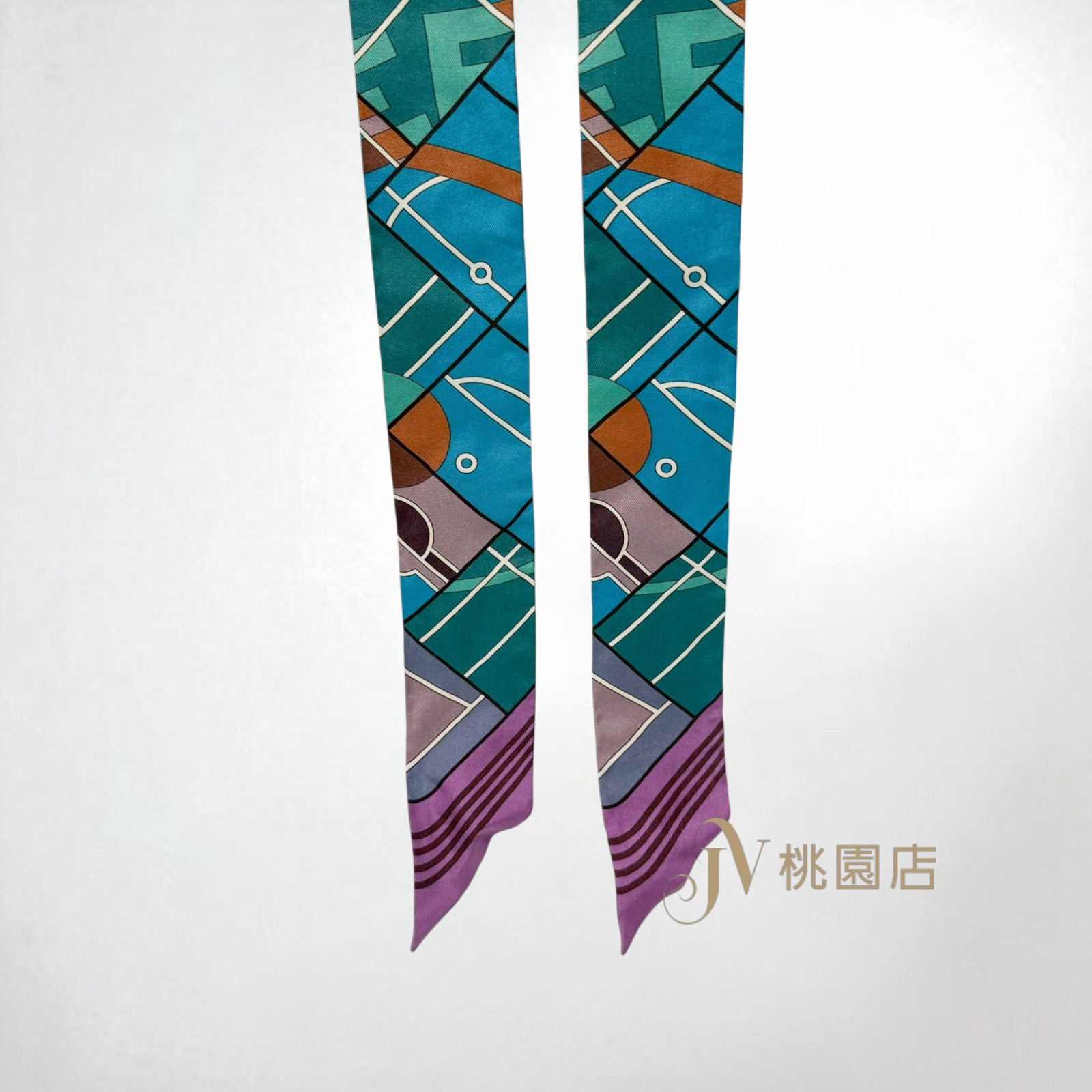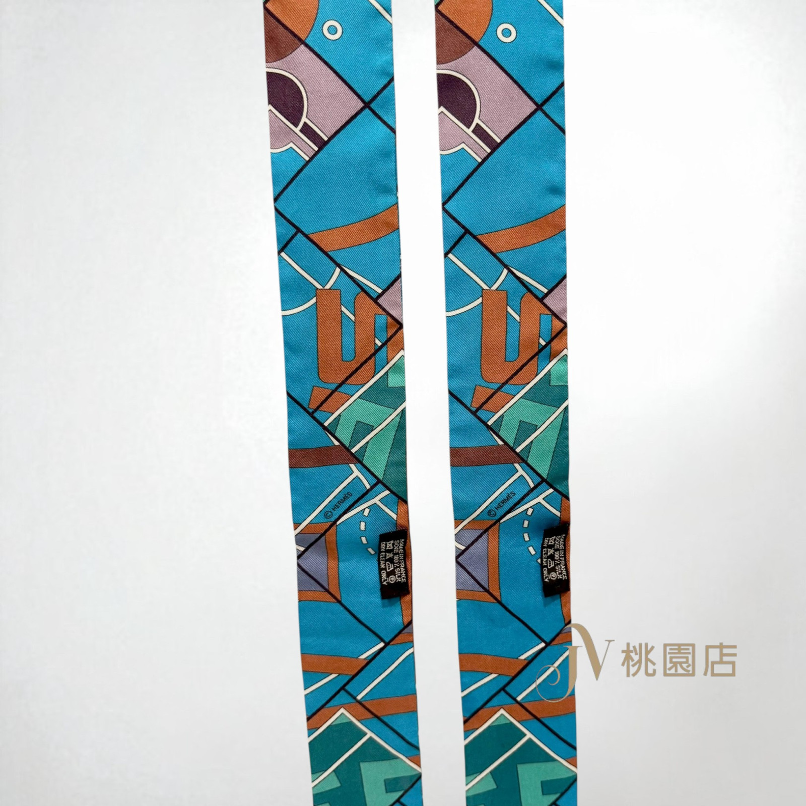 JA0293 HERMES絲巾 藍紫綠字母LOGO幾何造型 TWILLY一對 (桃園店)