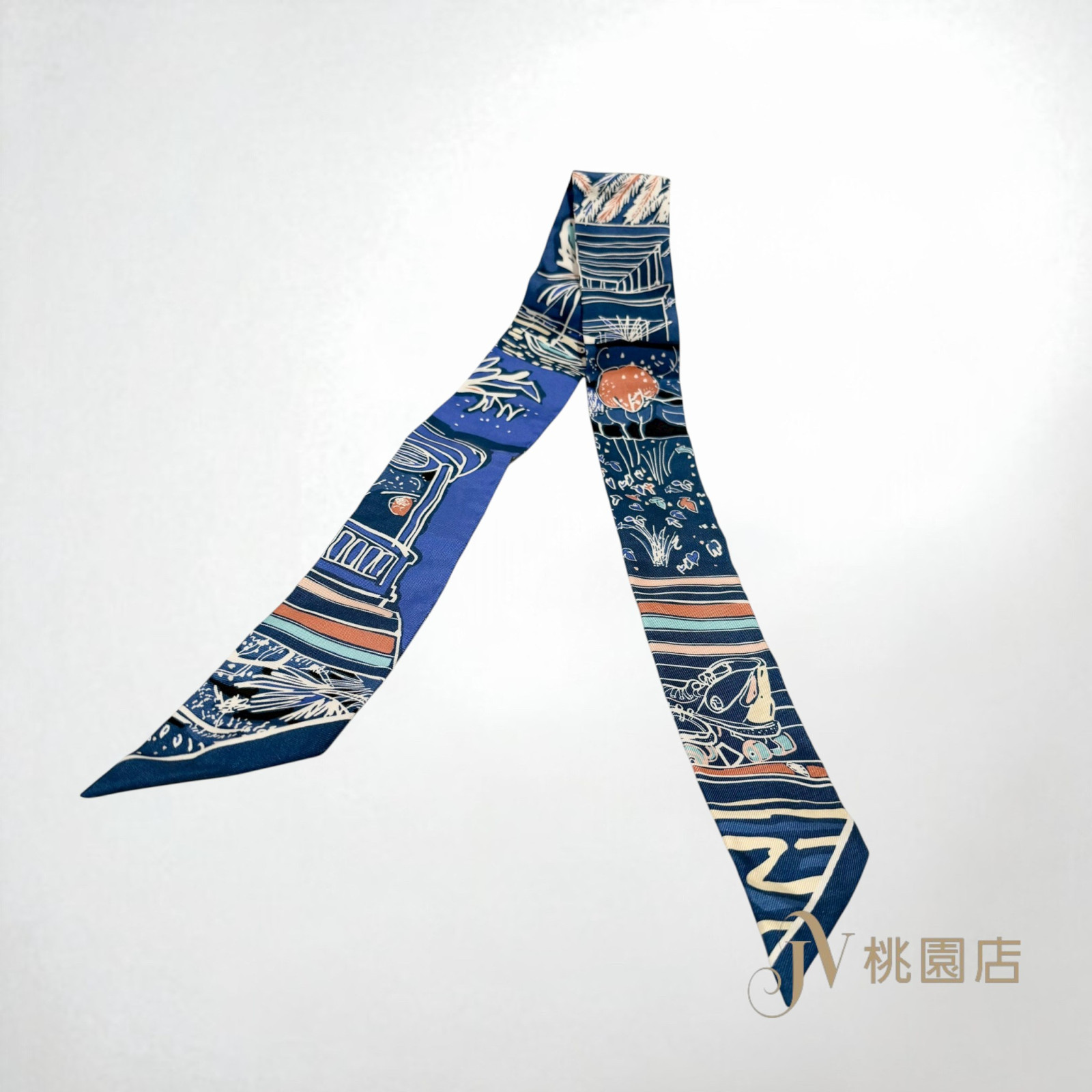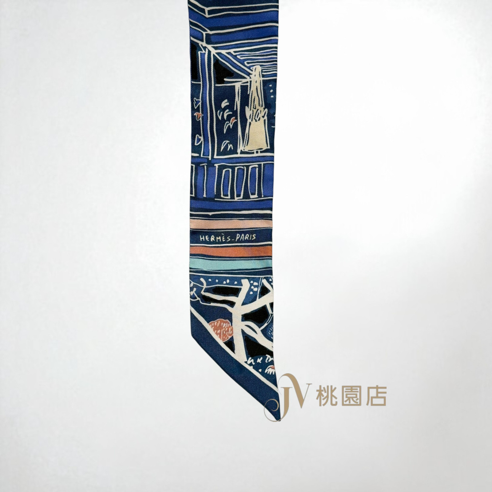 JA0432 HERMES絲巾 藍底白花燕子圖單條TWILLY (桃園店)