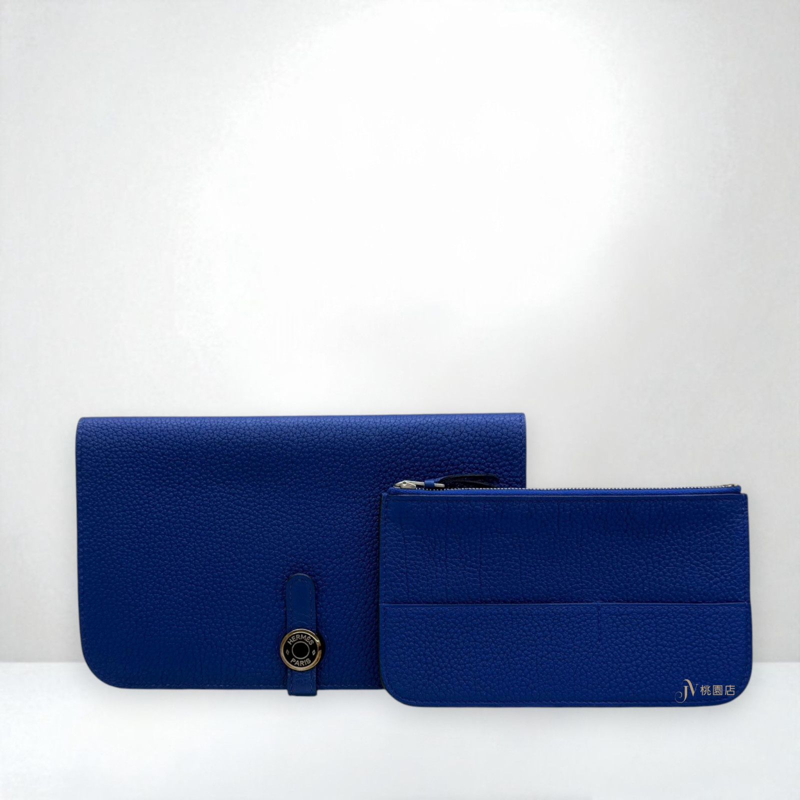 JA0890 HERMES皮夾 7T電光藍銀釦TOGO皮DOGON子母長夾 (桃園店)