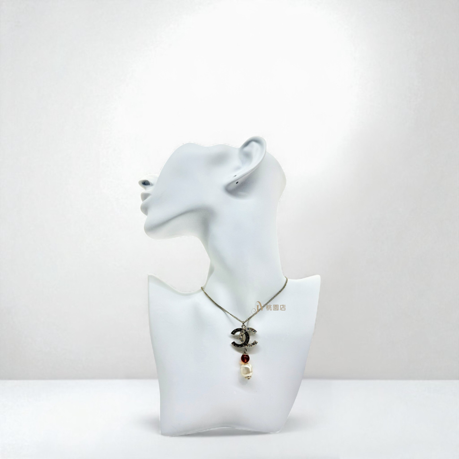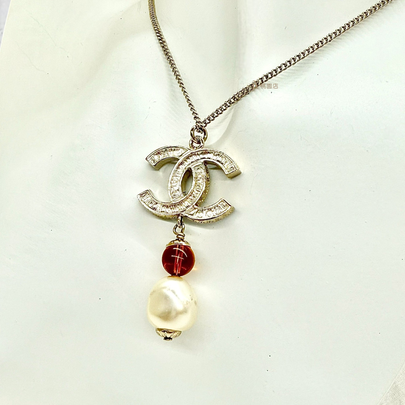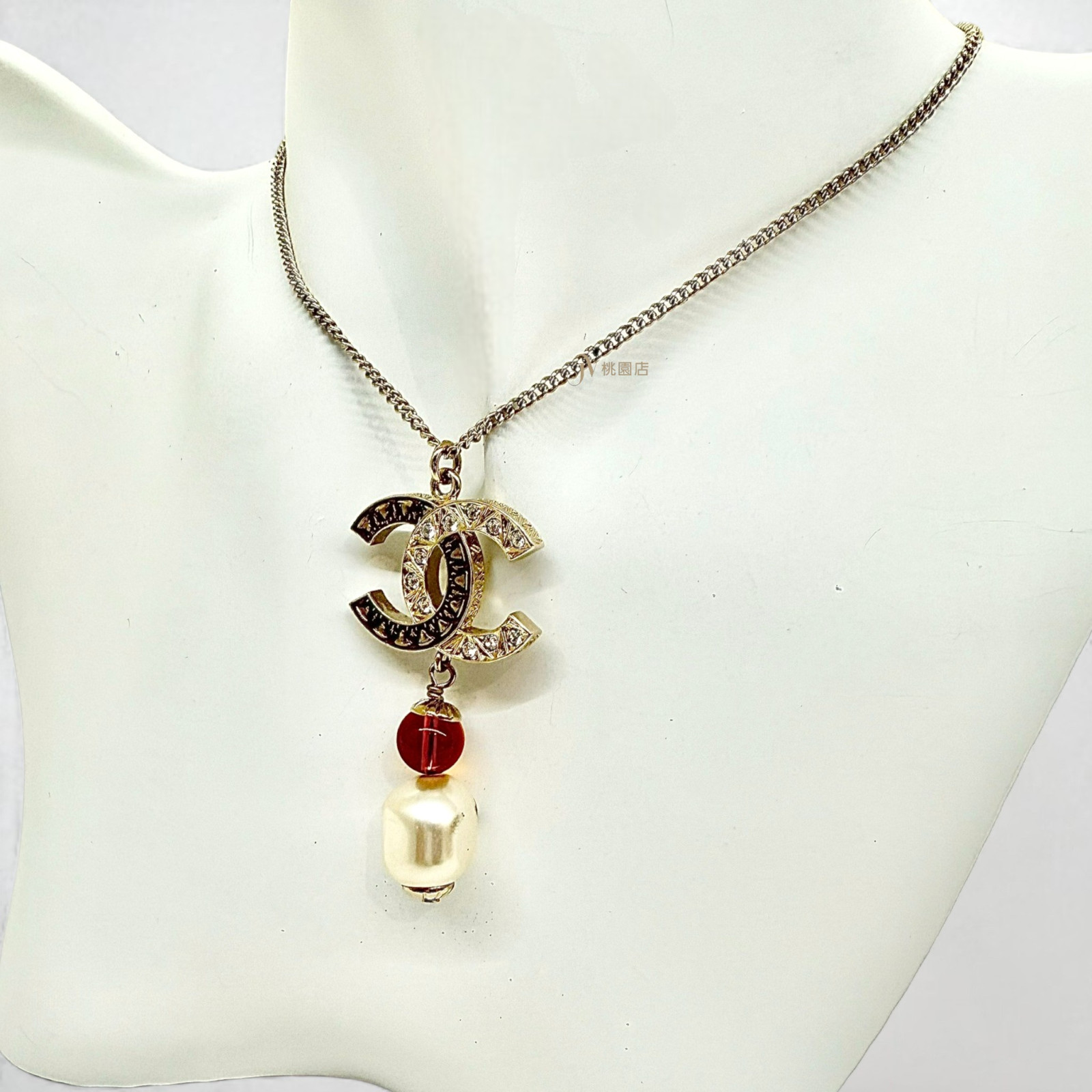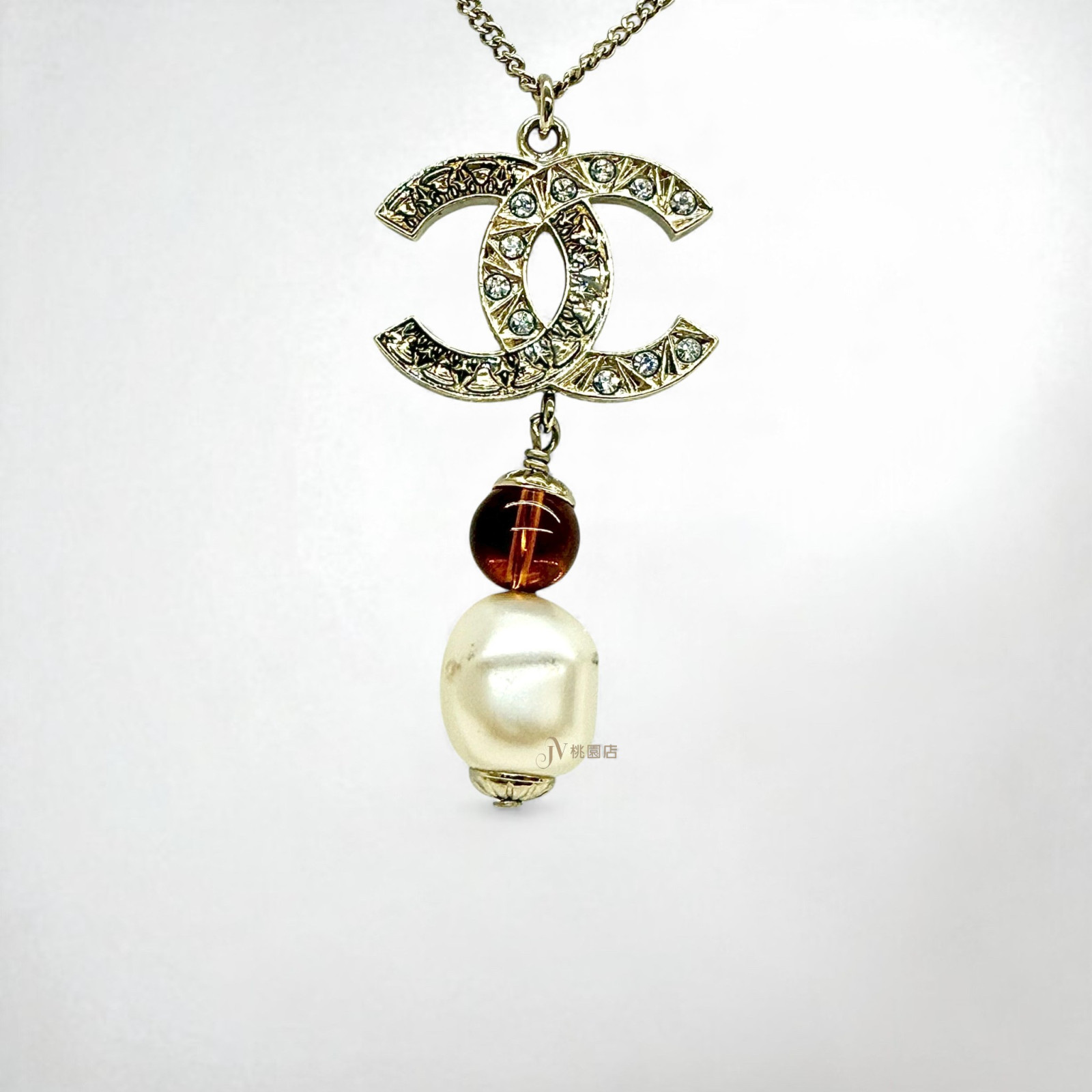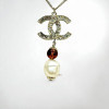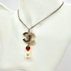 JA1277 CHANEL項鍊 雙C雙色雕刻拚水鑽單顆珍珠項鍊 (桃園店)