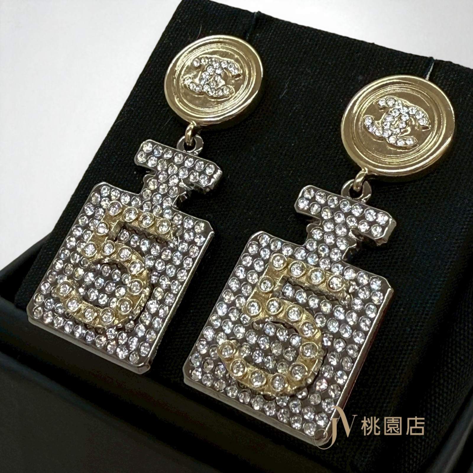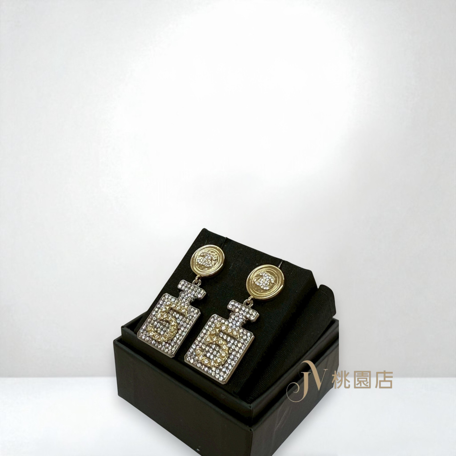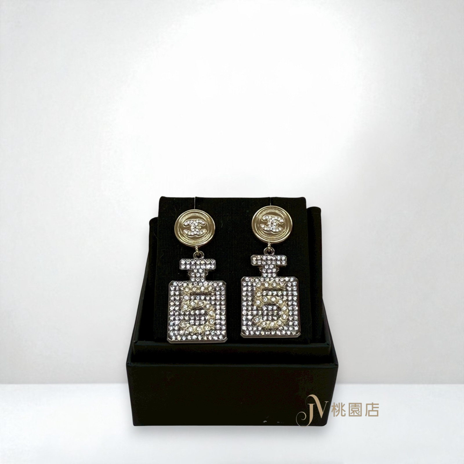JA1505 CHANEL耳環 銀色水鑽5號香水造型耳環 (桃園店)