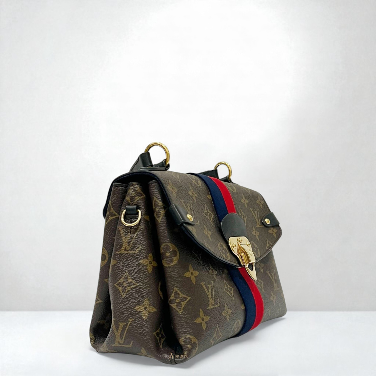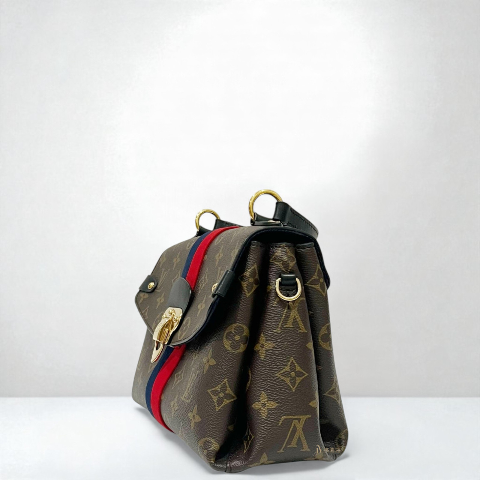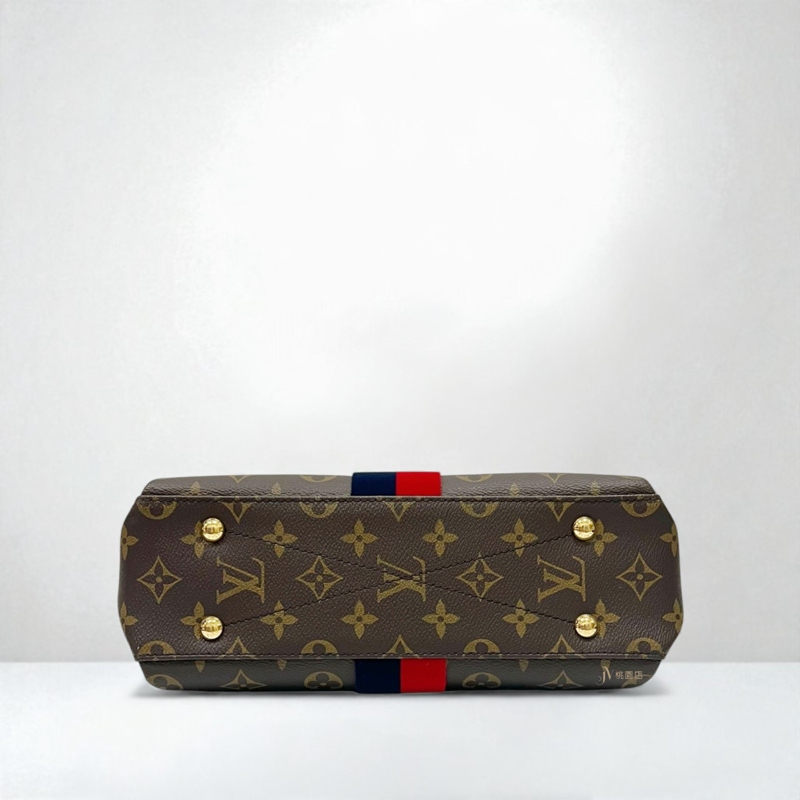 JA1561 LV包包 原花拼藍紅絨布直條紋bond georges BB手提側背包/M43866 (桃園店)