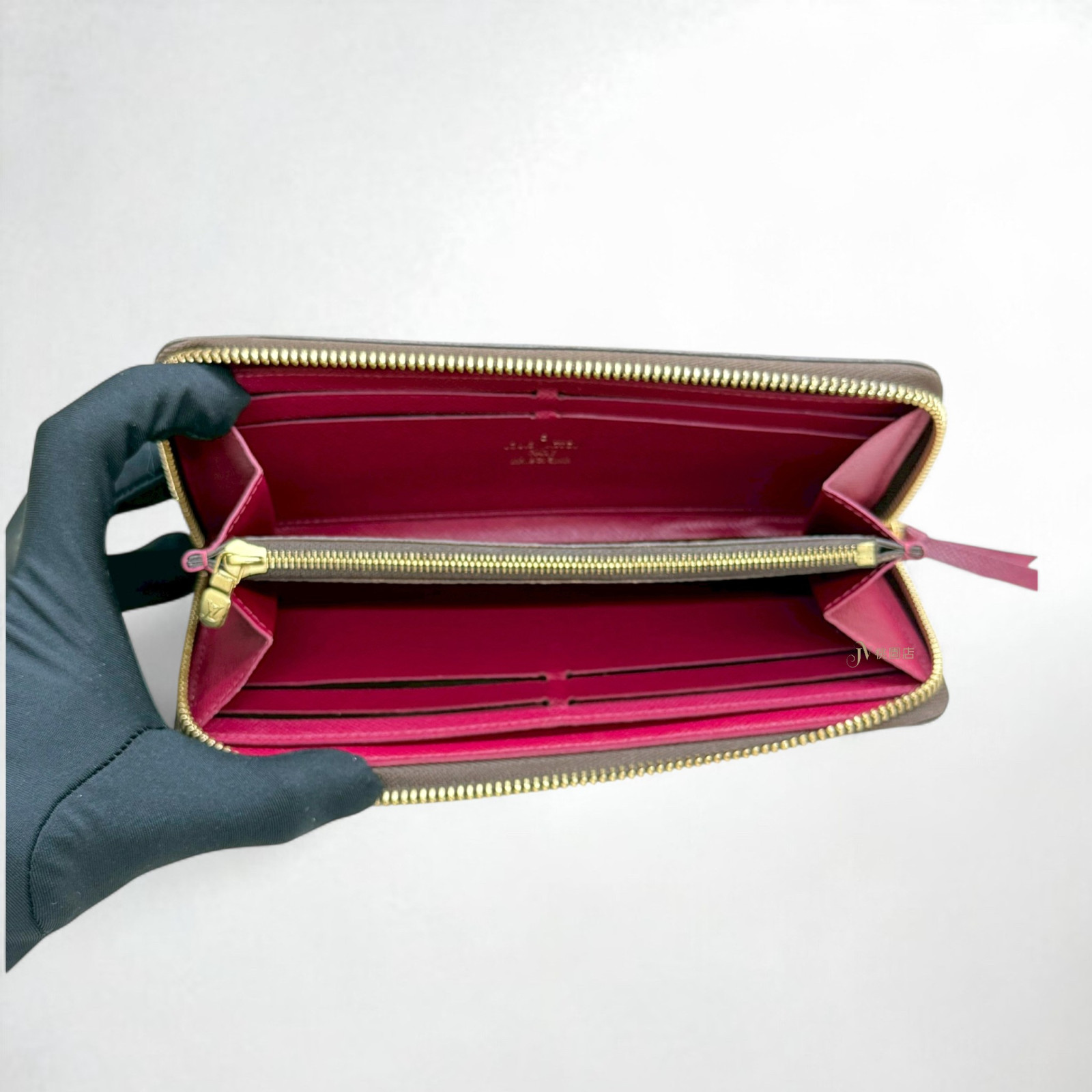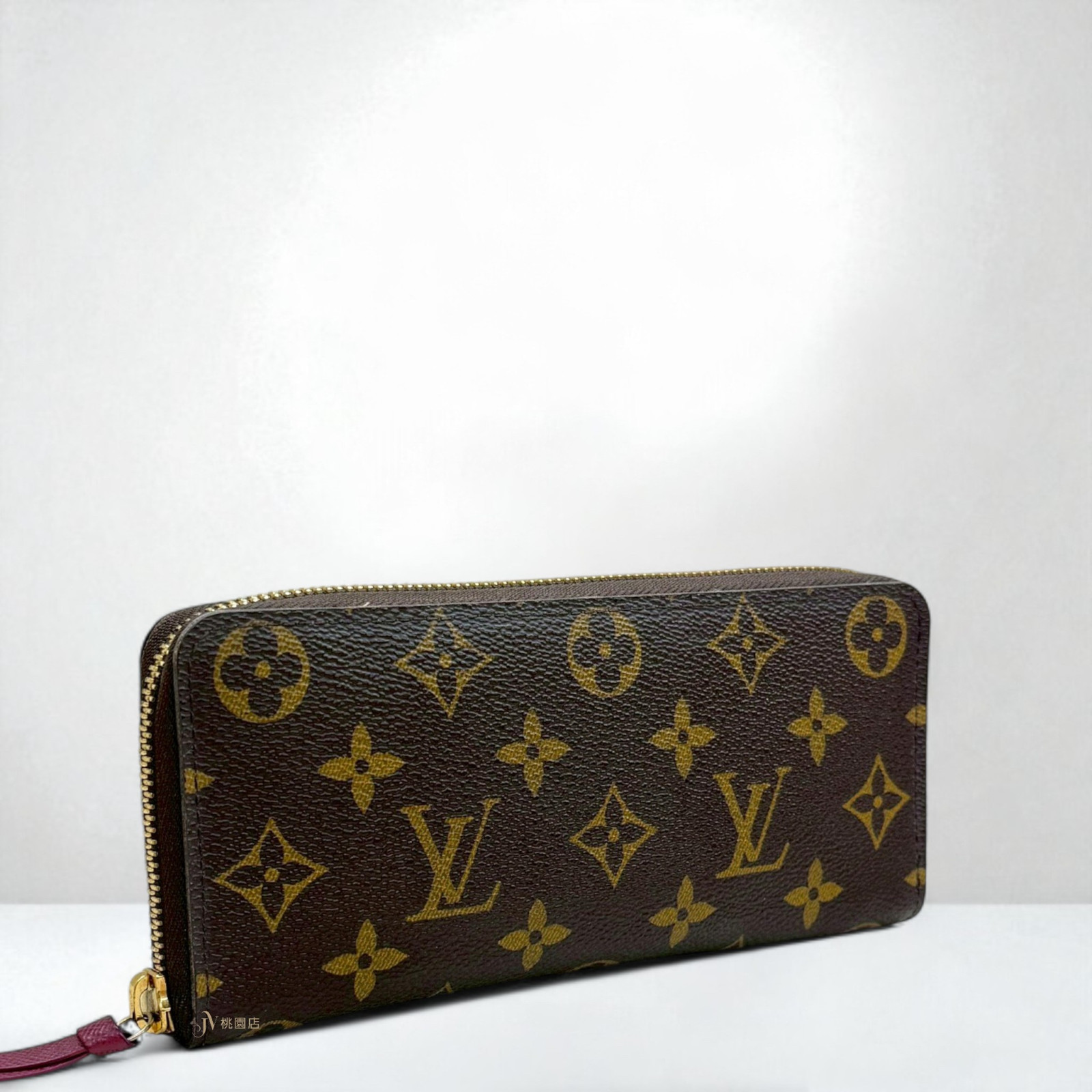 JA1587 LV皮夾 原花拼桃紅色內裡Clemenceㄇ拉窄版長夾M60742 (桃園店)