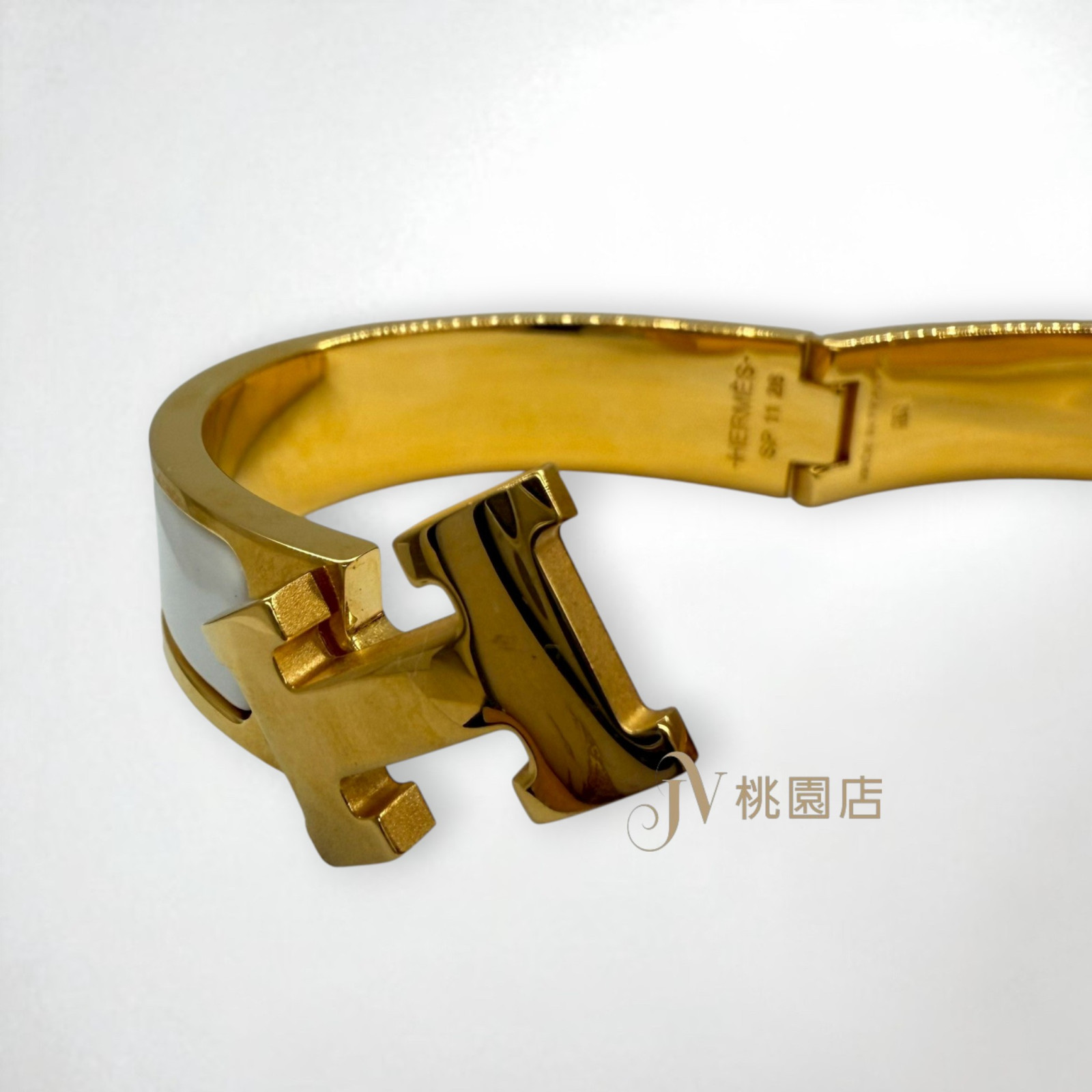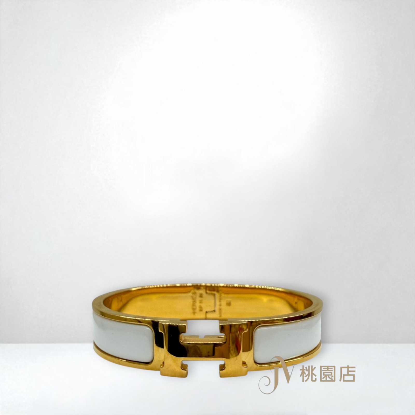 路徑: 首頁 / 精品賣場 / Hermes / Hermes-珠寶及飾品 / JA1612 HERMES手環 白色金釦CLIC H琺瑯手環PM (桃園店)