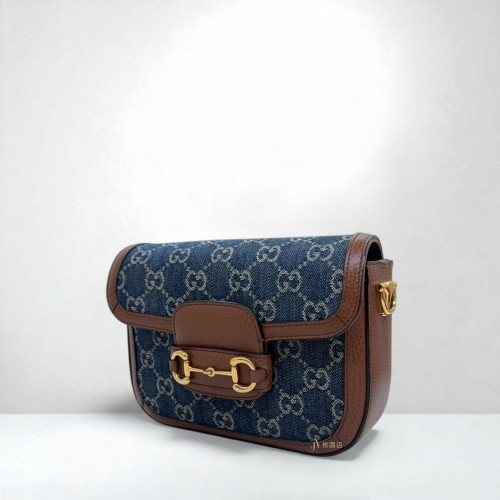 • JA1863 GUCCI包包 丹寧牛仔布 Horsebit 1955 迷你側背包658574 (桃園店)