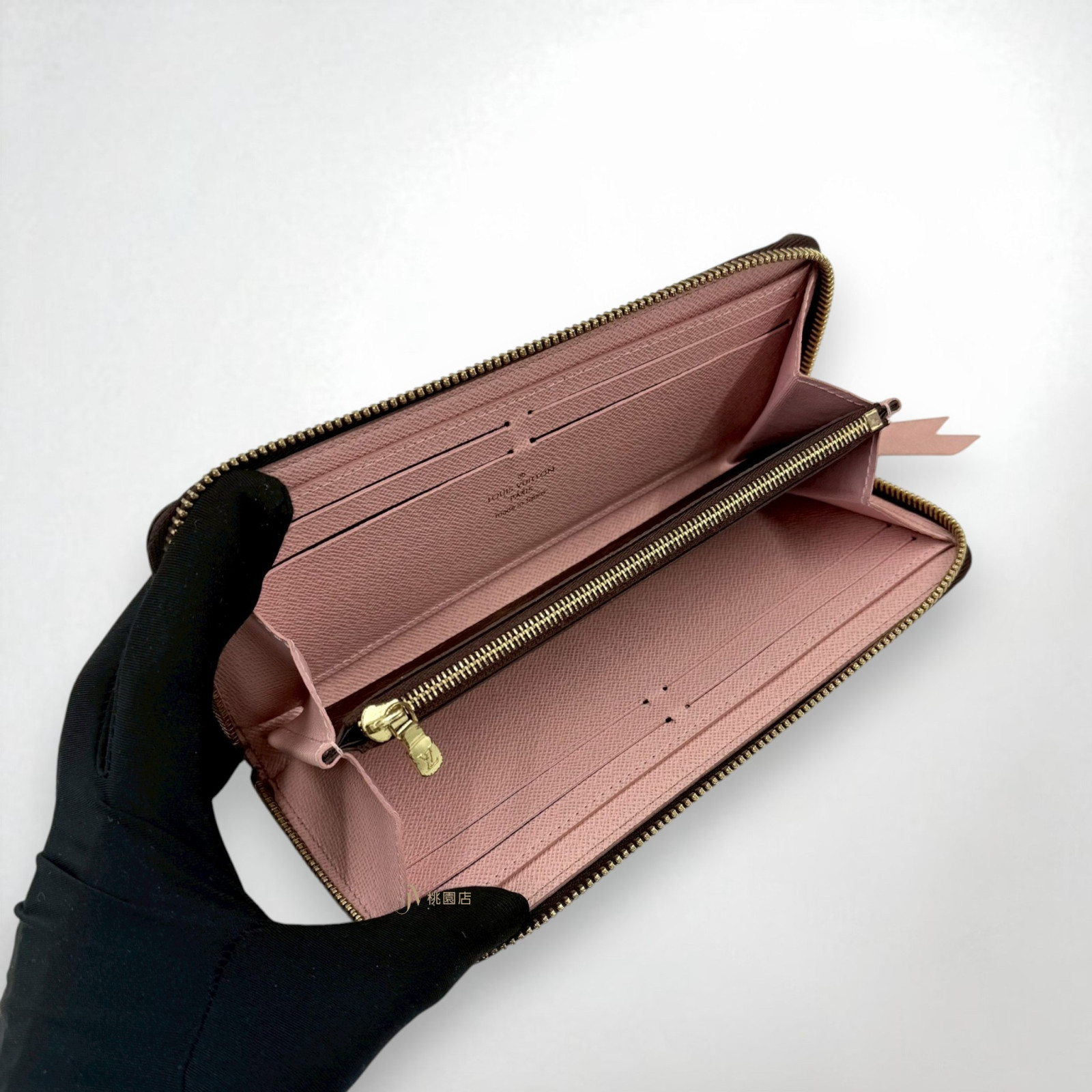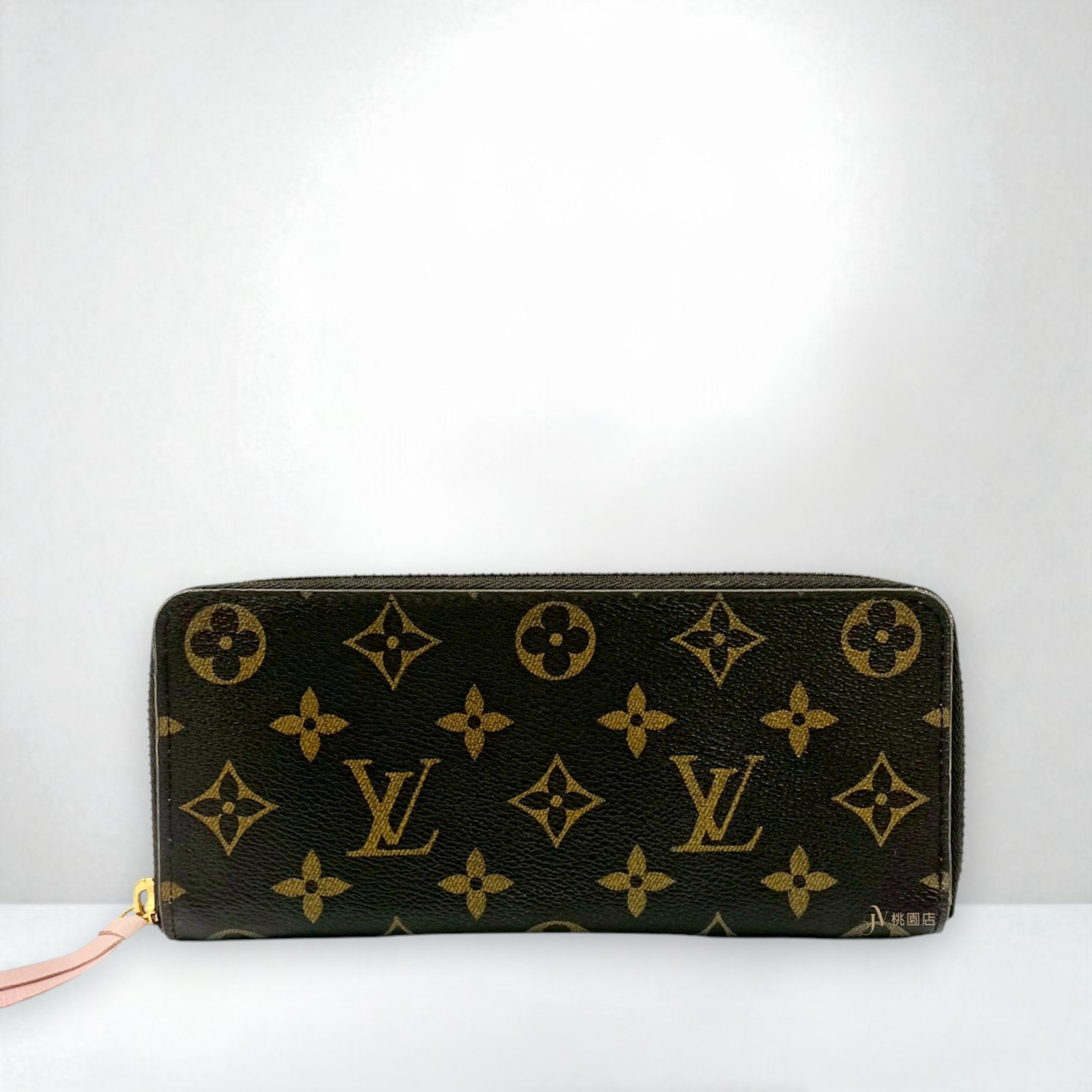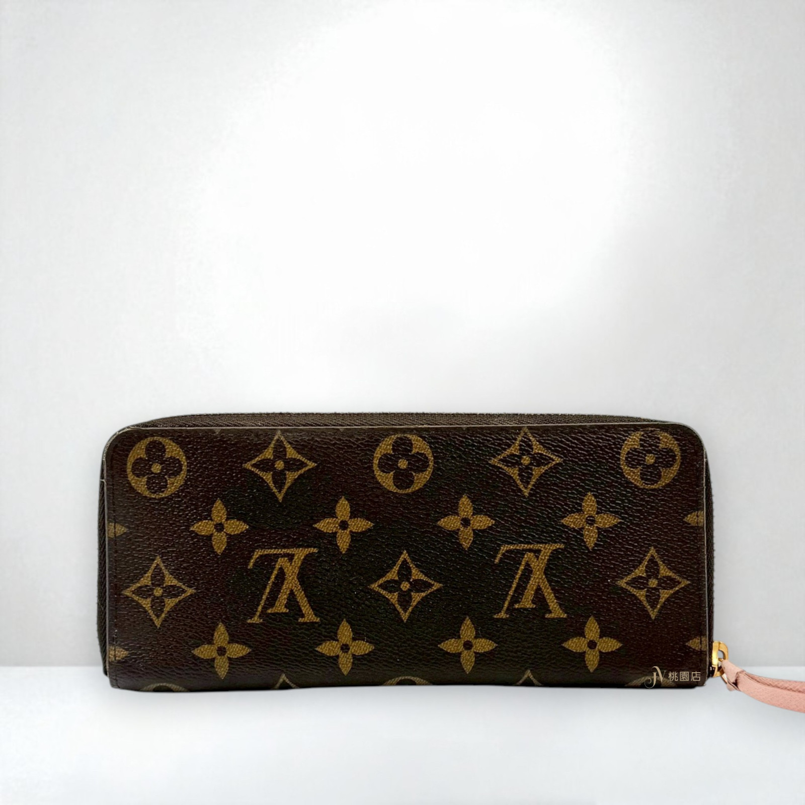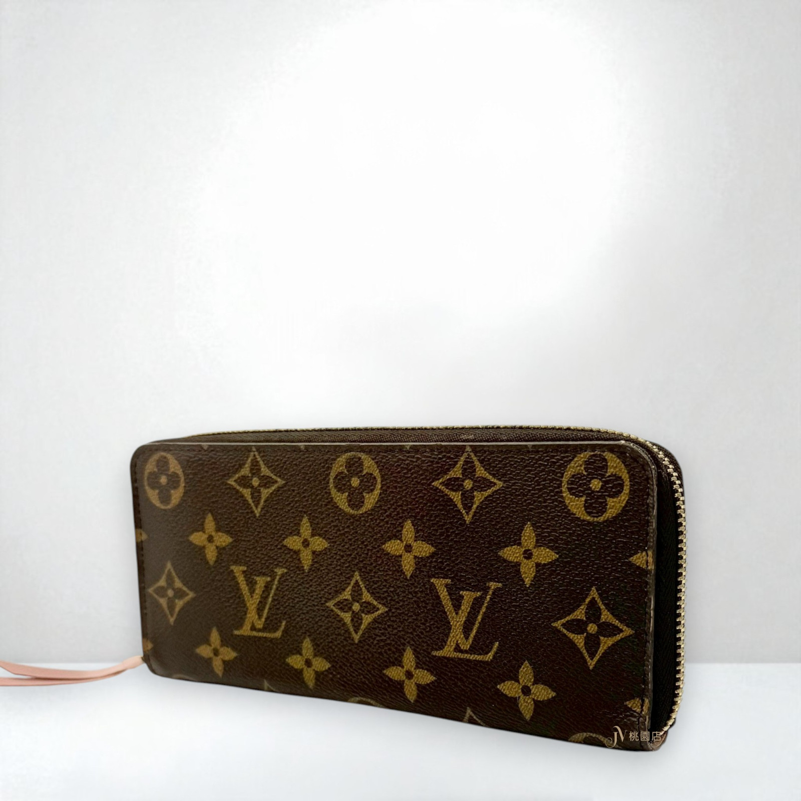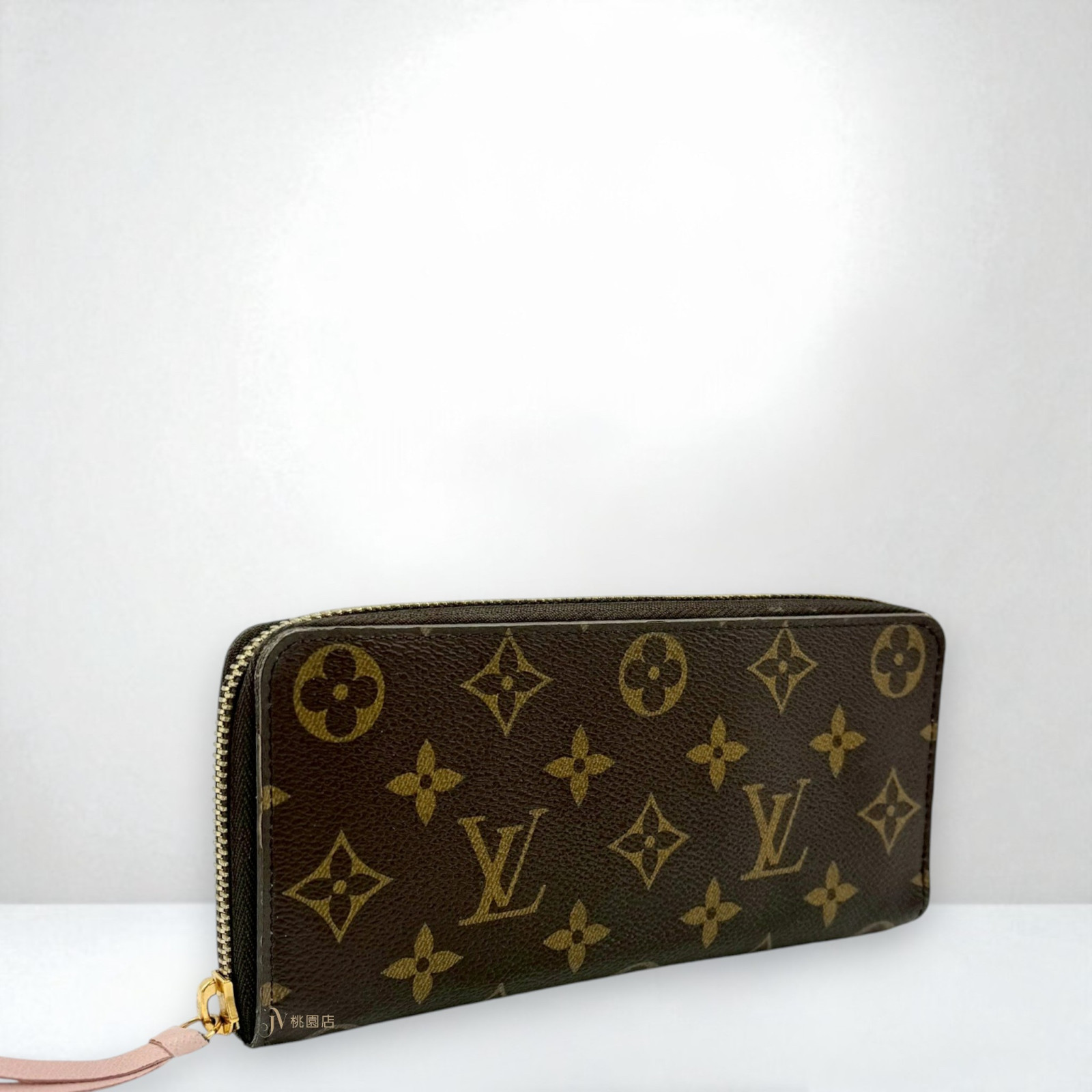 JA1804 LV皮夾 原花拼粉色內裡Clemence窄版ㄇ拉長夾M61298 (桃園店)