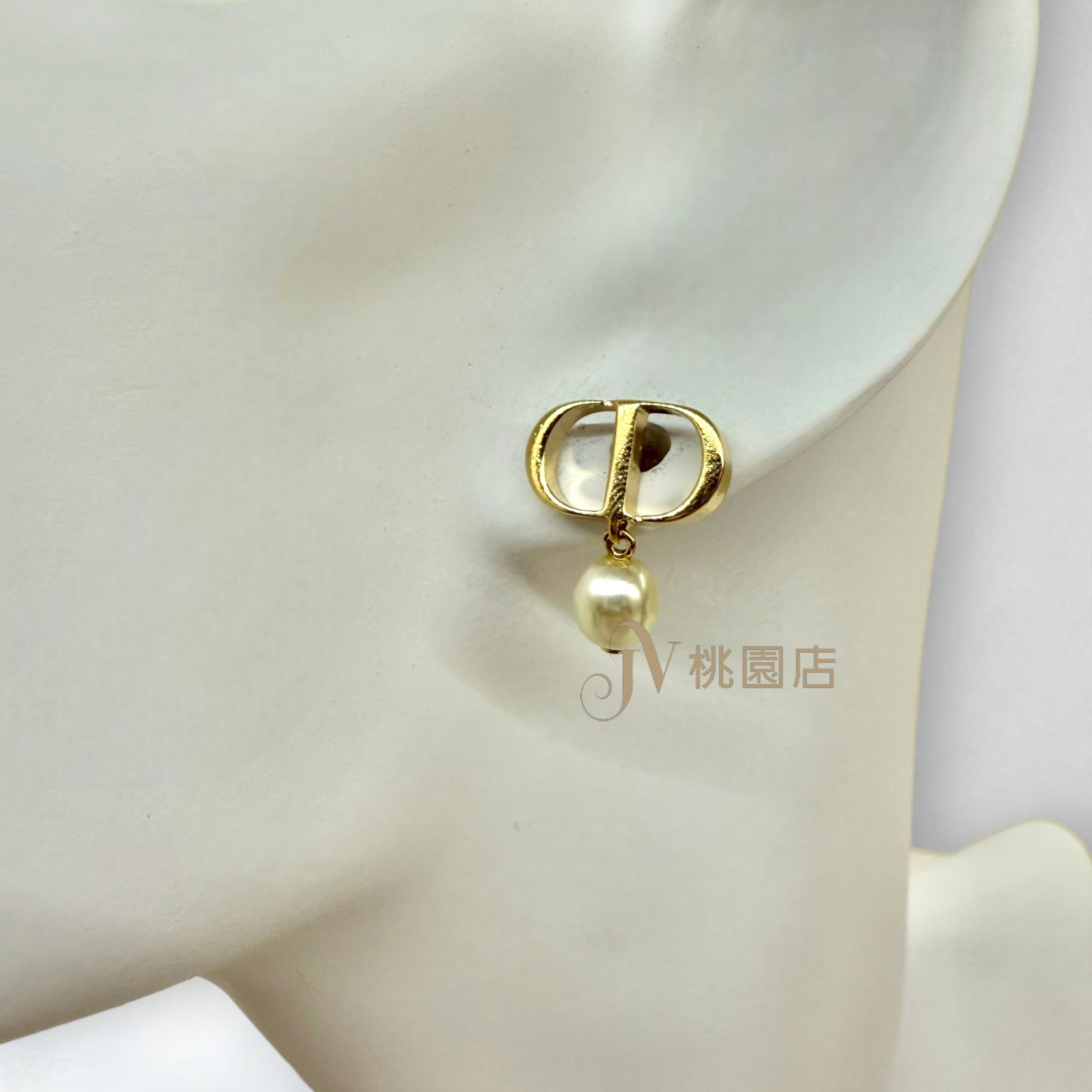 JA1843 DIOR耳環 金色垂墜珍珠Petit CD 耳環E1520PTCRS (桃園店)