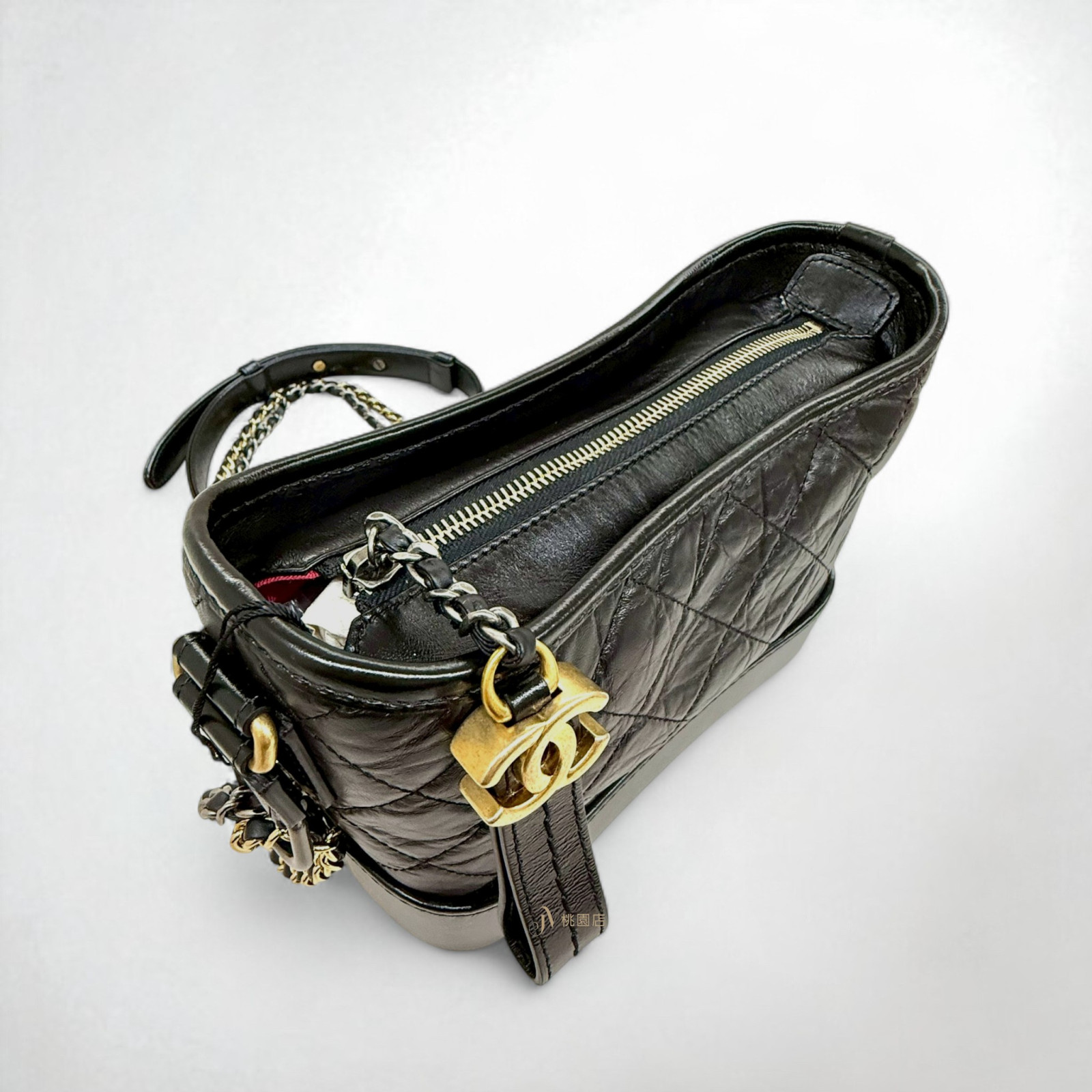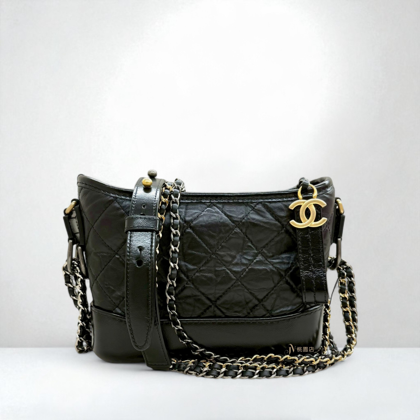 JA1846 CHANEL包包 黑金菱格紋揉製牛皮小號流浪包A91810 (桃園店)