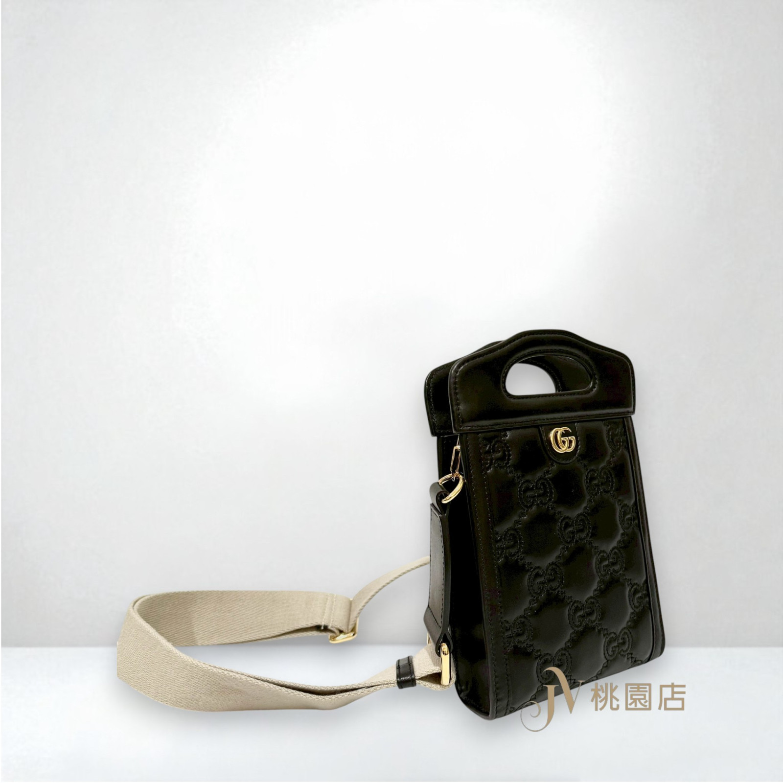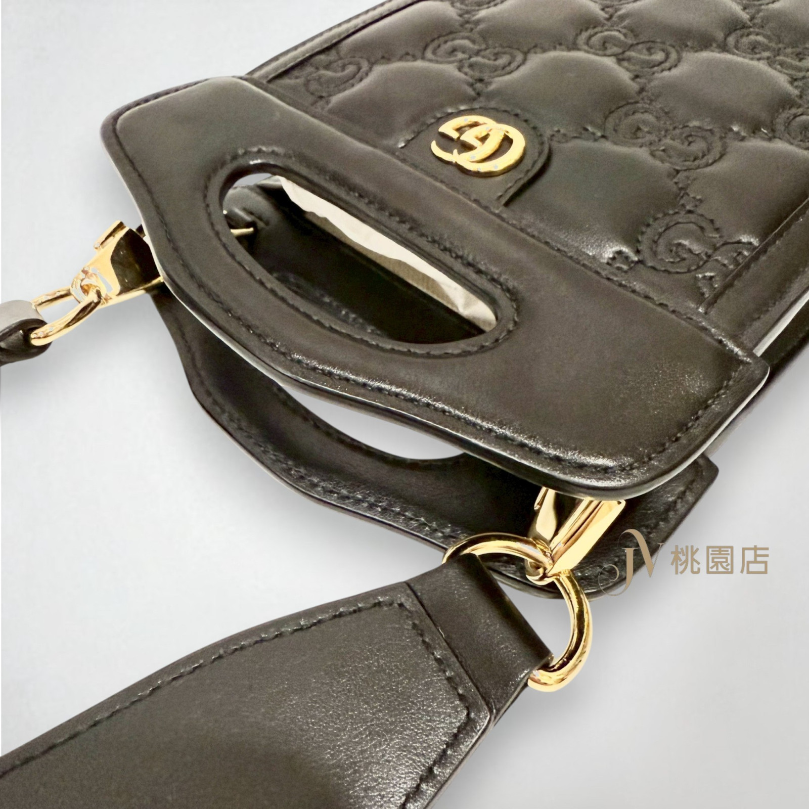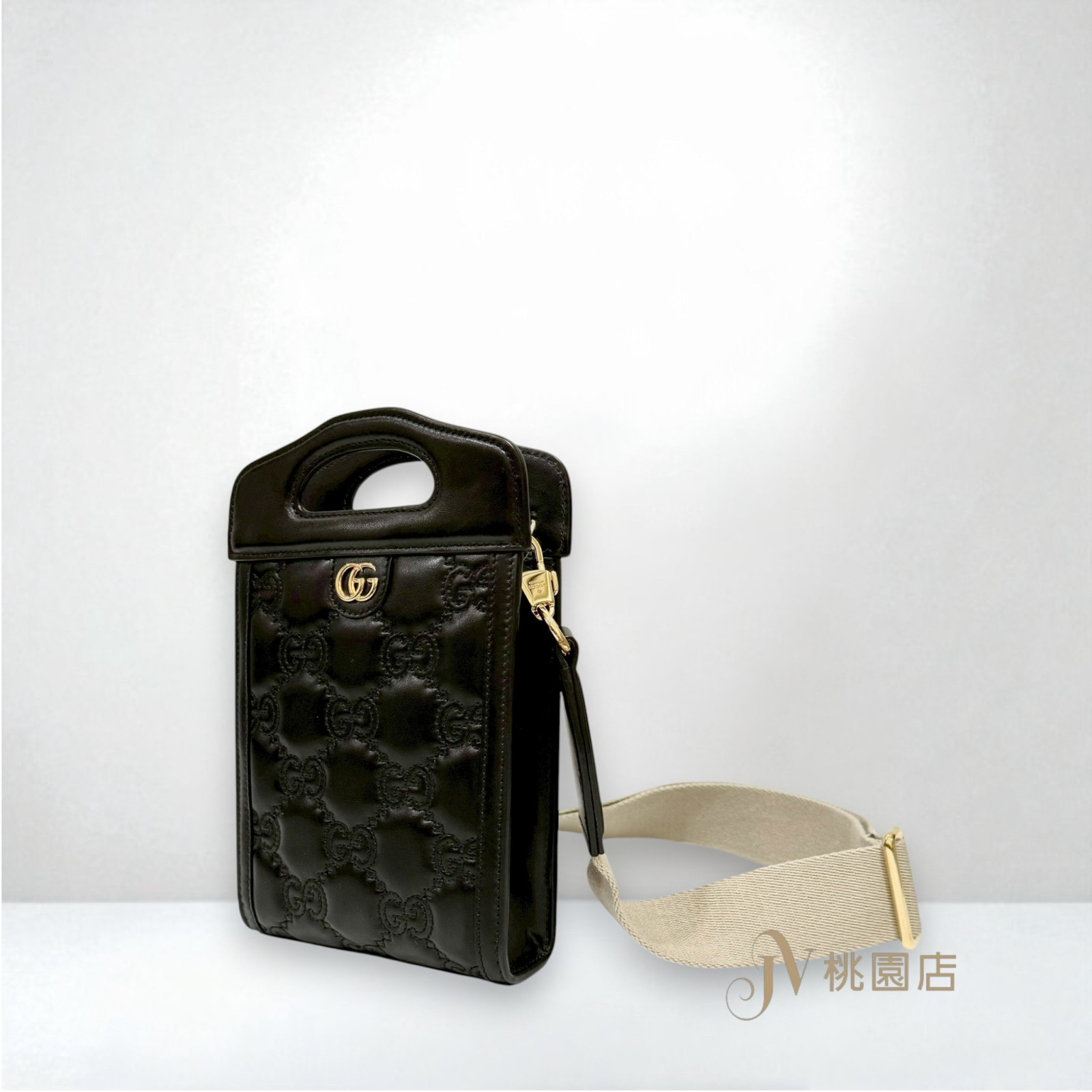JA1862 GUCCI包包 黑金牛皮壓紋縫線直立手機包723776 (桃園店)