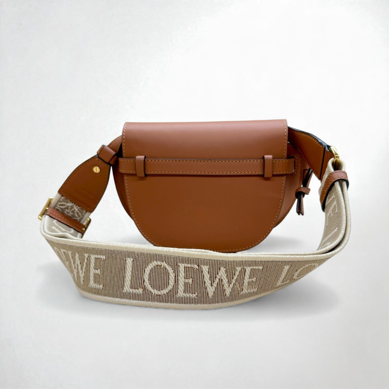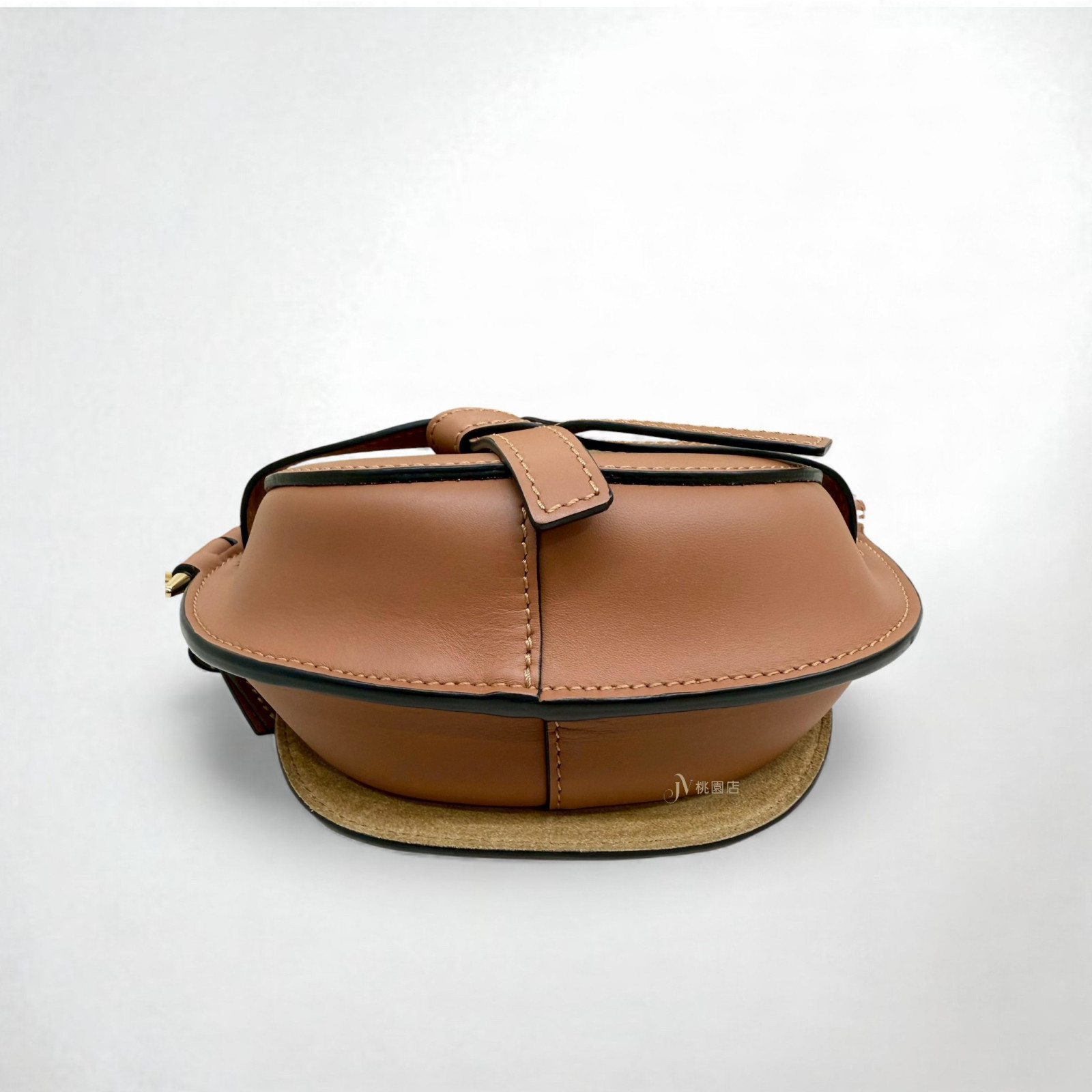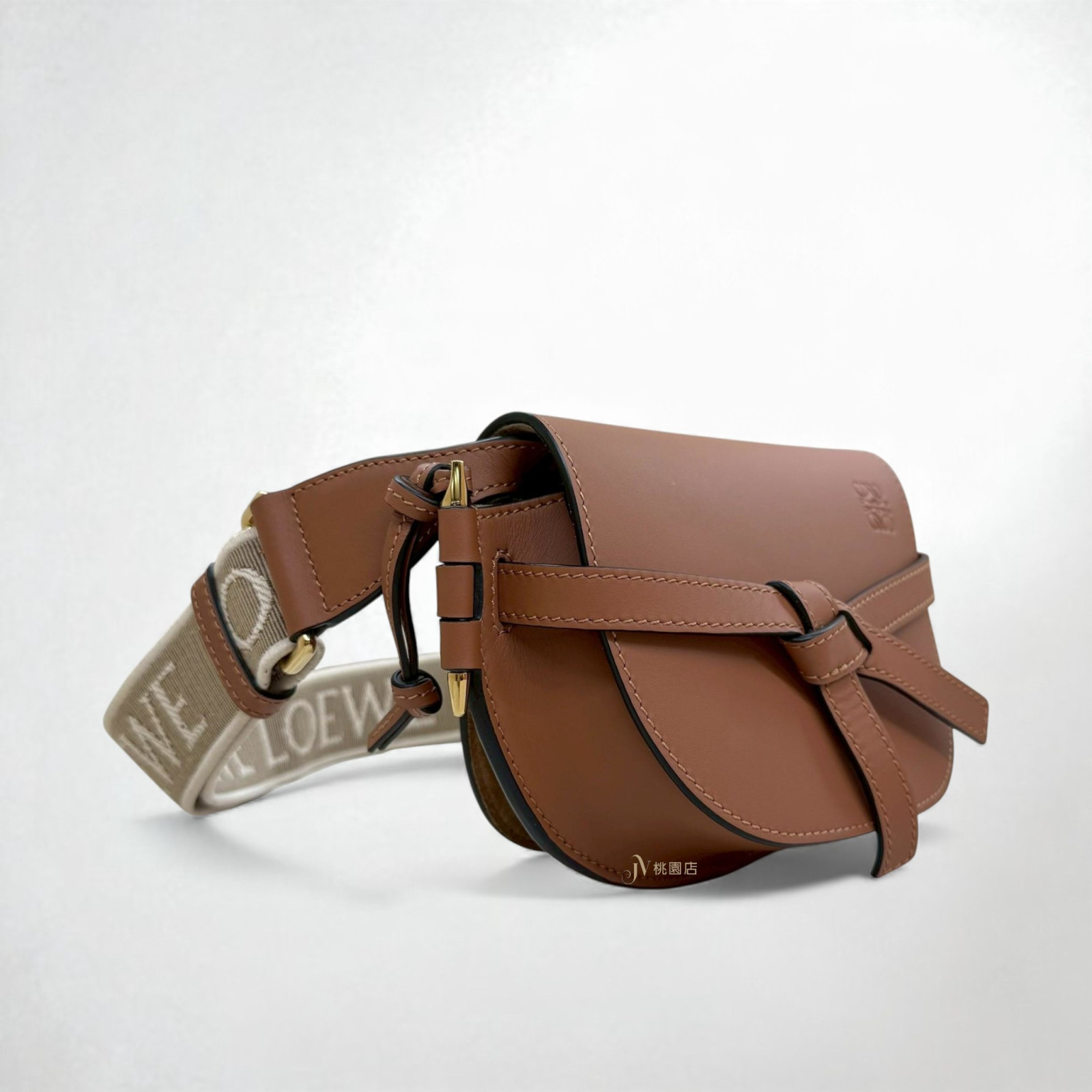 JA1869 LOEWE包包 焦糖色牛皮金釦寬背帶mini gate斜背包a650n46 (桃園店)