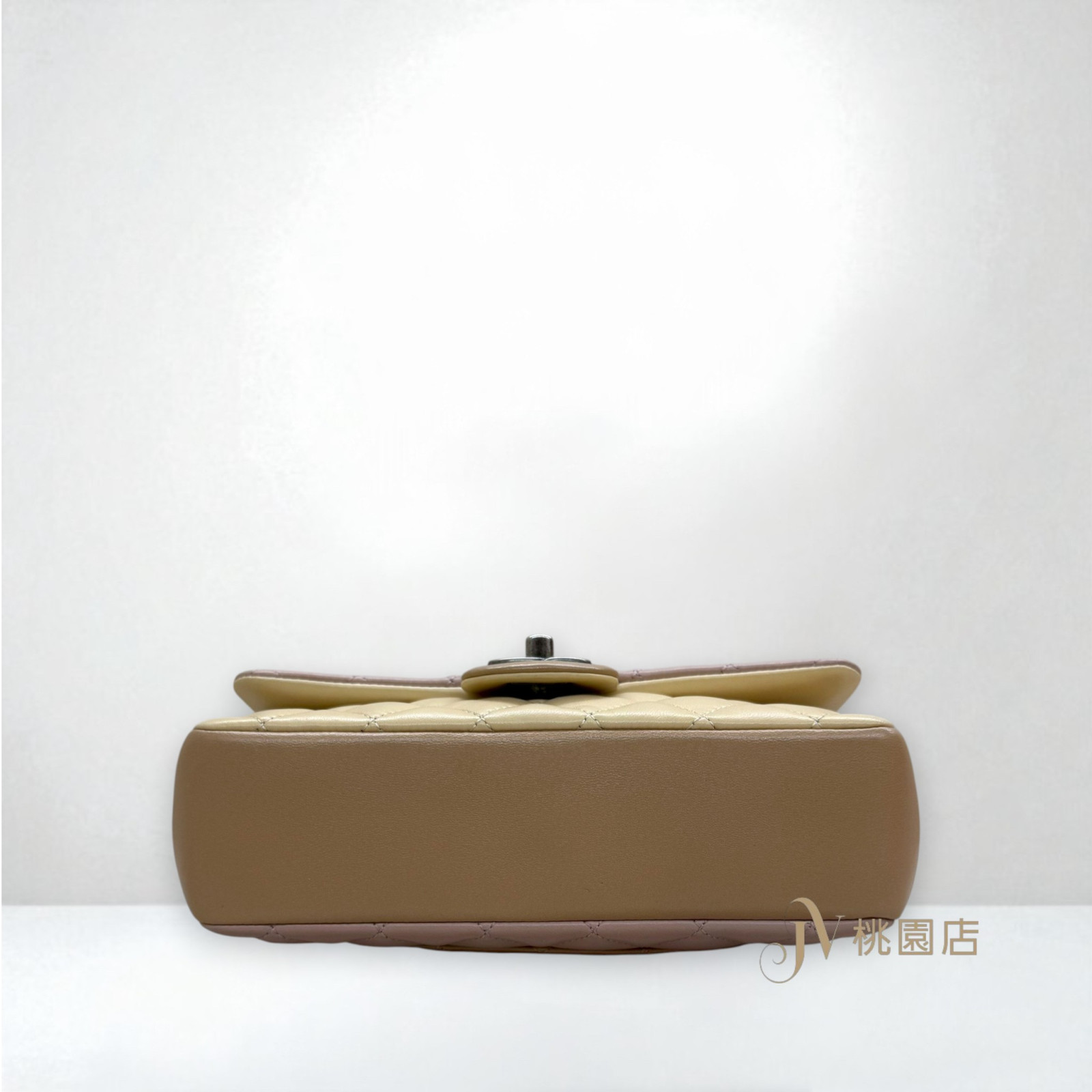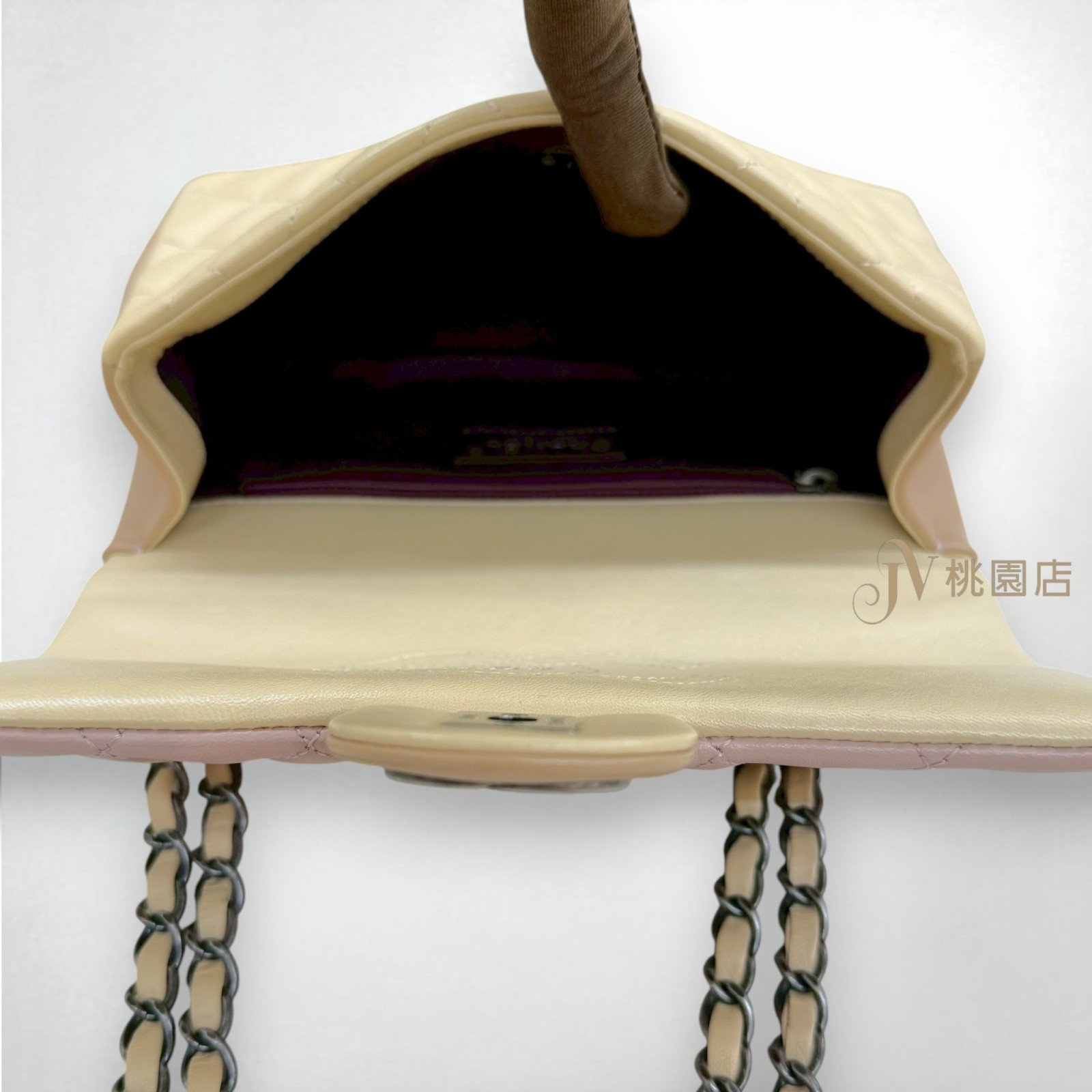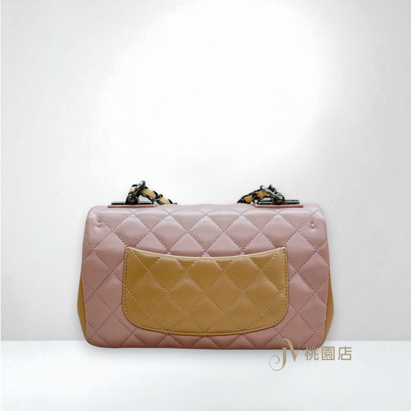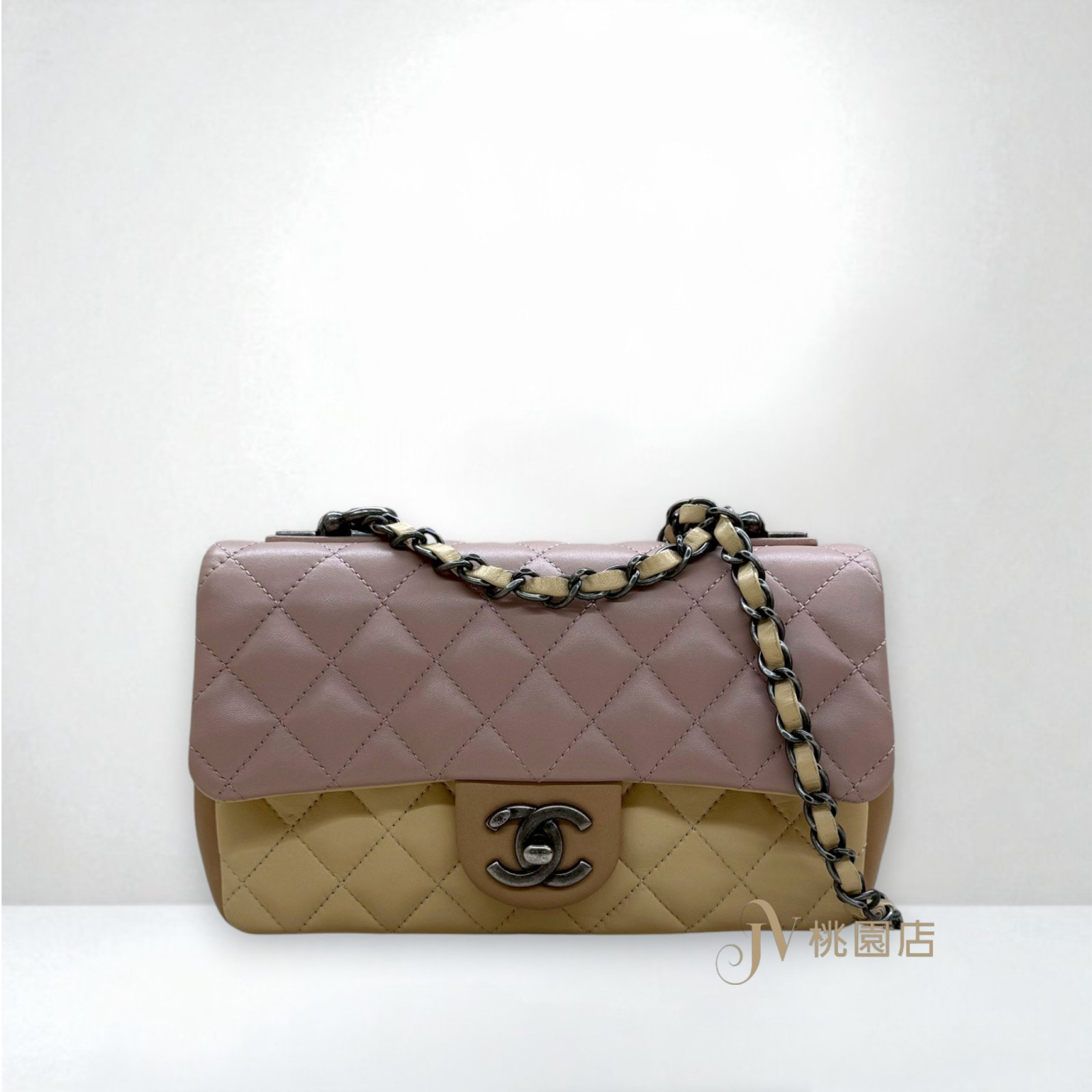 JA1873 CHANEL包包 粉拼色銀釦菱格羊皮季節限定口蓋包 (桃園店)