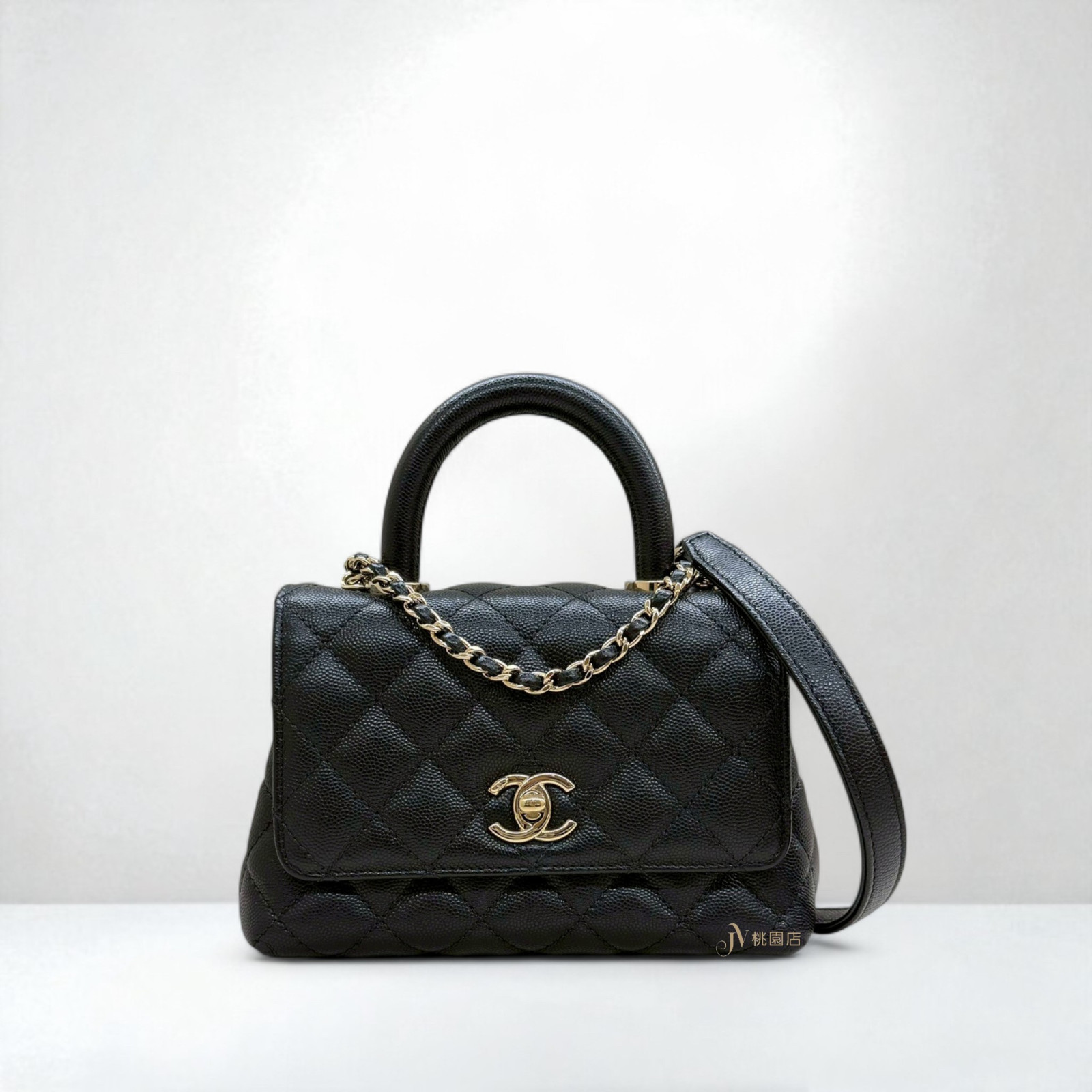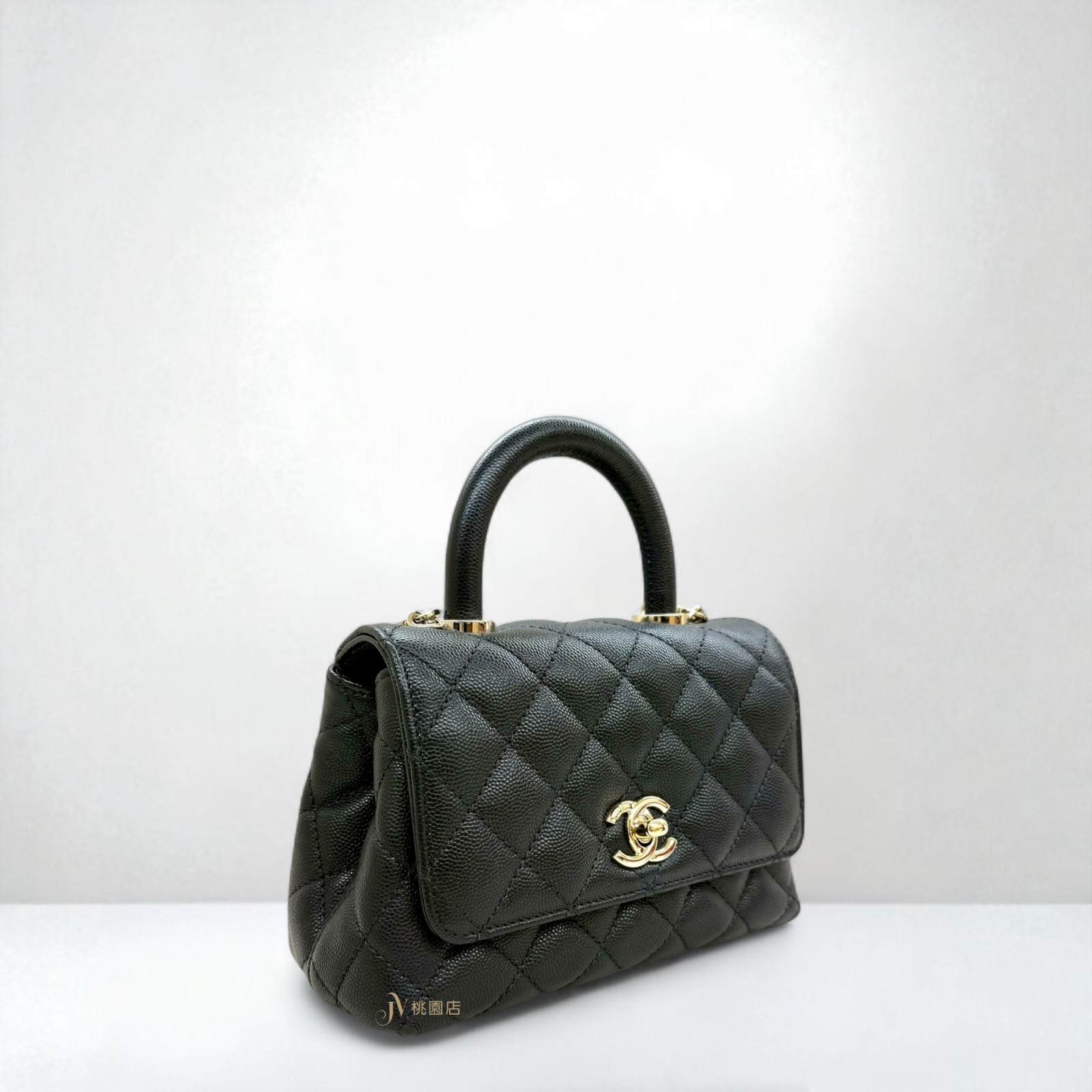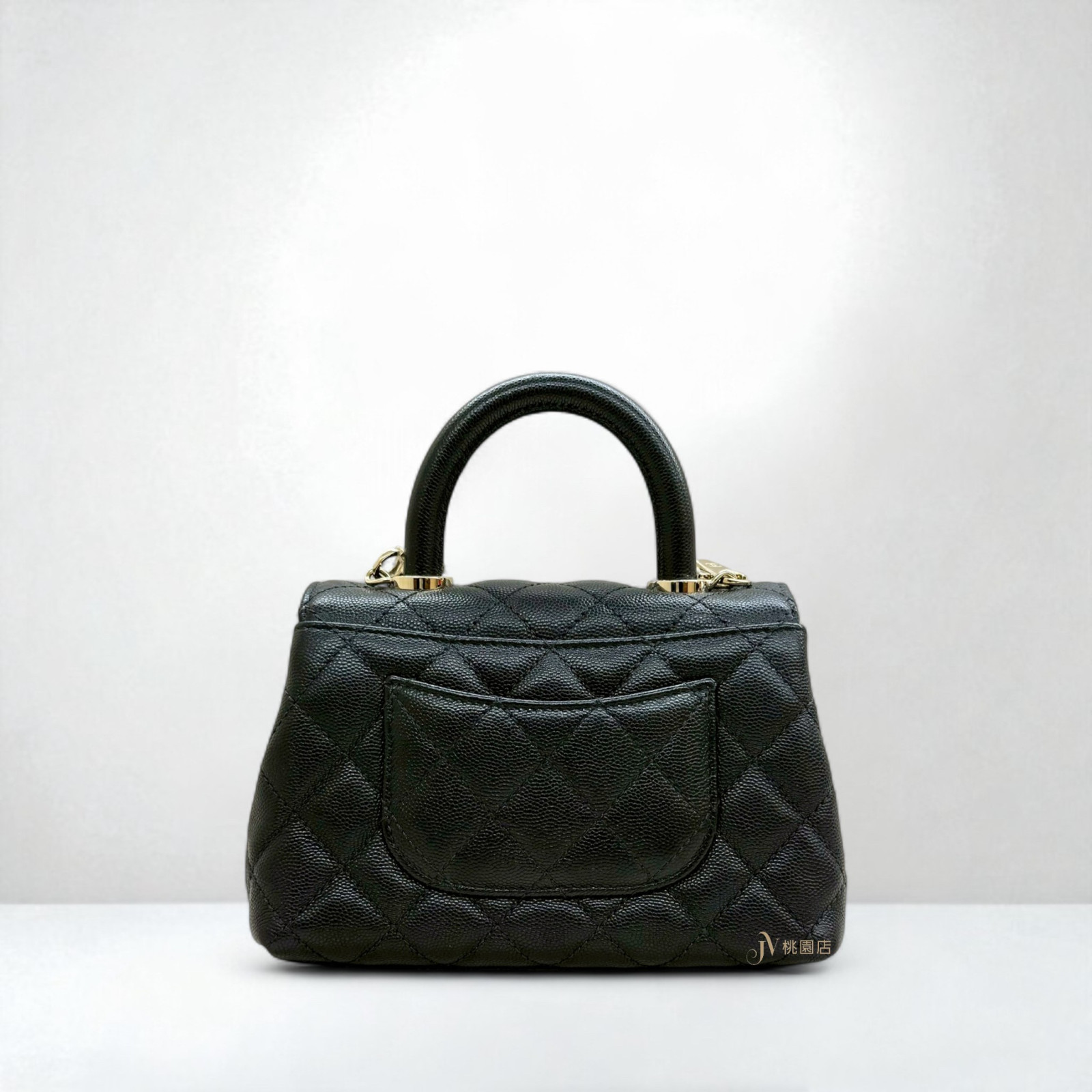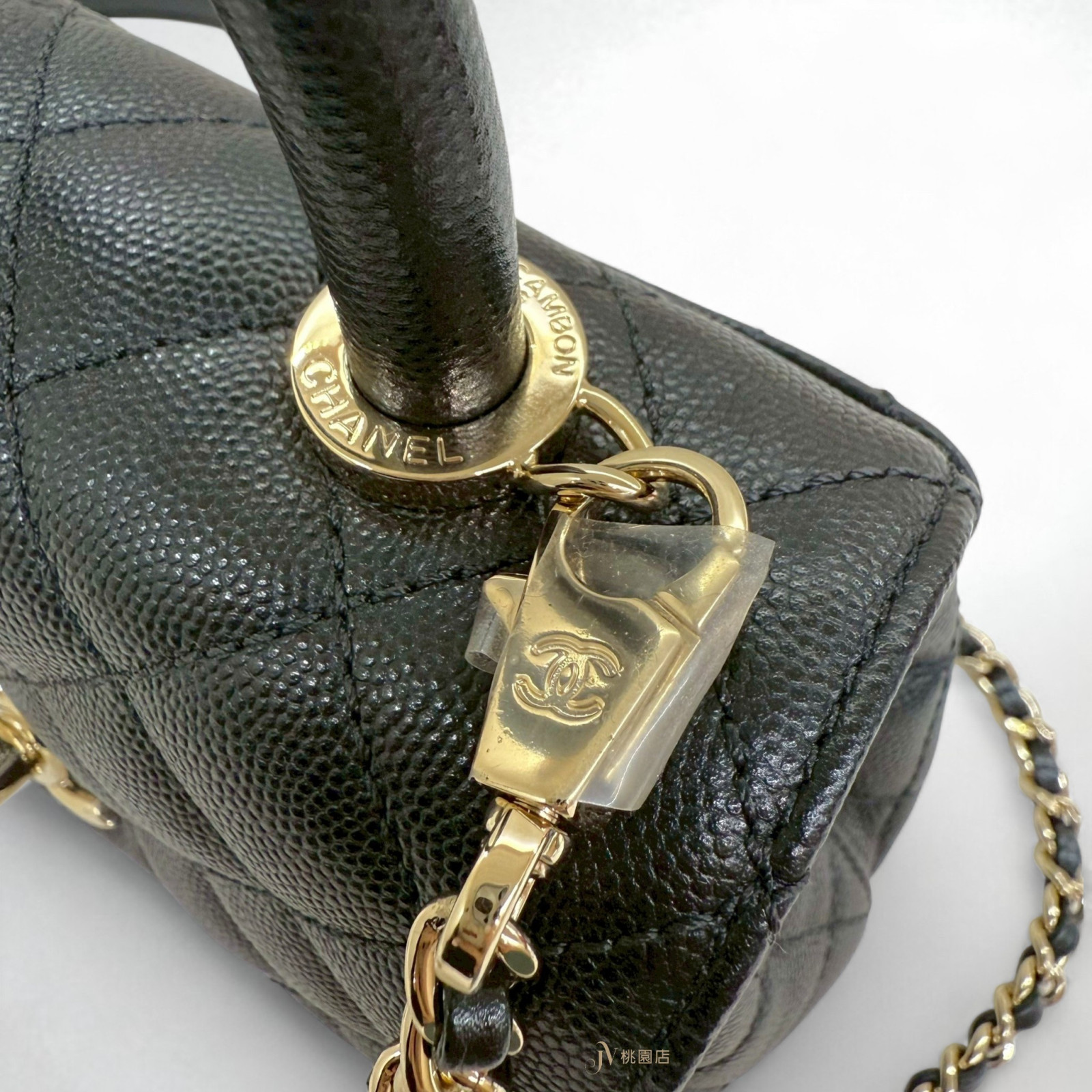JA1898 CHANEL包包 黑淡金釦荔枝皮MINI COCO HANDLE AS2215 (桃園店)