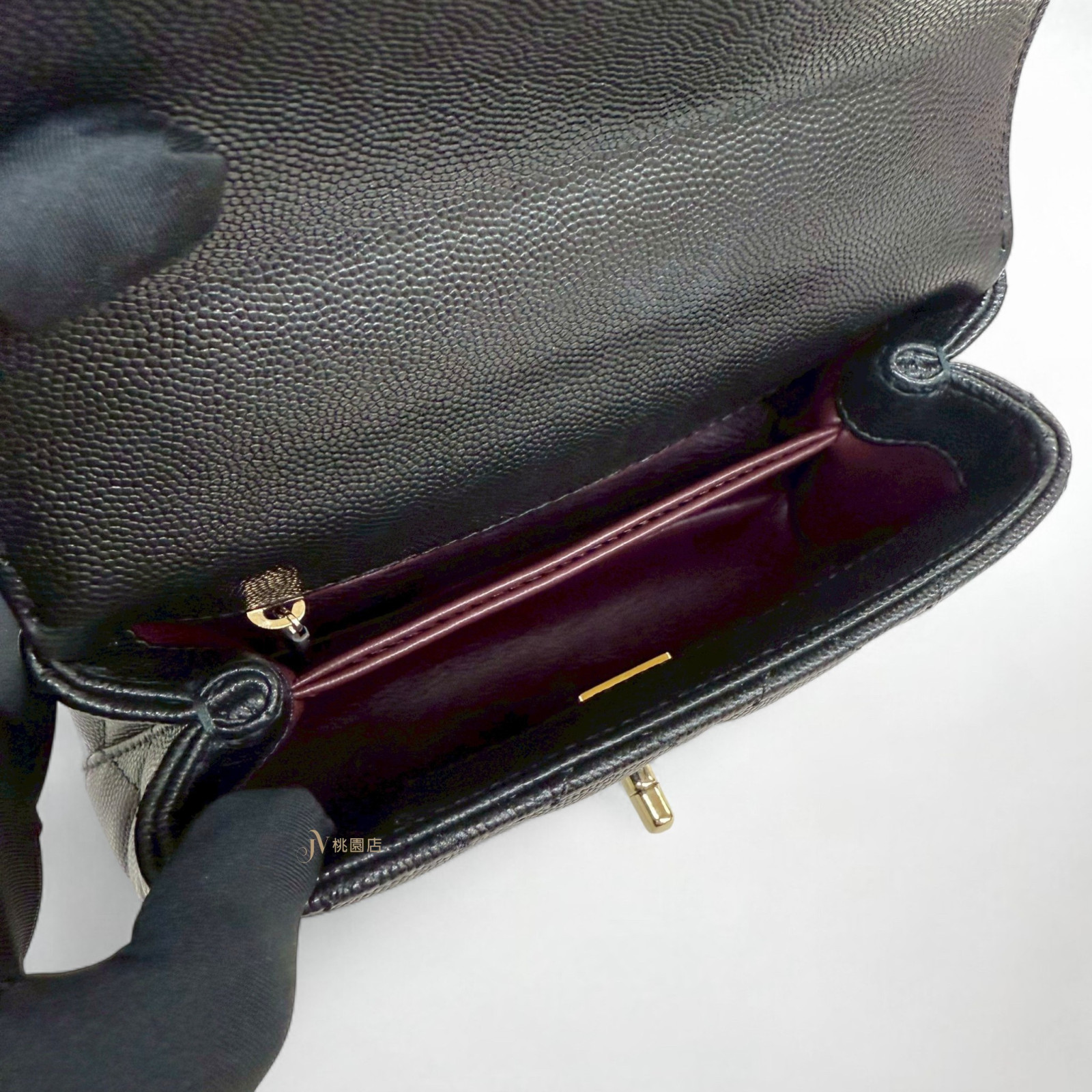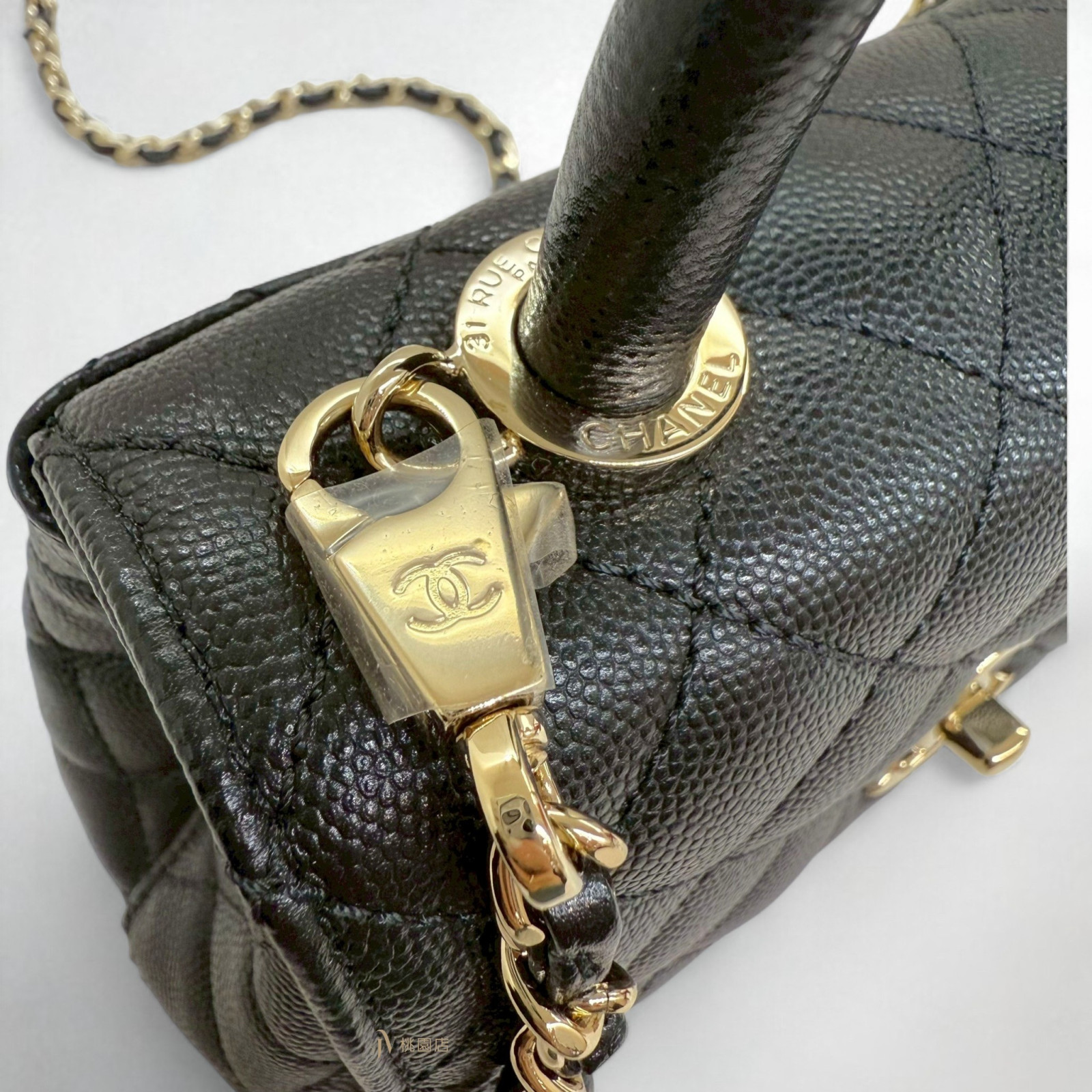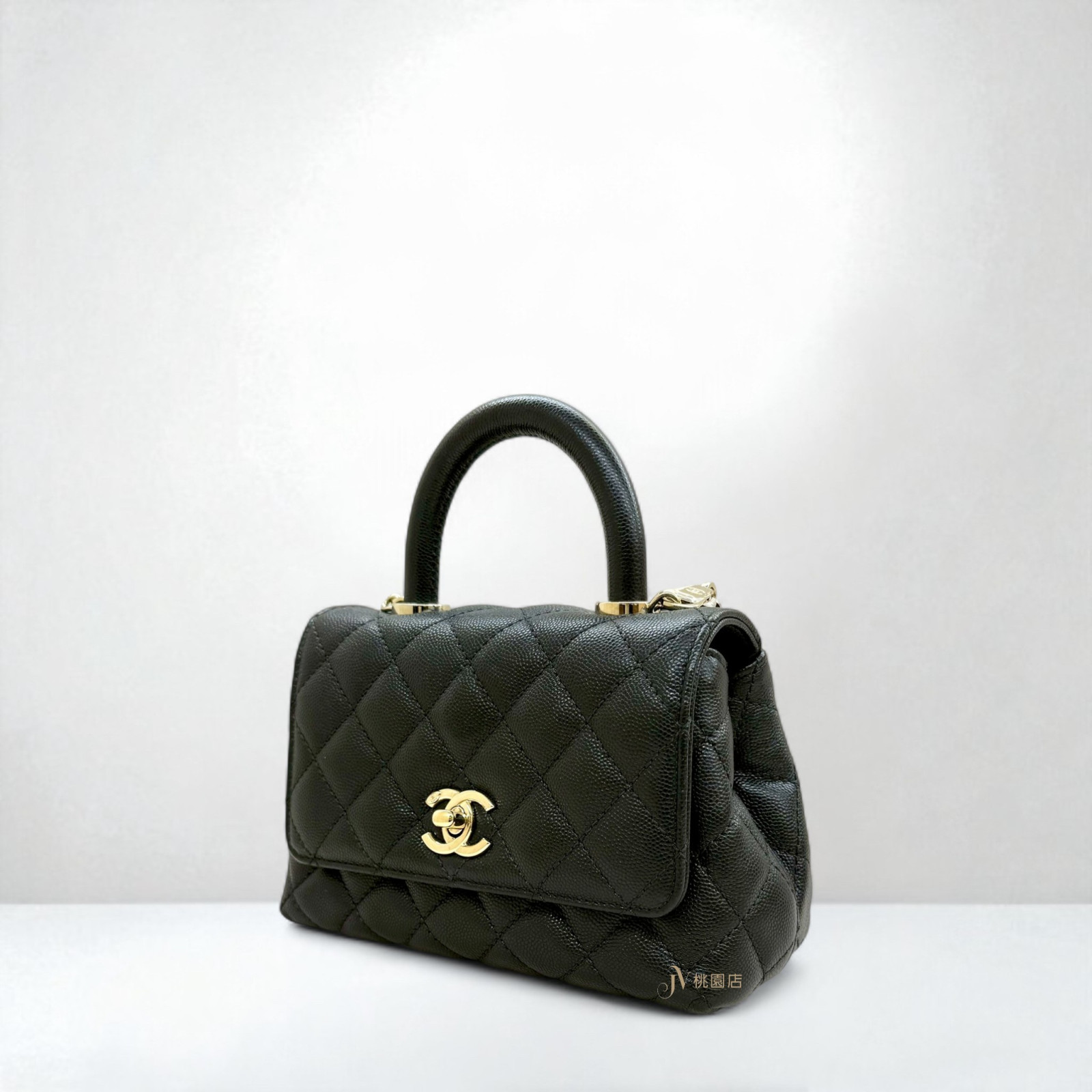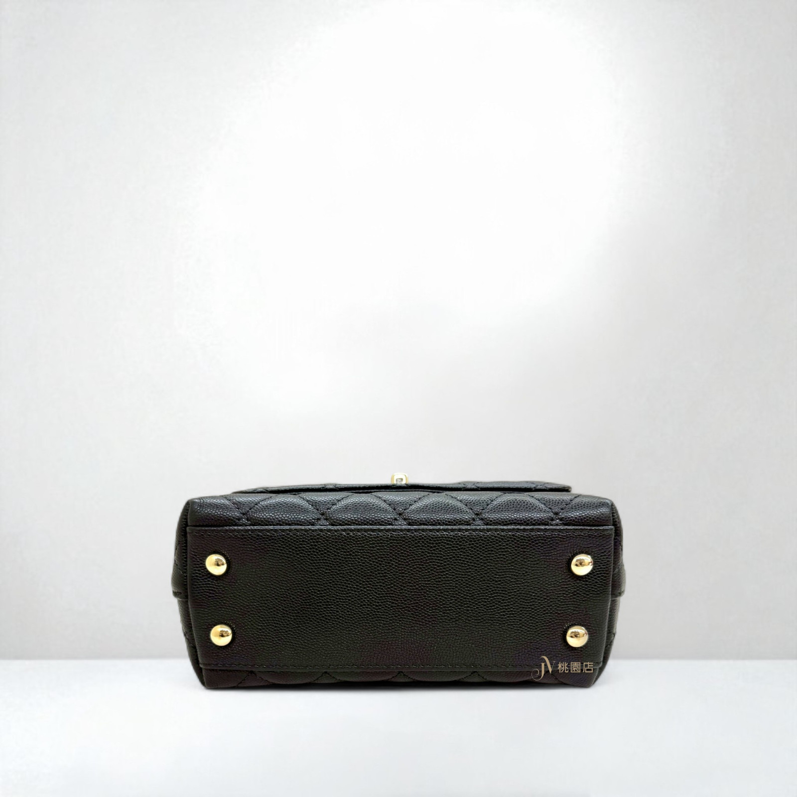 JA1898 CHANEL包包 黑淡金釦荔枝皮MINI COCO HANDLE AS2215 (桃園店)