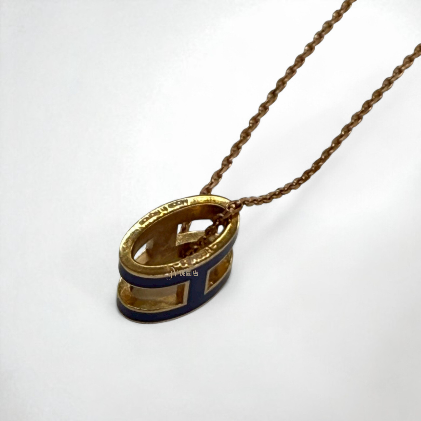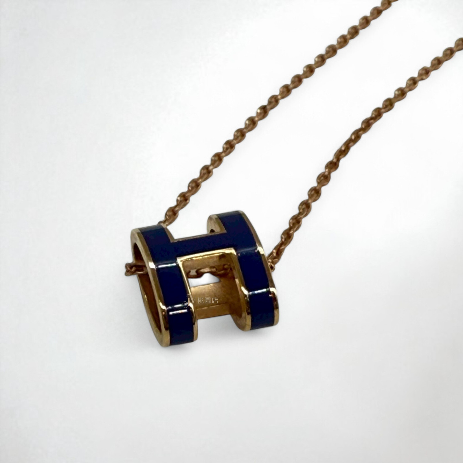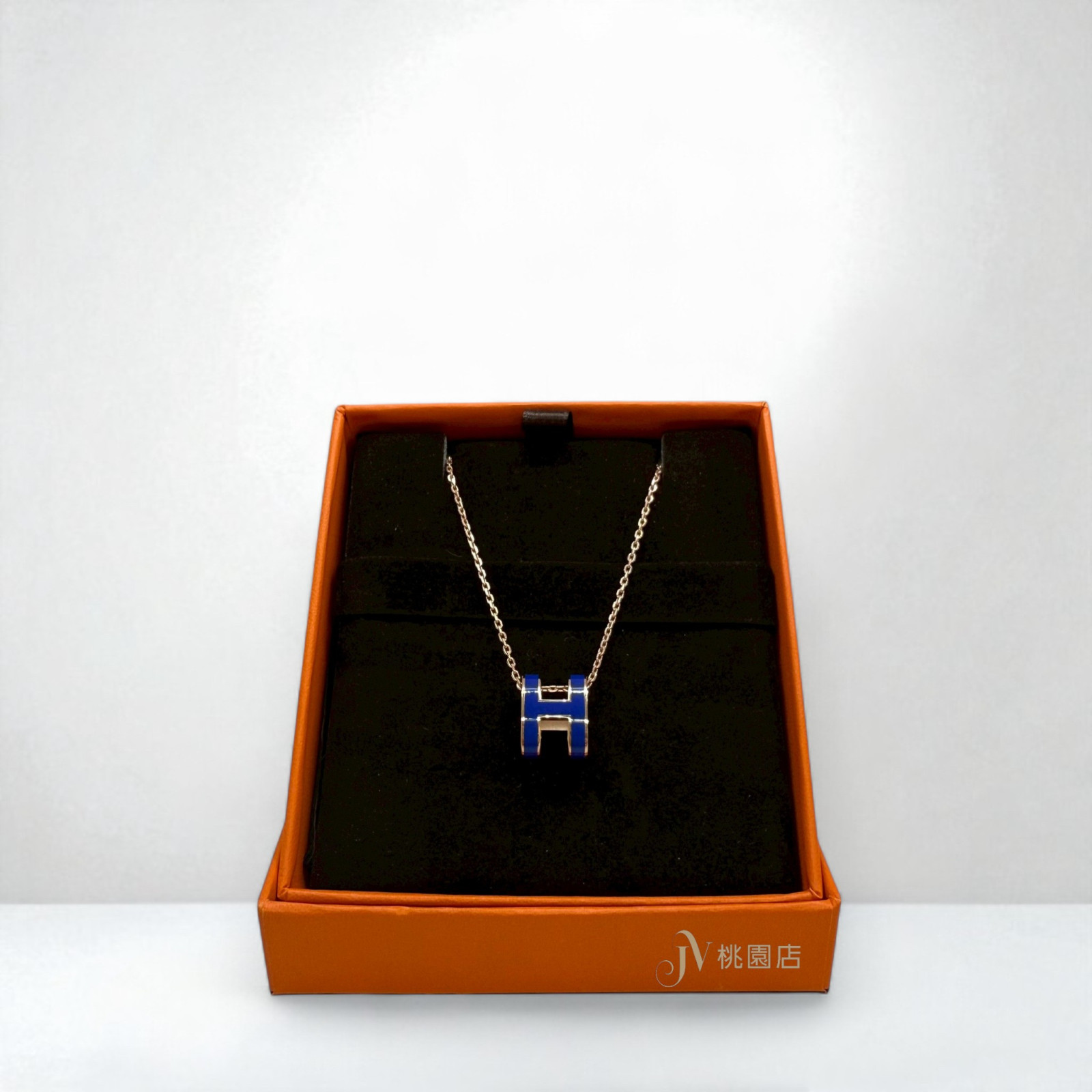 JA1908 HERMES項鍊 寶藍色琺瑯玫瑰金鍊POP H項鍊 (桃園店)