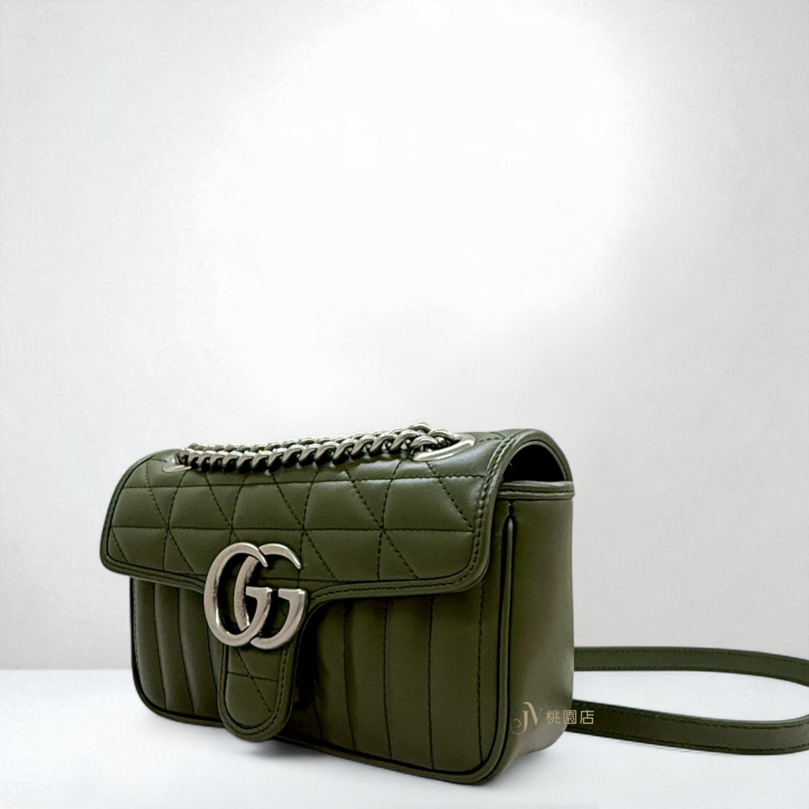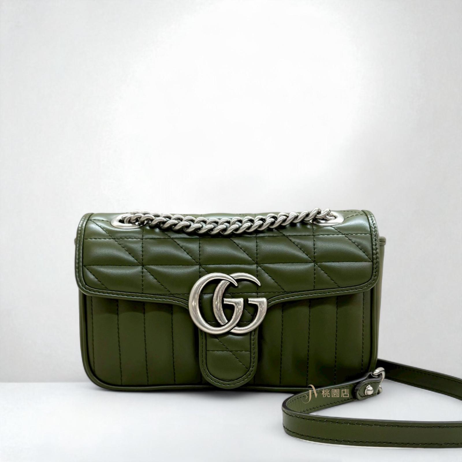 JA1923 GUCCI包包 古巴綠牛皮霧銀釦馬孟小號下蓋側背包 (桃園店)