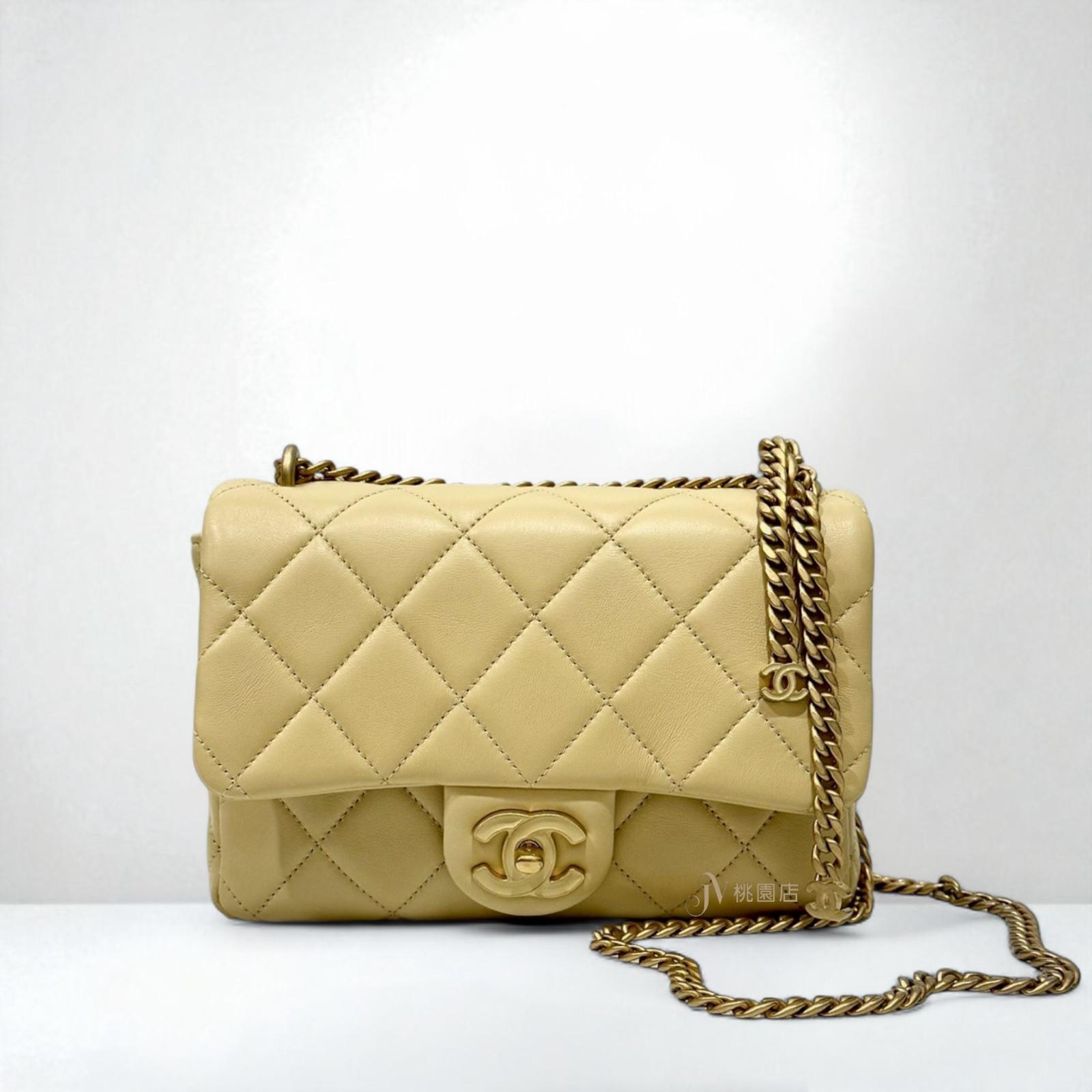 JA1928 CHANEL包包 小雞黃羊皮琺瑯釦雙C下蓋金鏈條包AS3114 (桃園店)