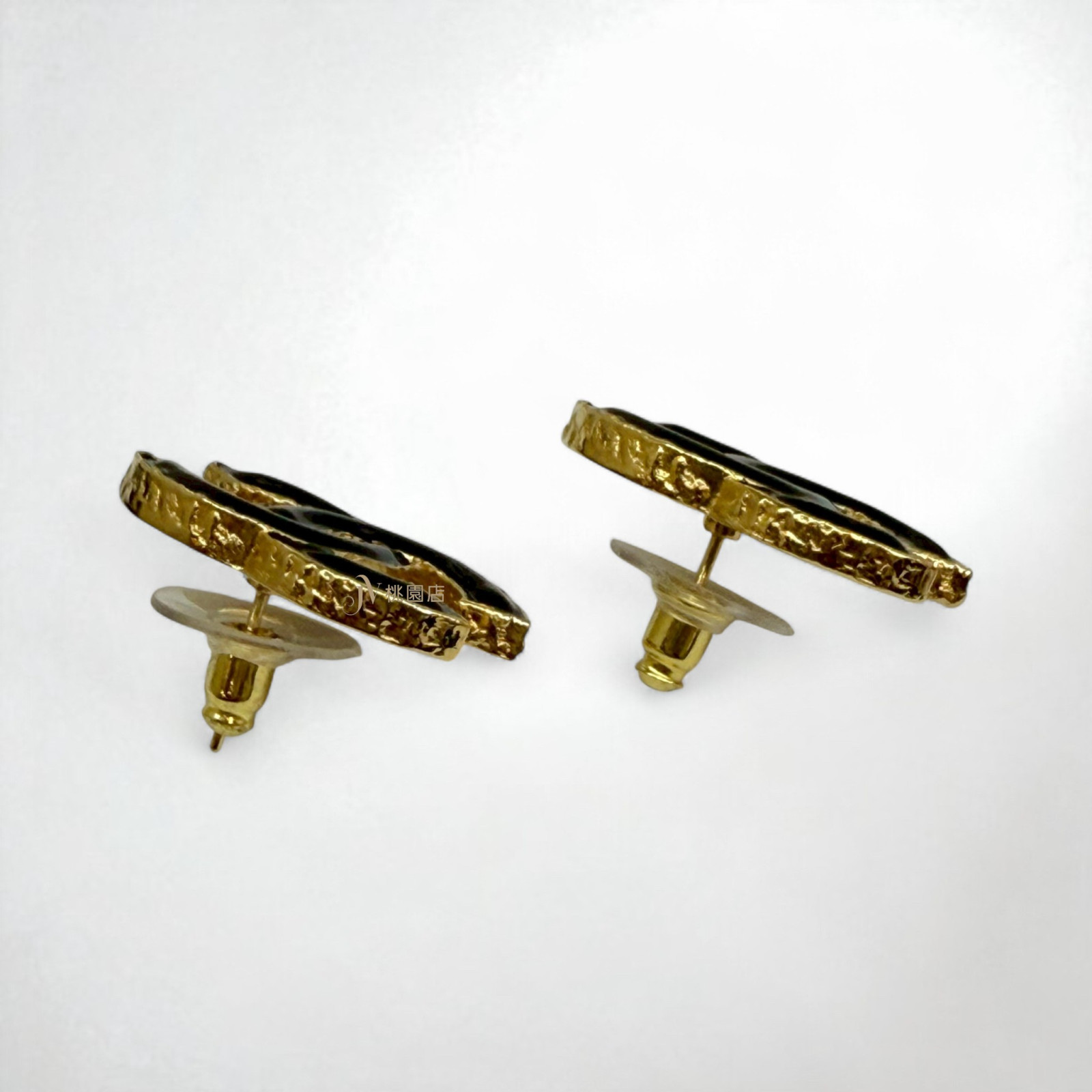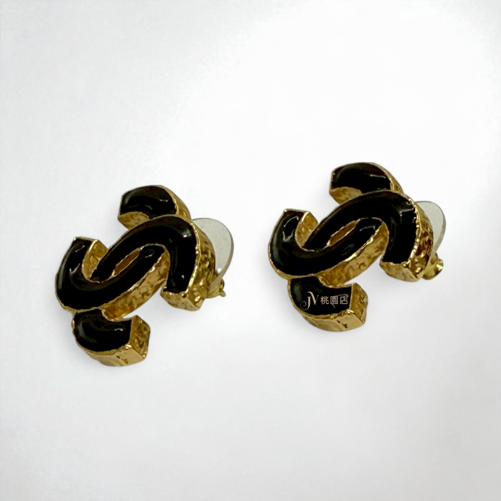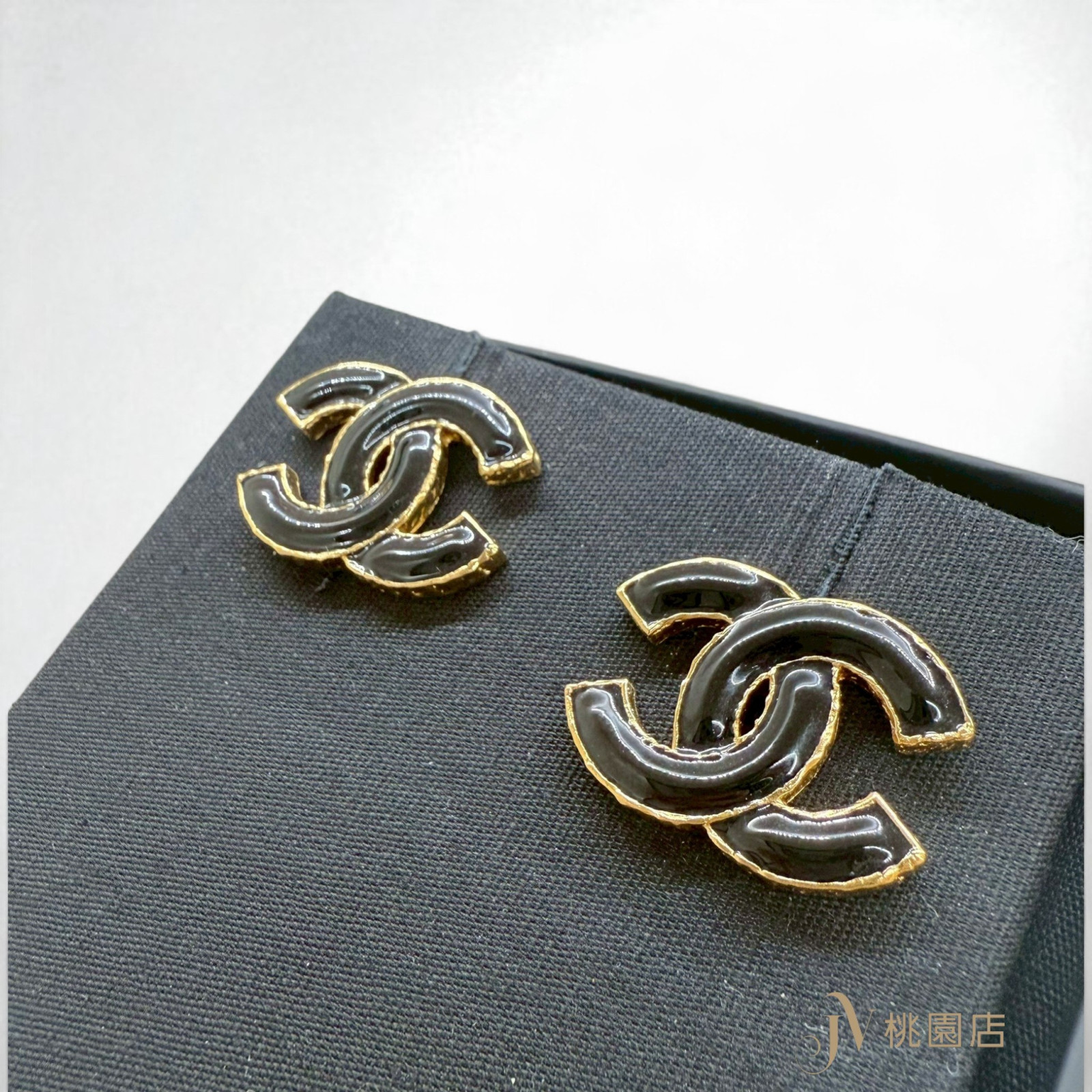 JA1932 CHANEL耳環 黑色琺瑯金邊雙C耳環 (桃園店)