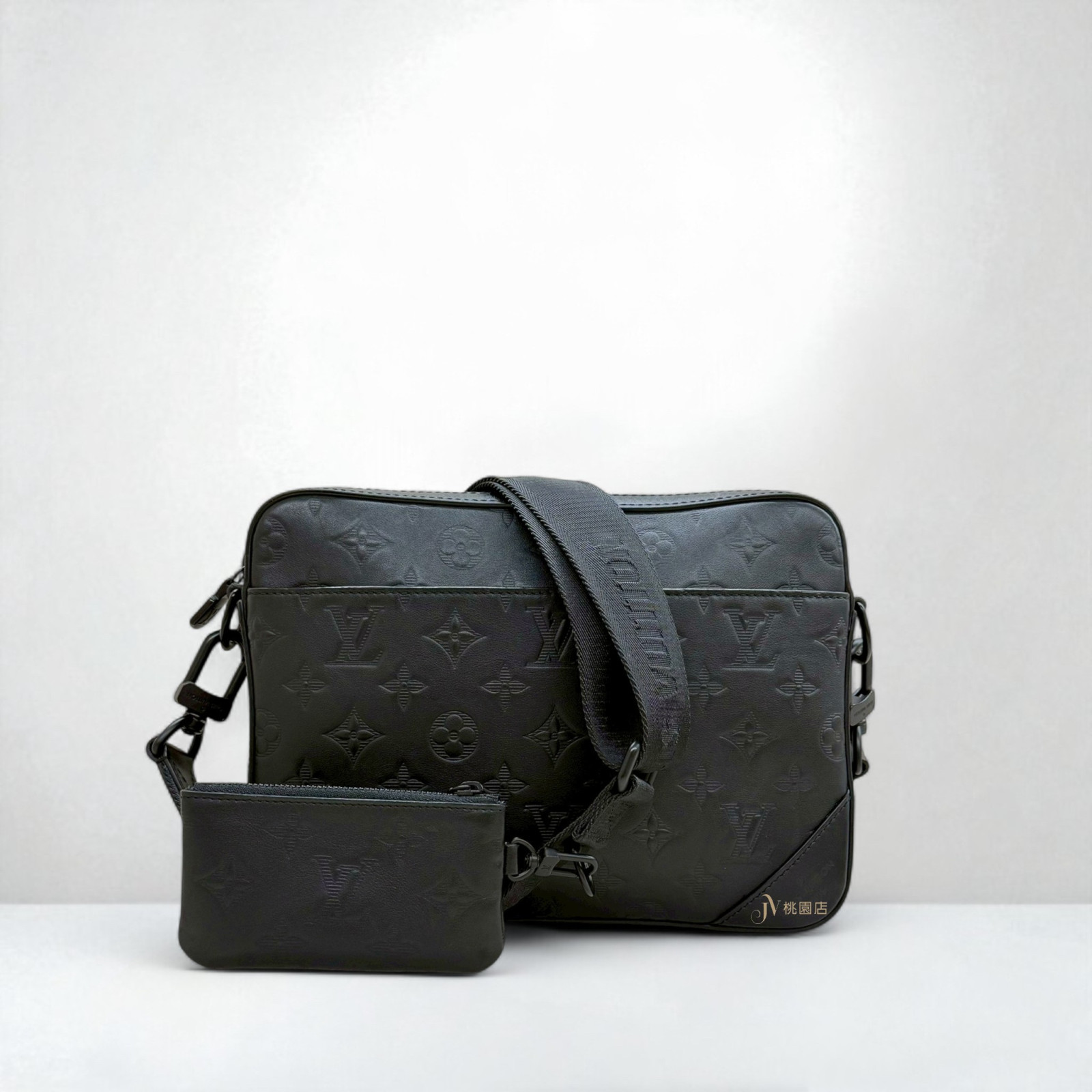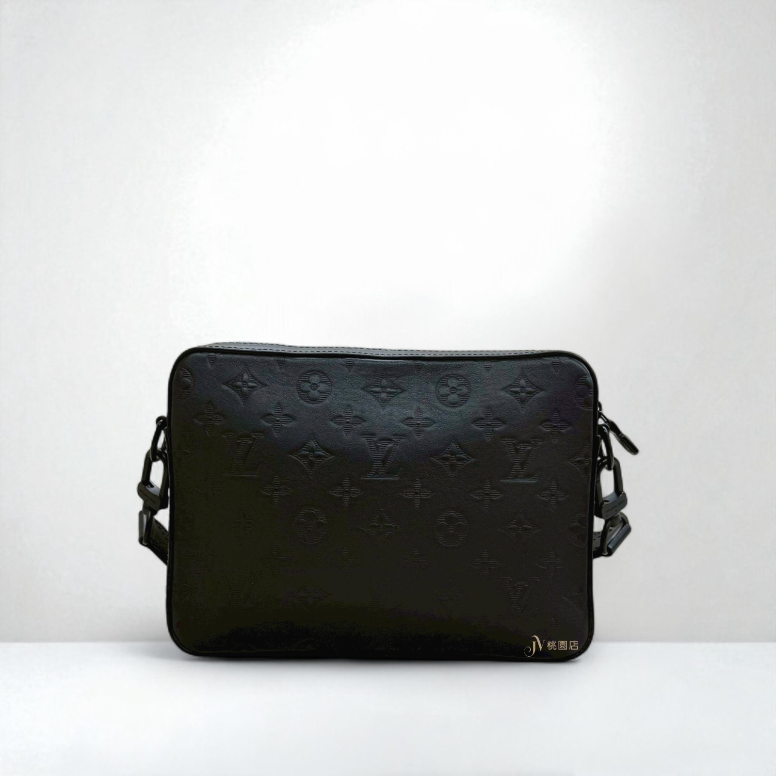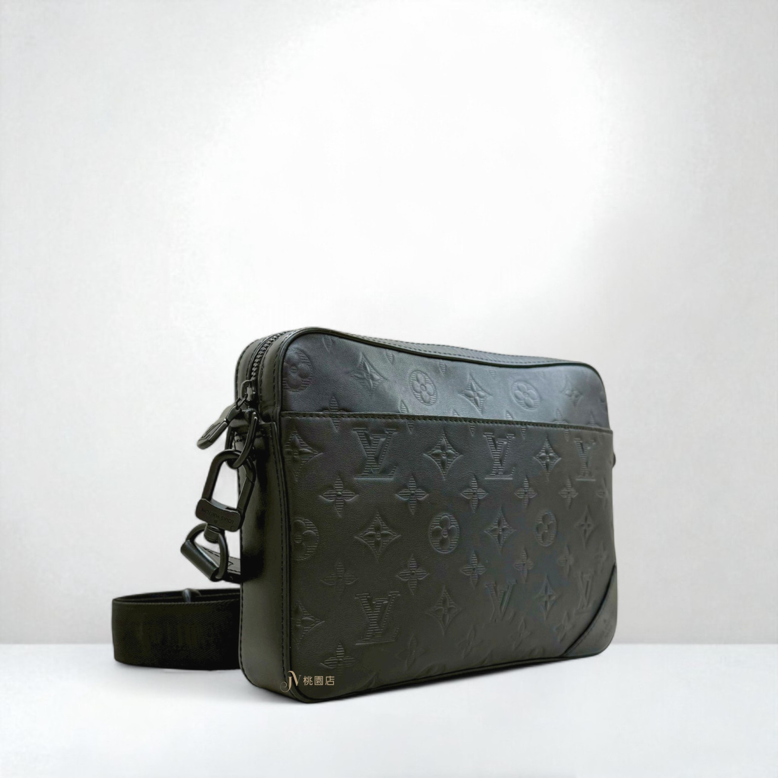 JA1946 LV包包 黑色壓紋牛皮duo二合一郵差包M69827 (桃園店)