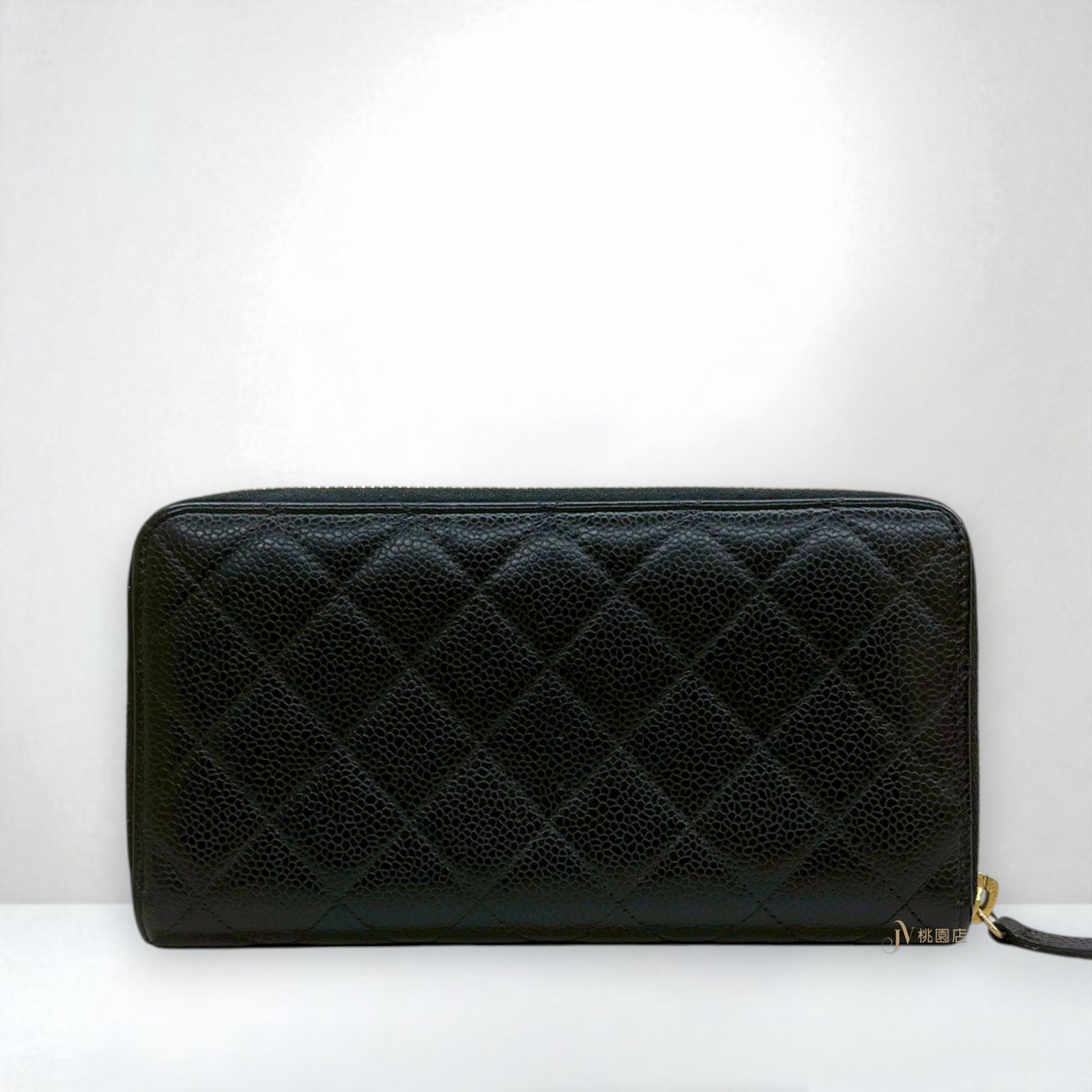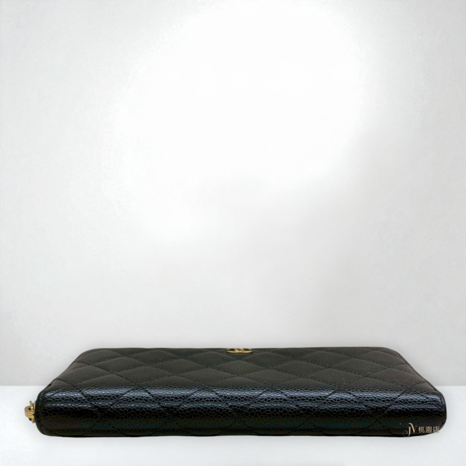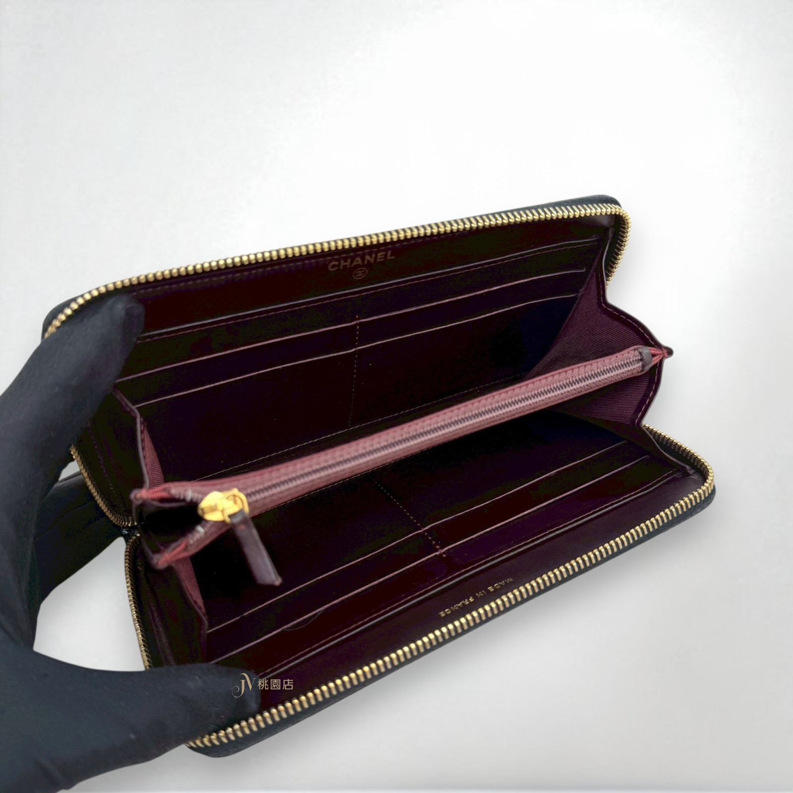 JA1952 CHANEL皮夾 黑金牛皮8卡ㄇ拉長夾 A50097 (桃園店)