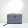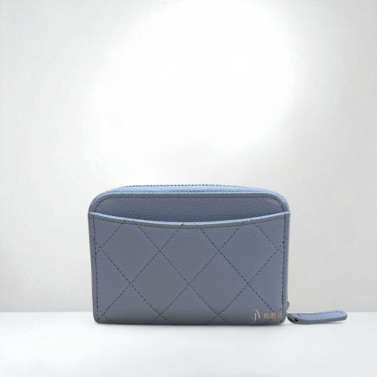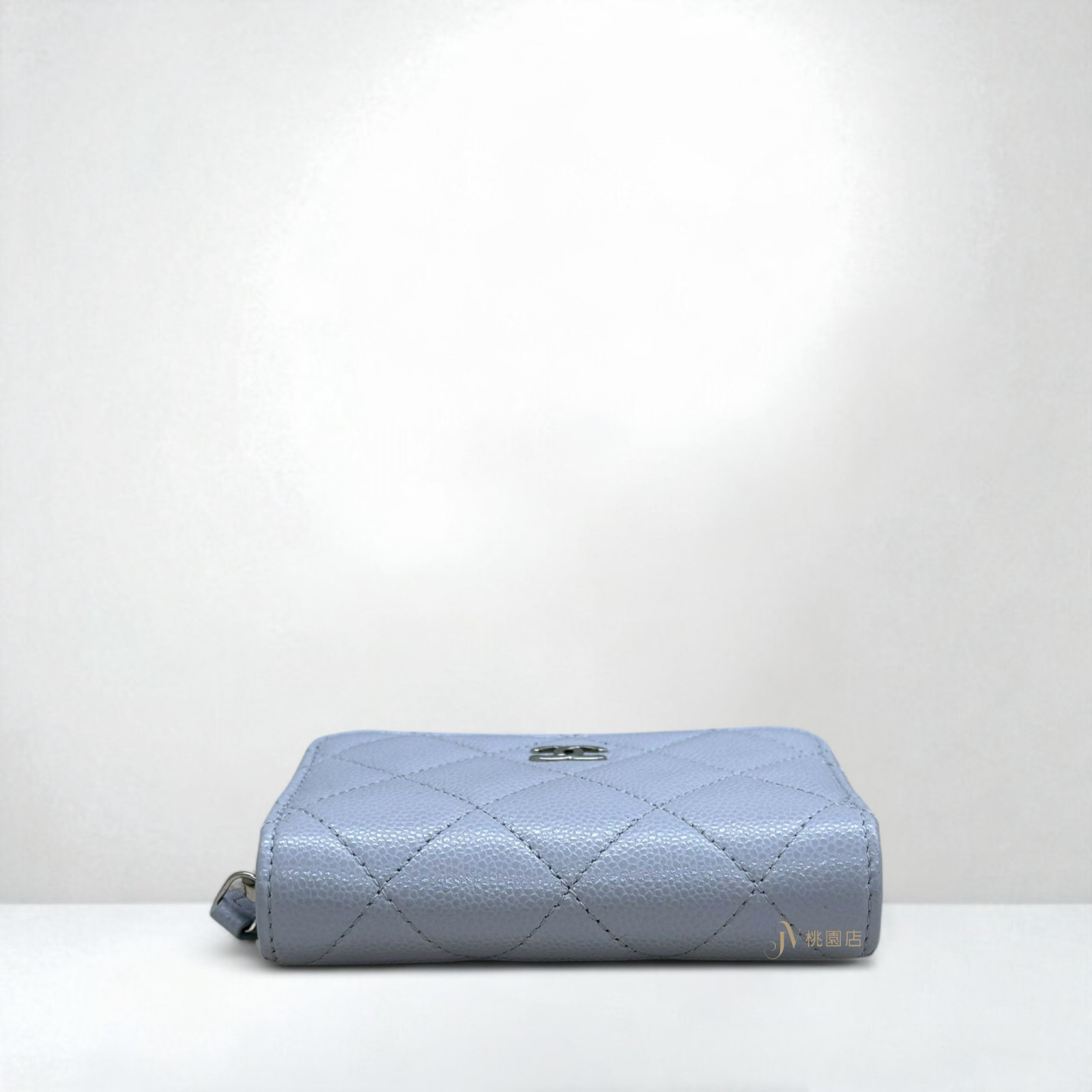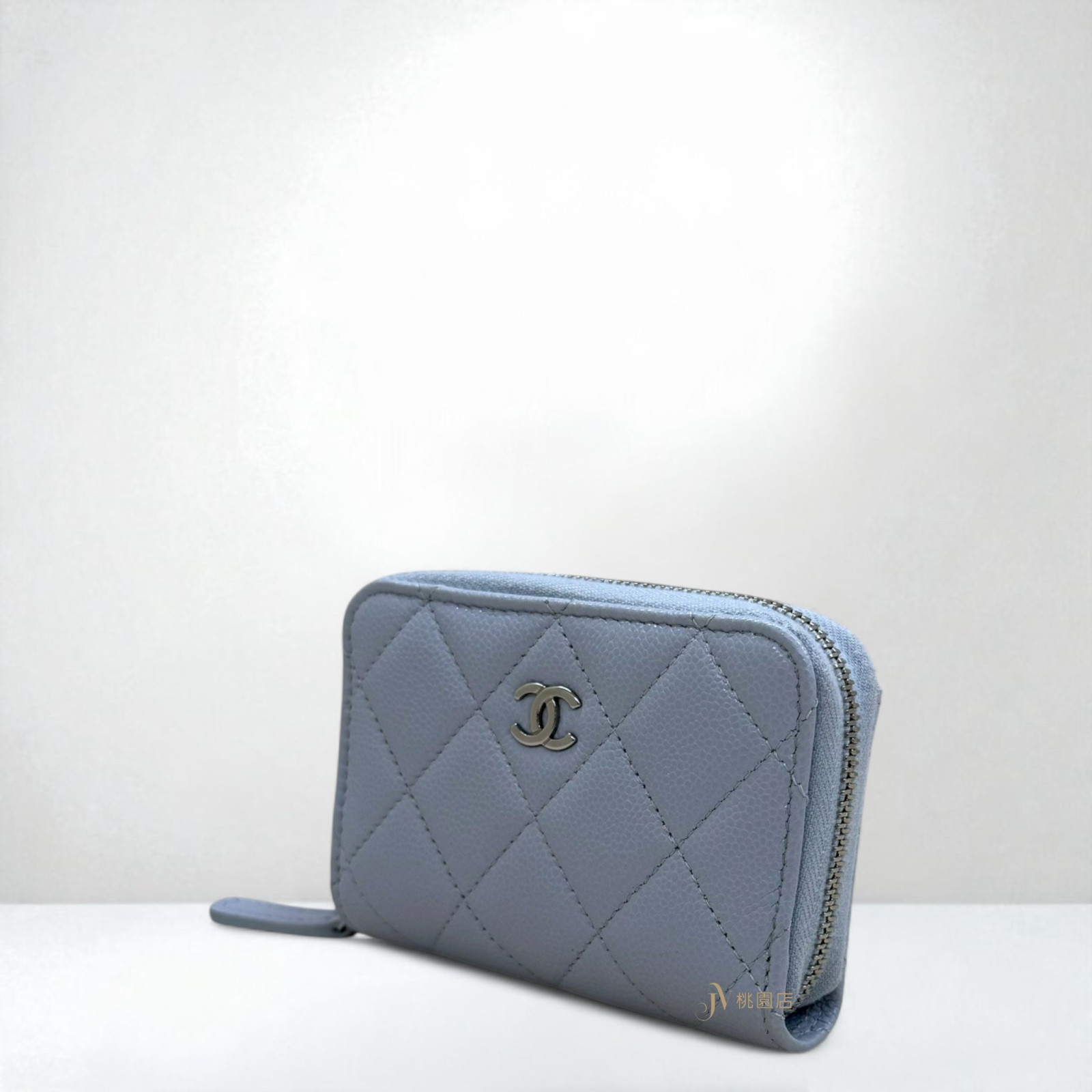 JA1955 CHANEL卡包 淺灰藍牛皮銀釦ㄇ拉零錢卡包AP0216 (桃園店)