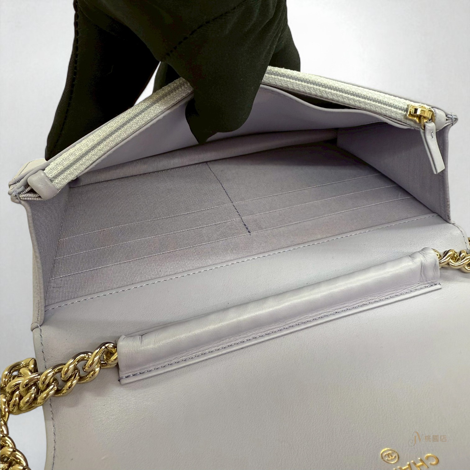 路徑: 首頁 / 精品賣場 / CHANEL / CHANEL-包款 / JA1966 CHANEL包包 薰衣草粉紫色荔枝牛皮淡金釦BOY WOC (桃園店)...
