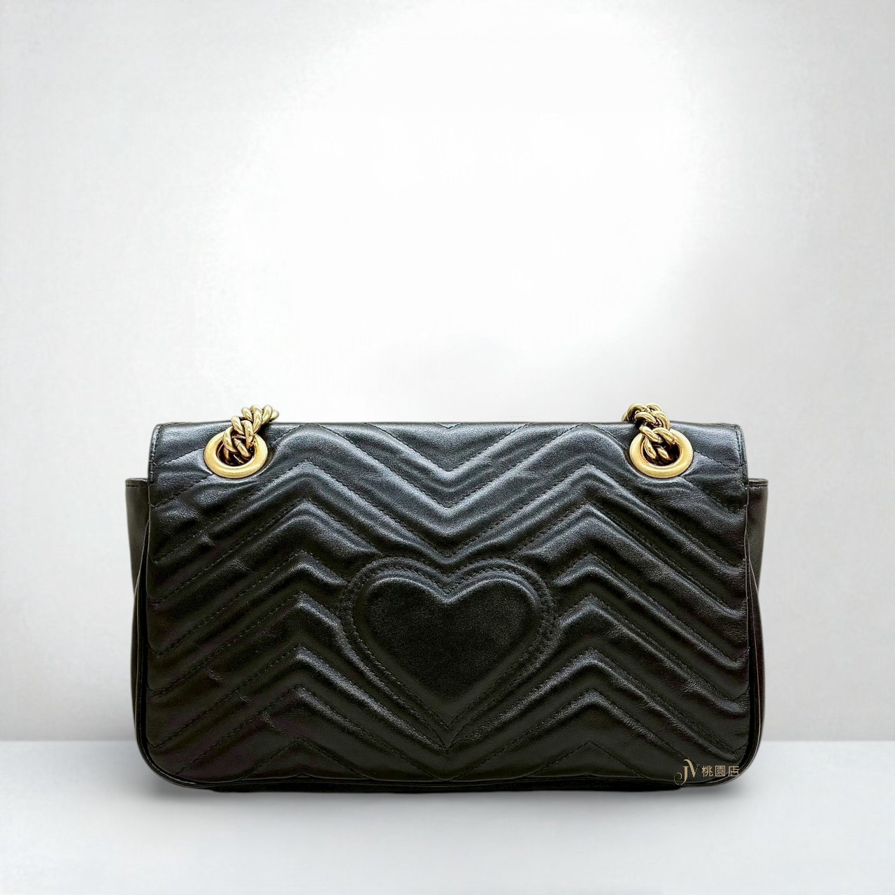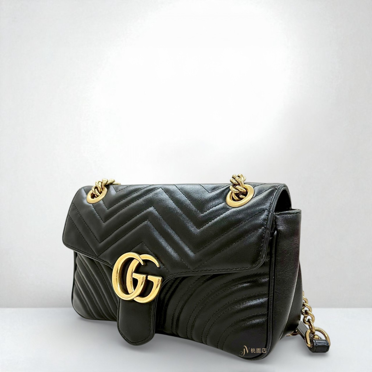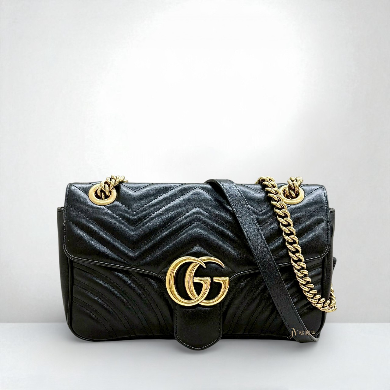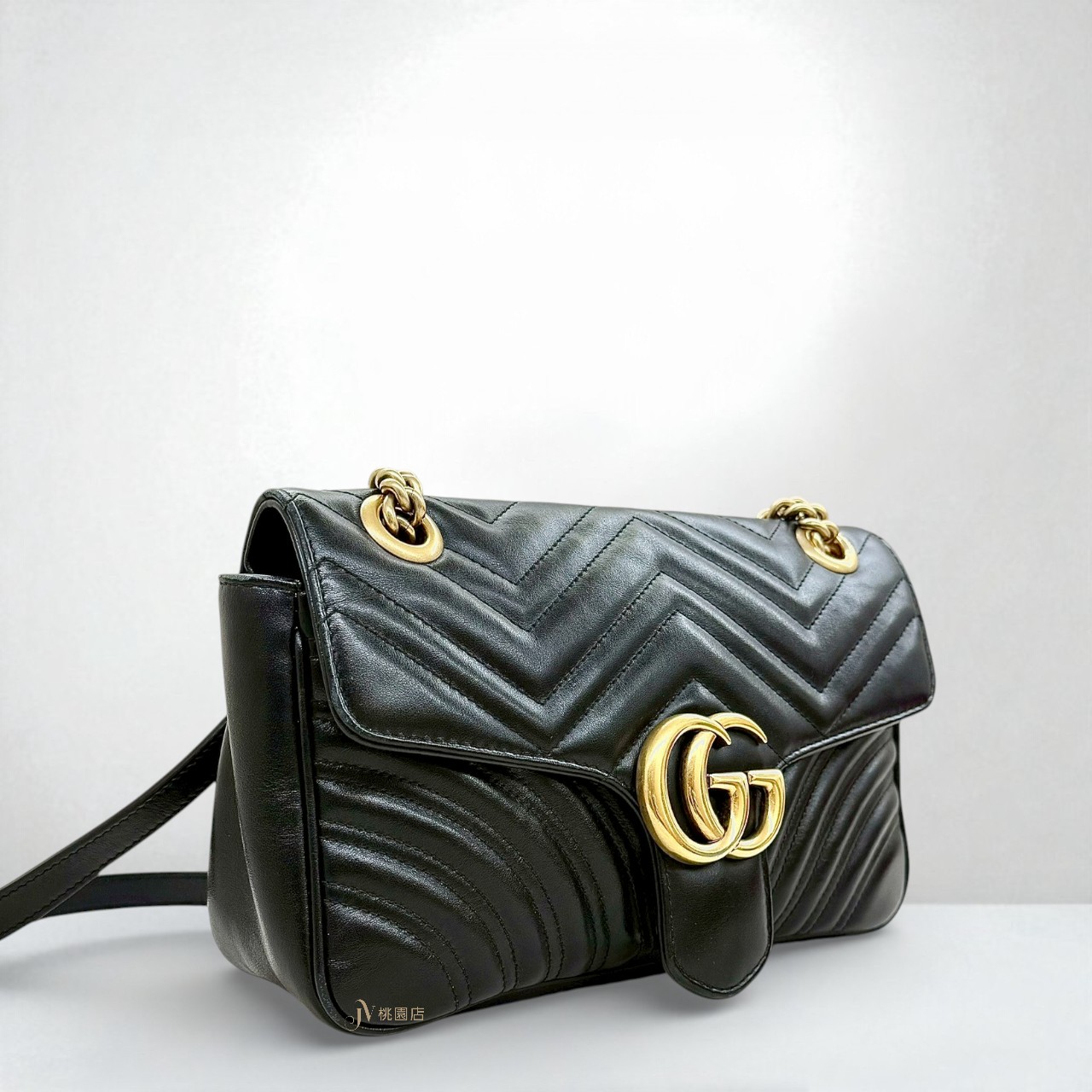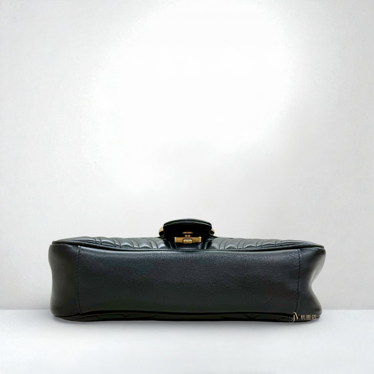 JA2081 GUCCI包包 黑色牛皮金釦MARMONT 26下蓋側背包443497 (桃園店)