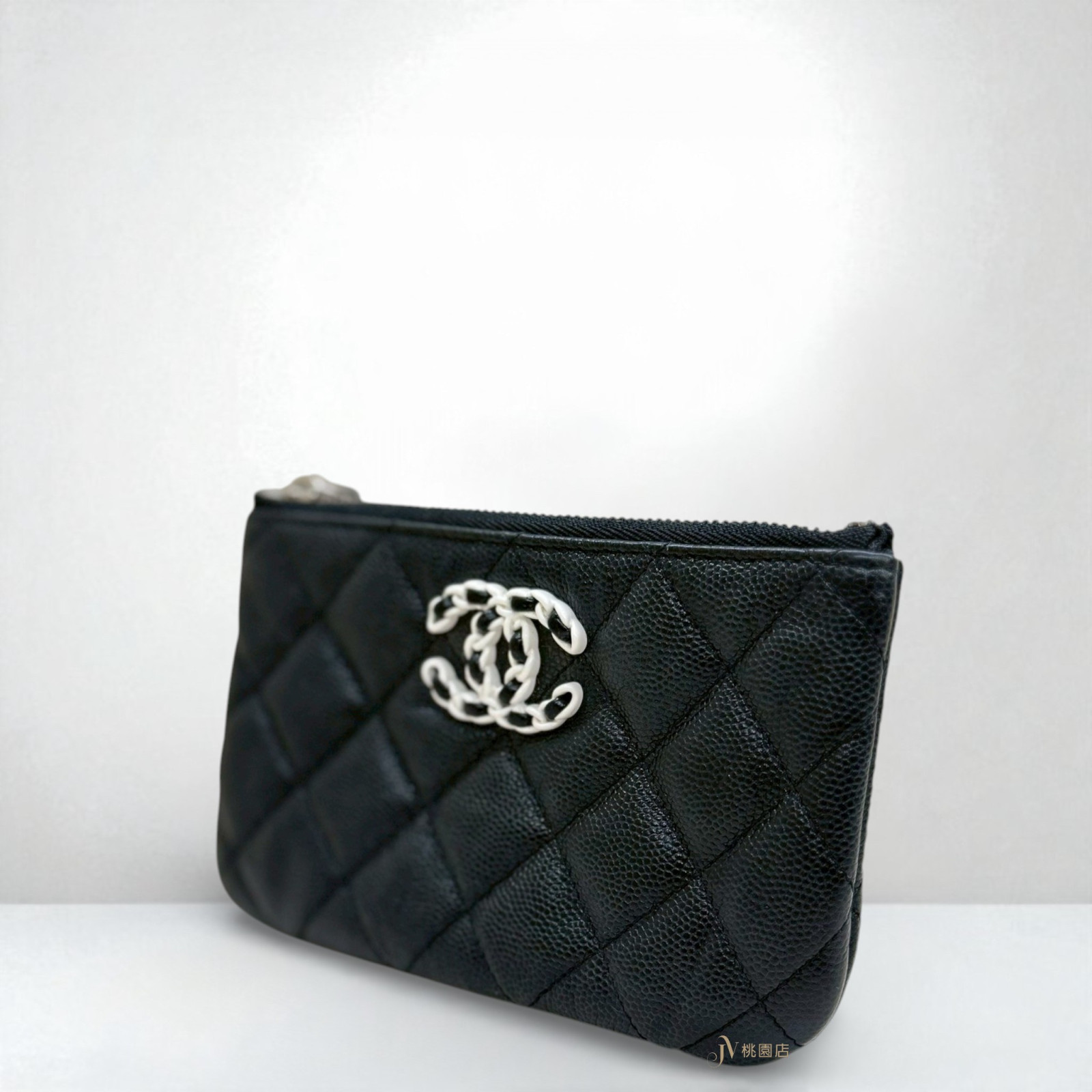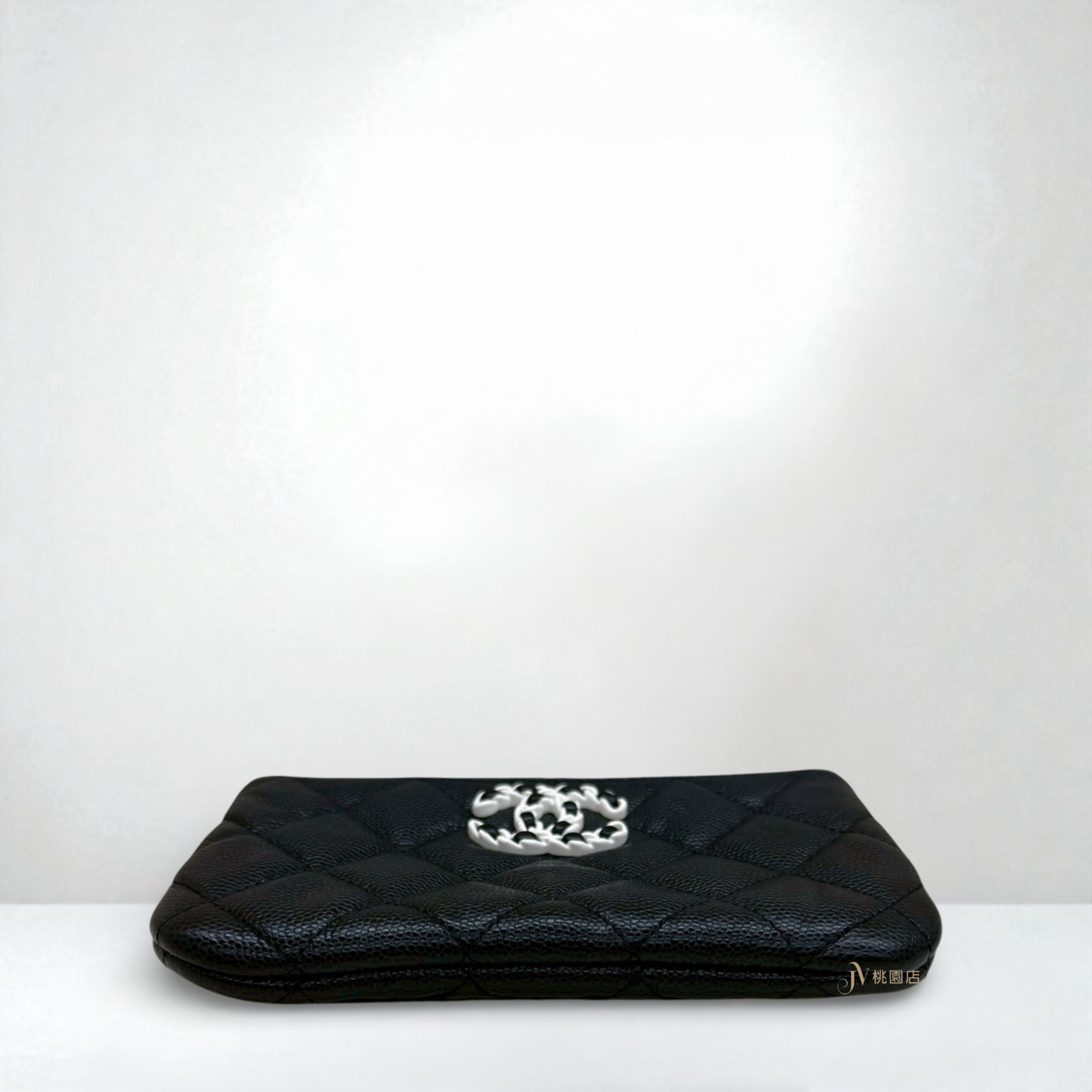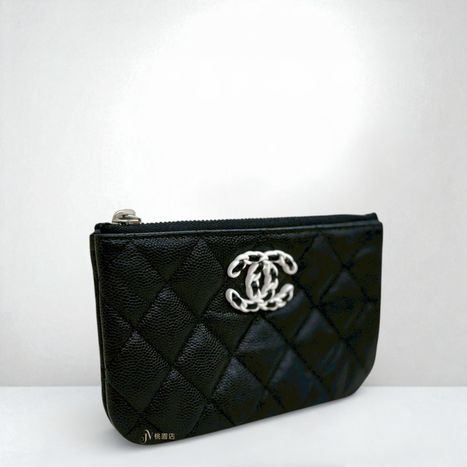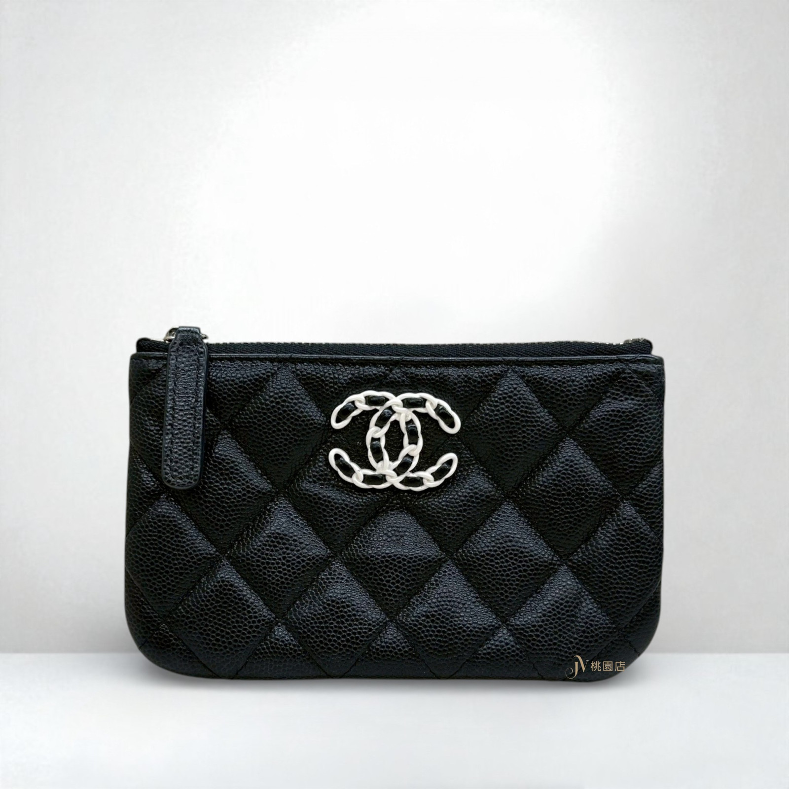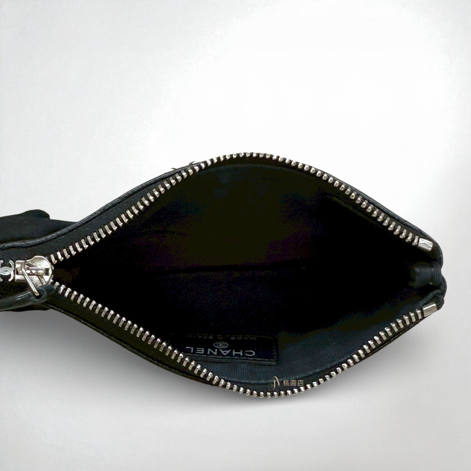 JA2083 CHANEL零錢包 黑色牛皮熊貓白釦一字拉鏈零錢包 (桃園店)