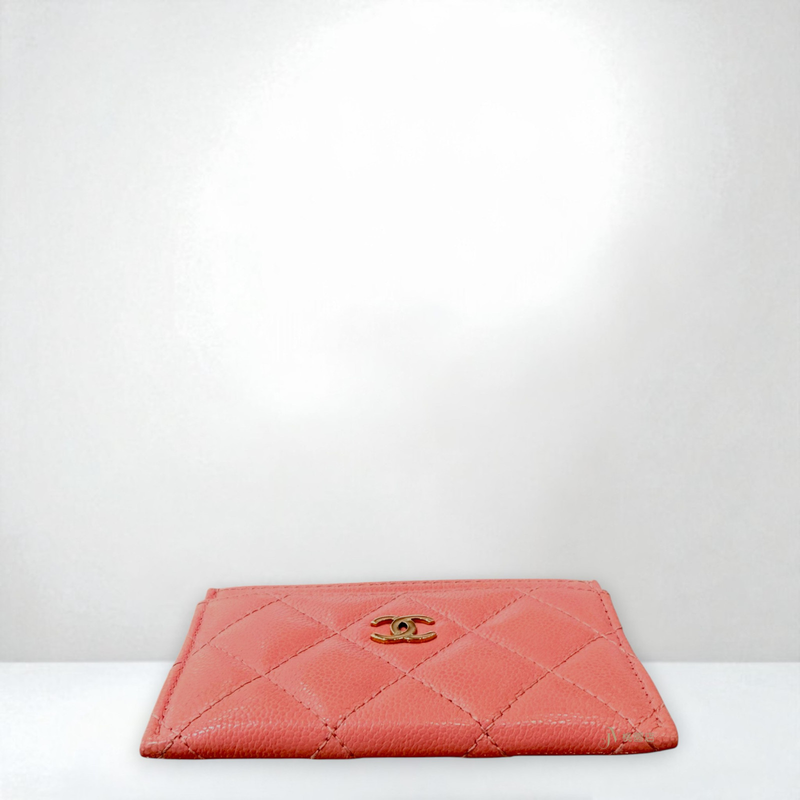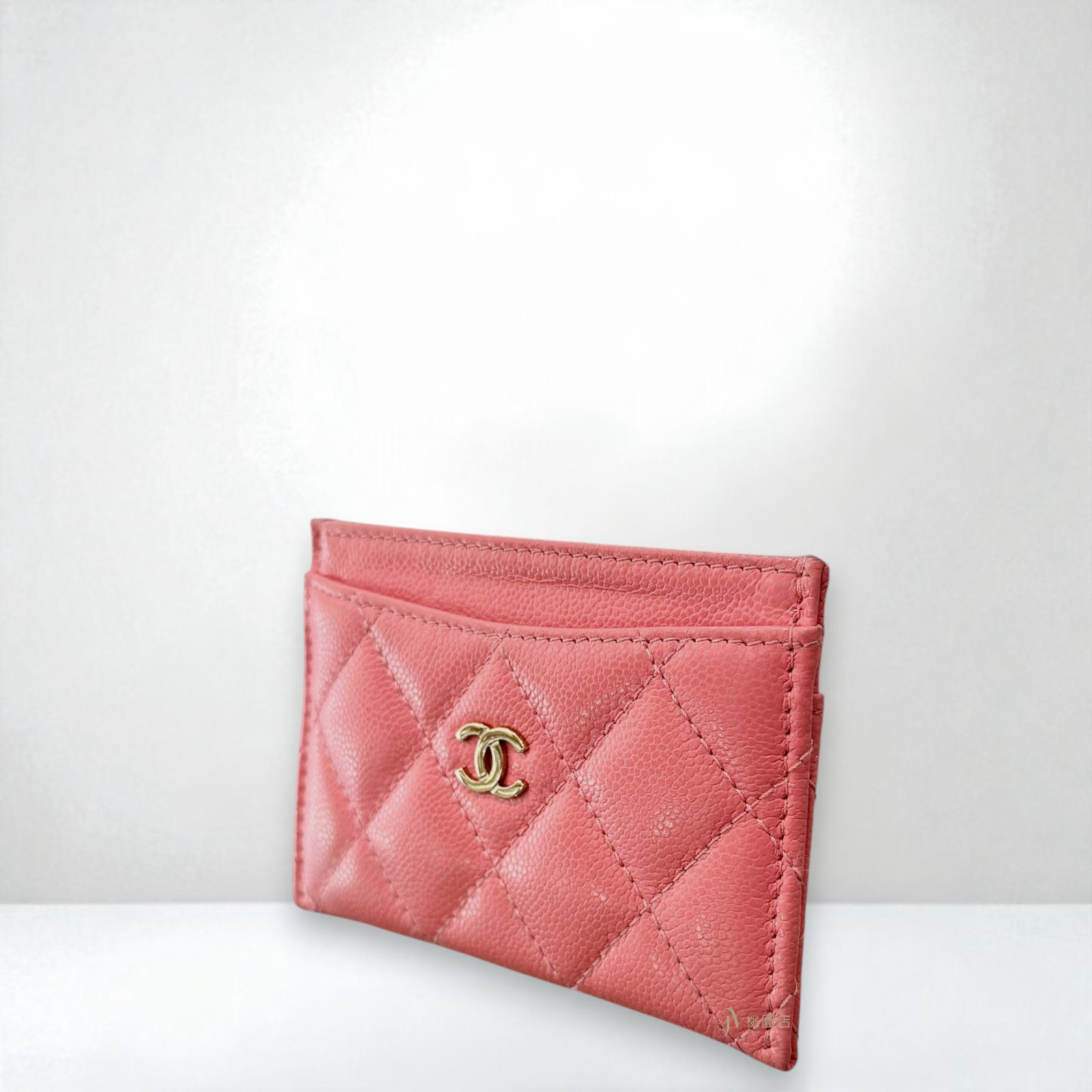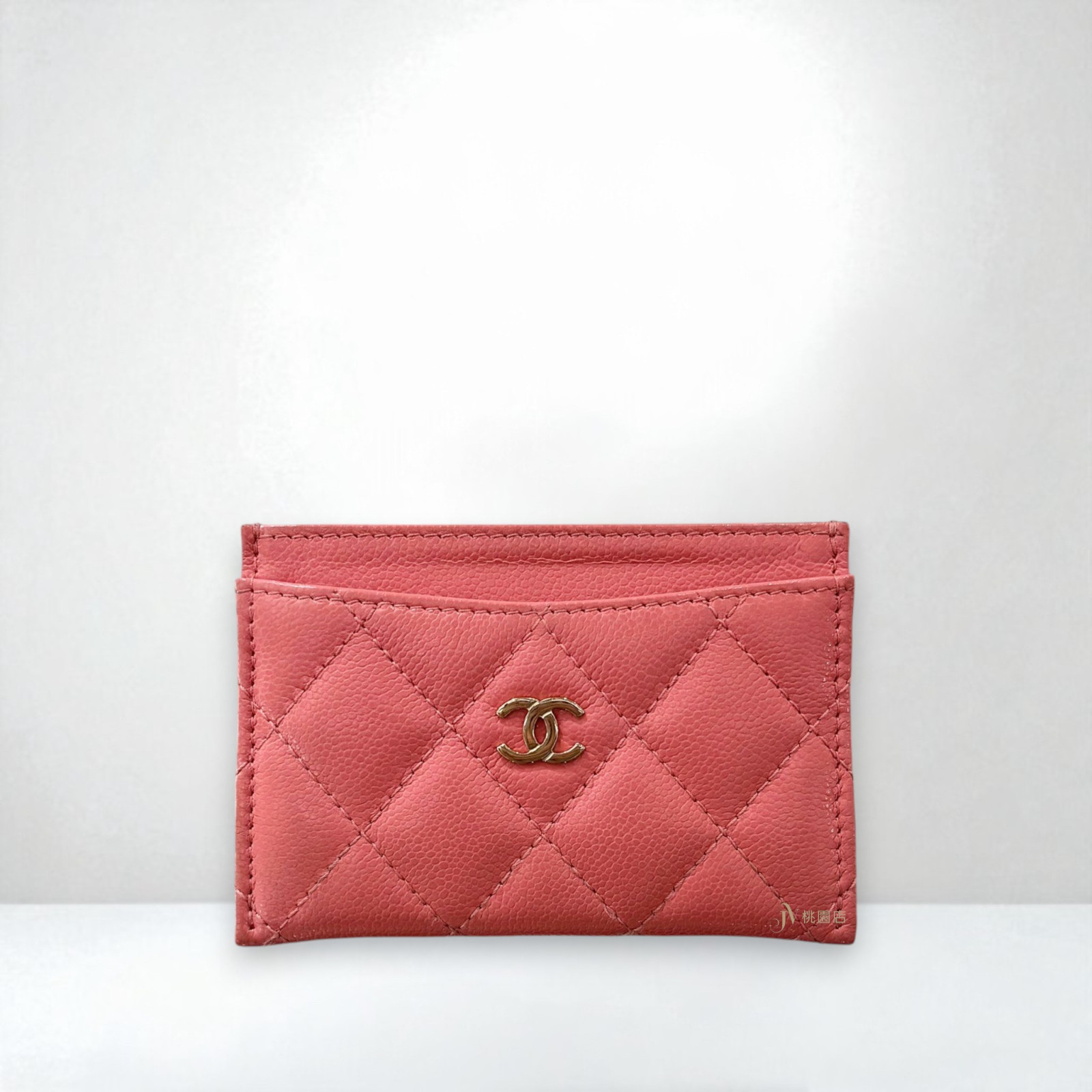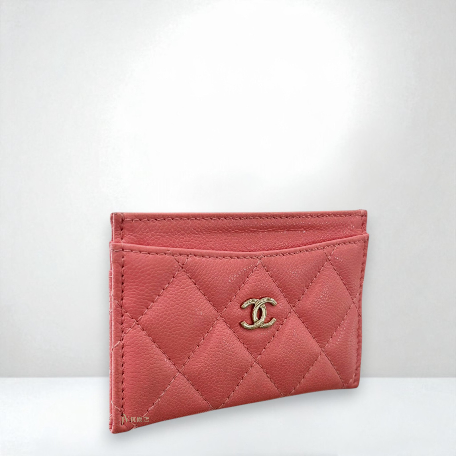 路徑: 首頁 / 精品賣場 / CHANEL / CHANEL-錢包及小型皮件 / JA2089 CHANEL卡夾 粉色荔枝牛皮金釦卡片夾 (桃園店)