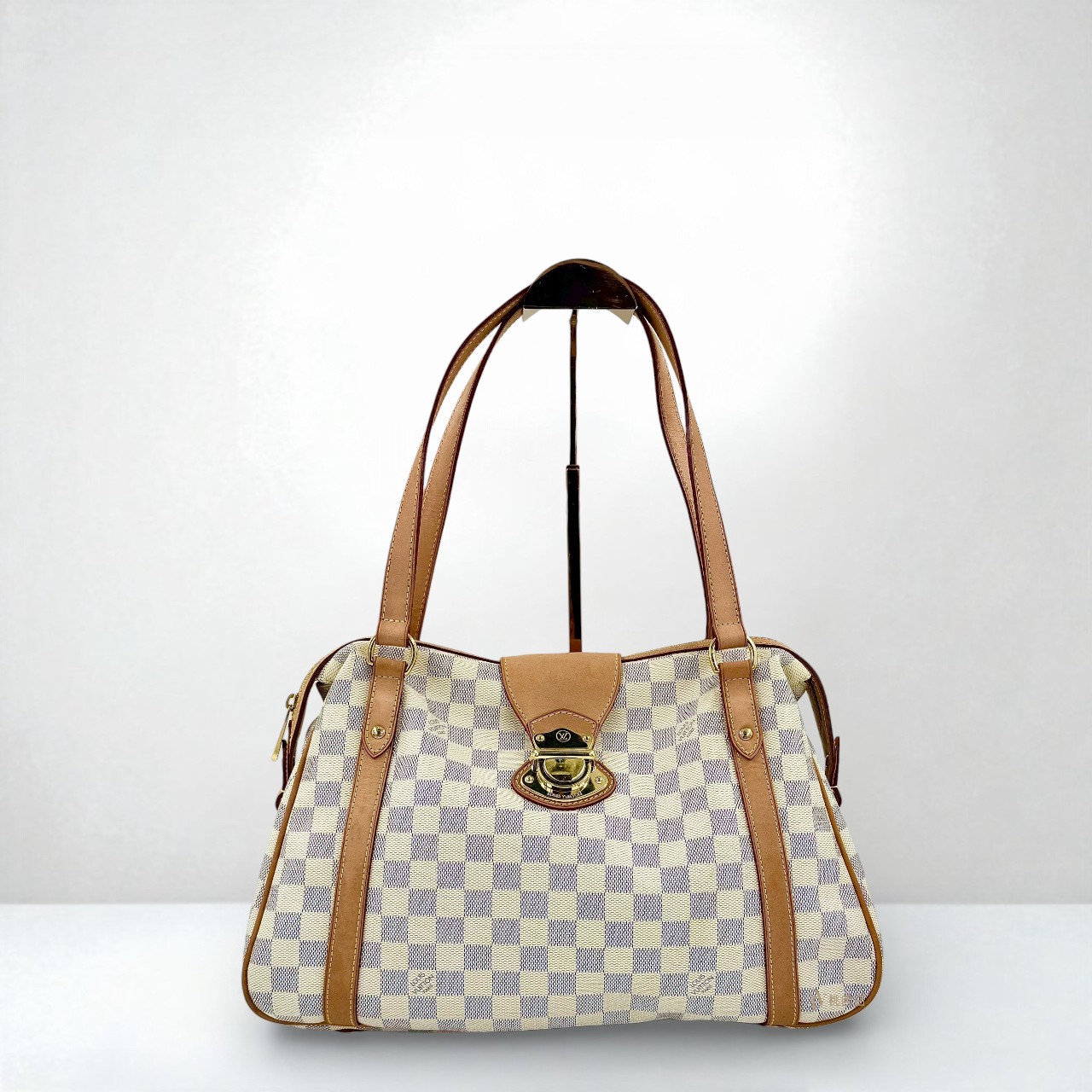 JA2107 LV包包 白棋盤格金釦曼哈頓雙耳肩背包N42220 (桃園店)