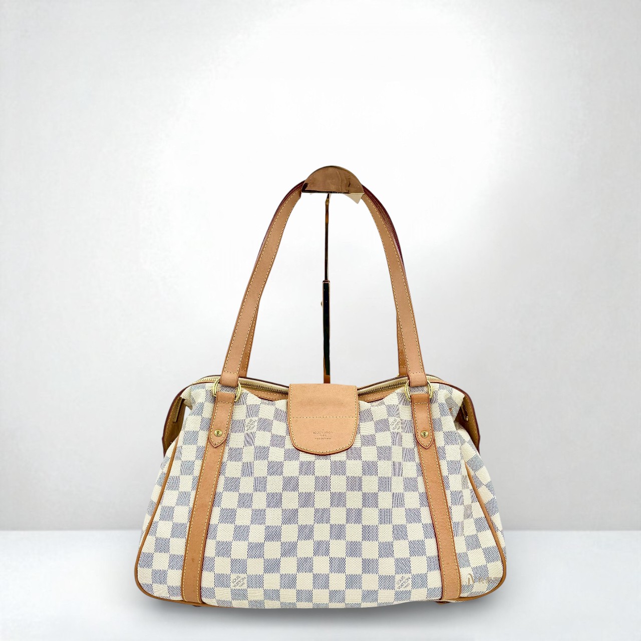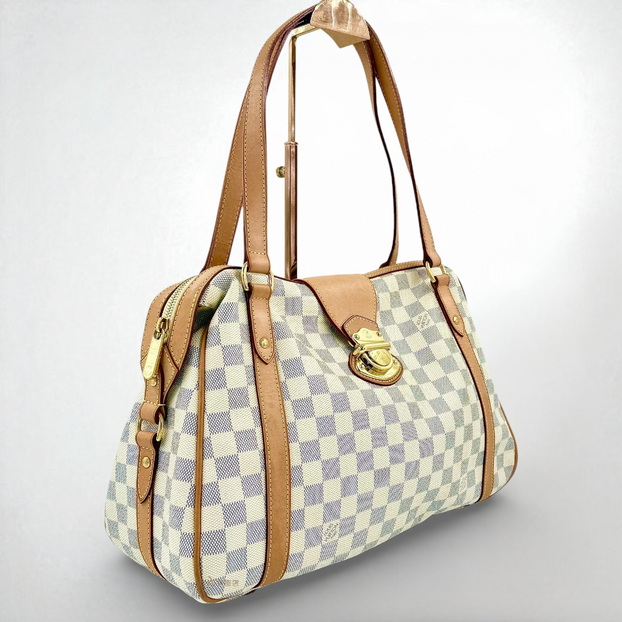 路徑: 首頁 / 精品賣場 / LV / LV-包款 / JA2107 LV包包 白棋盤格金釦曼哈頓雙耳肩背包N42220 (桃園店)...