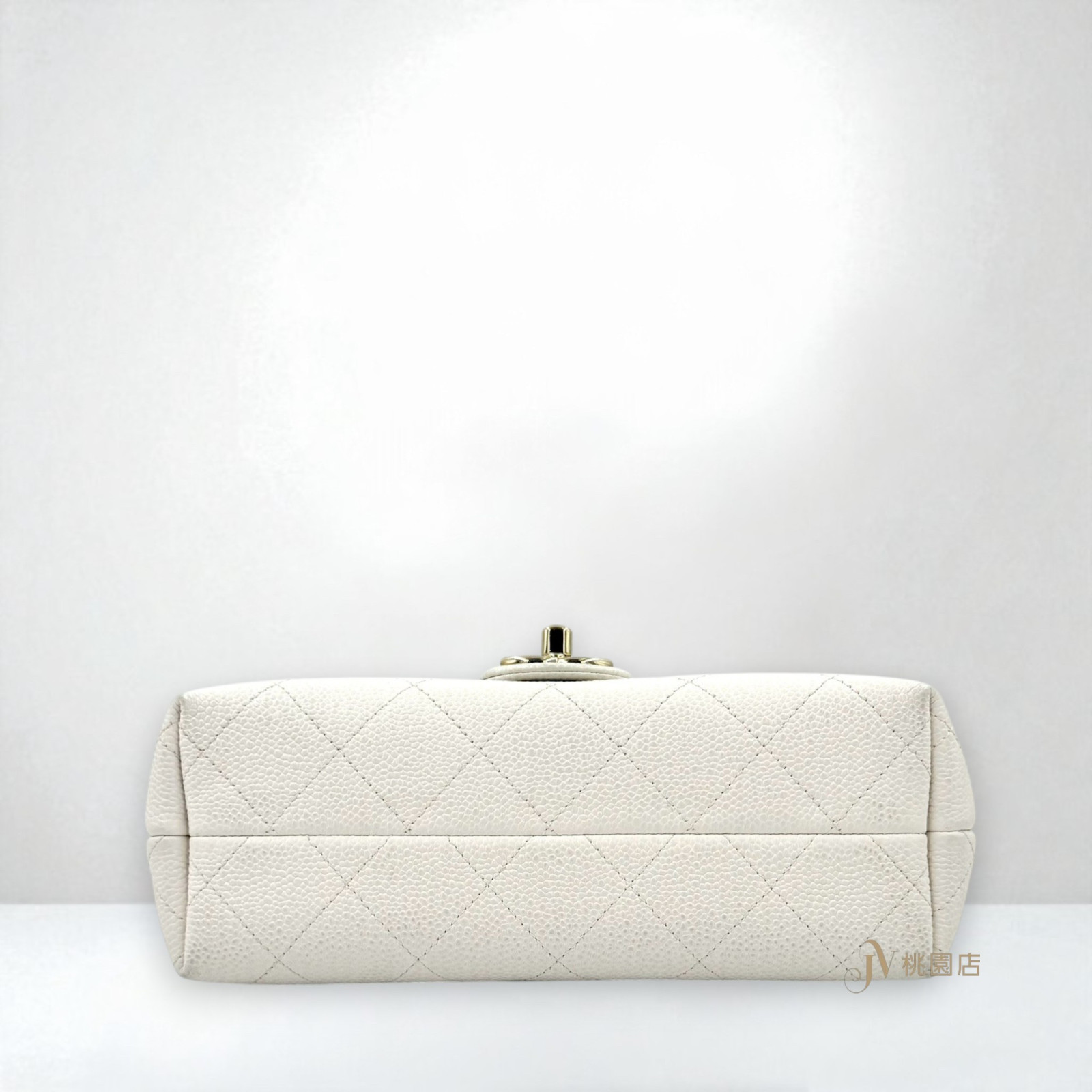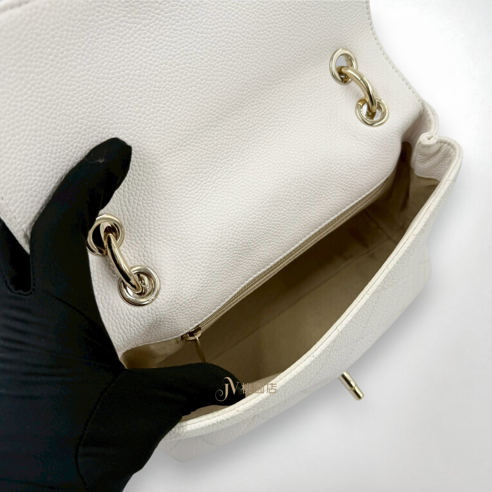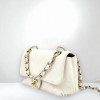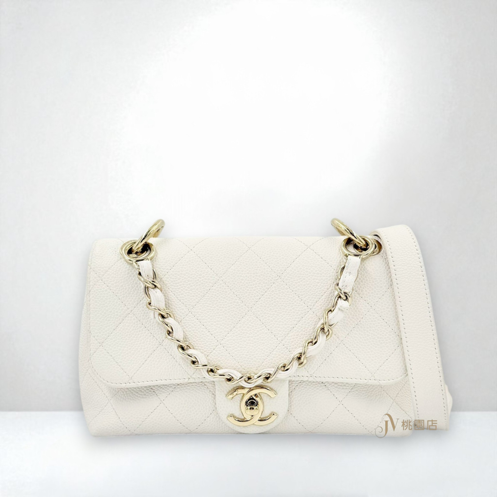 JA2127 CHANEL包包 白色荔枝牛皮淡金釦口蓋側背包 (桃園店)