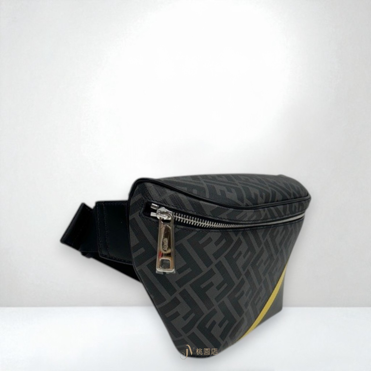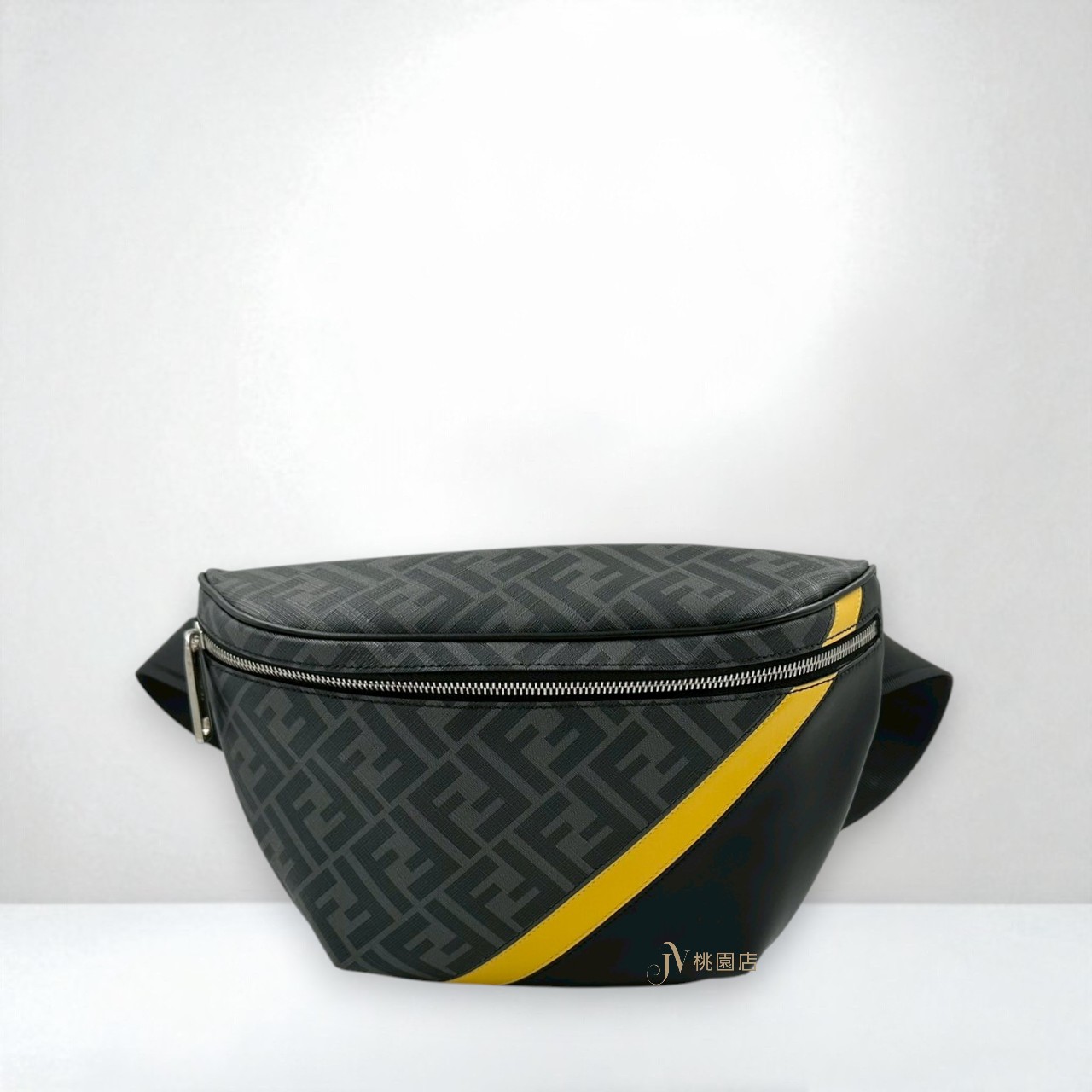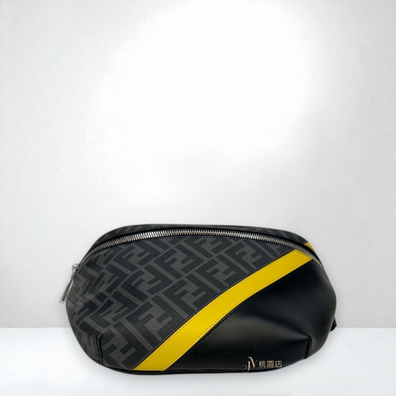 路徑: 首頁 / 精品賣場 / FENDI / FENDI-包款 / JA2193 FENDI包包 黑灰雙F拚黃斜線Diagonal胸口包7VA562 ALKA (桃園店)...