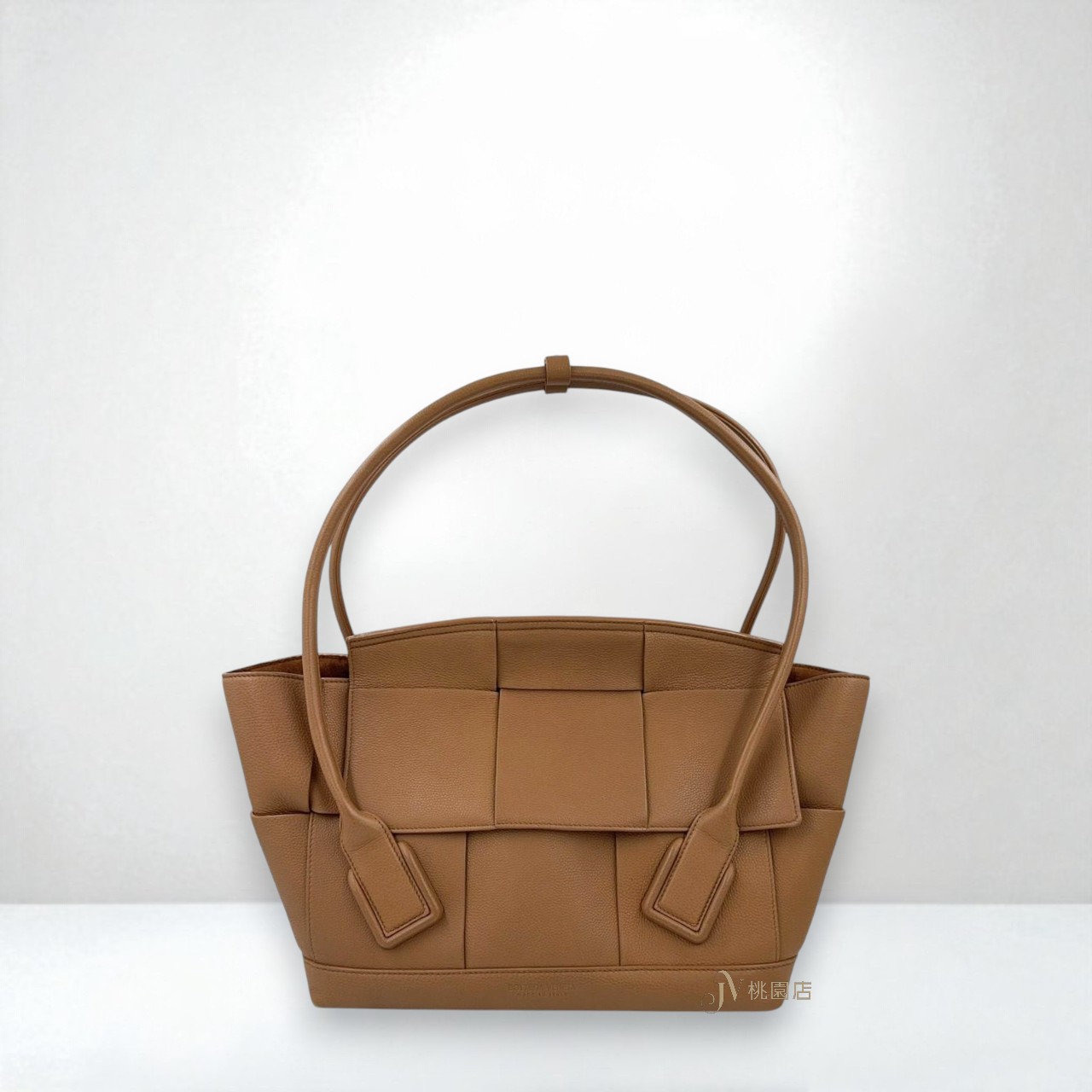 JA2242 BV包包 焦糖棕牛皮大編織Arco48下蓋肩背托特包(桃園店)