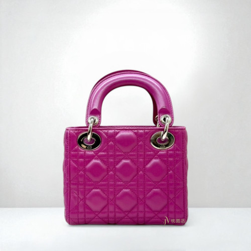 • JA2294 DIOR包包 玫紅色羊皮銀釦Mini Lady Dior黛妃包 (桃園店)