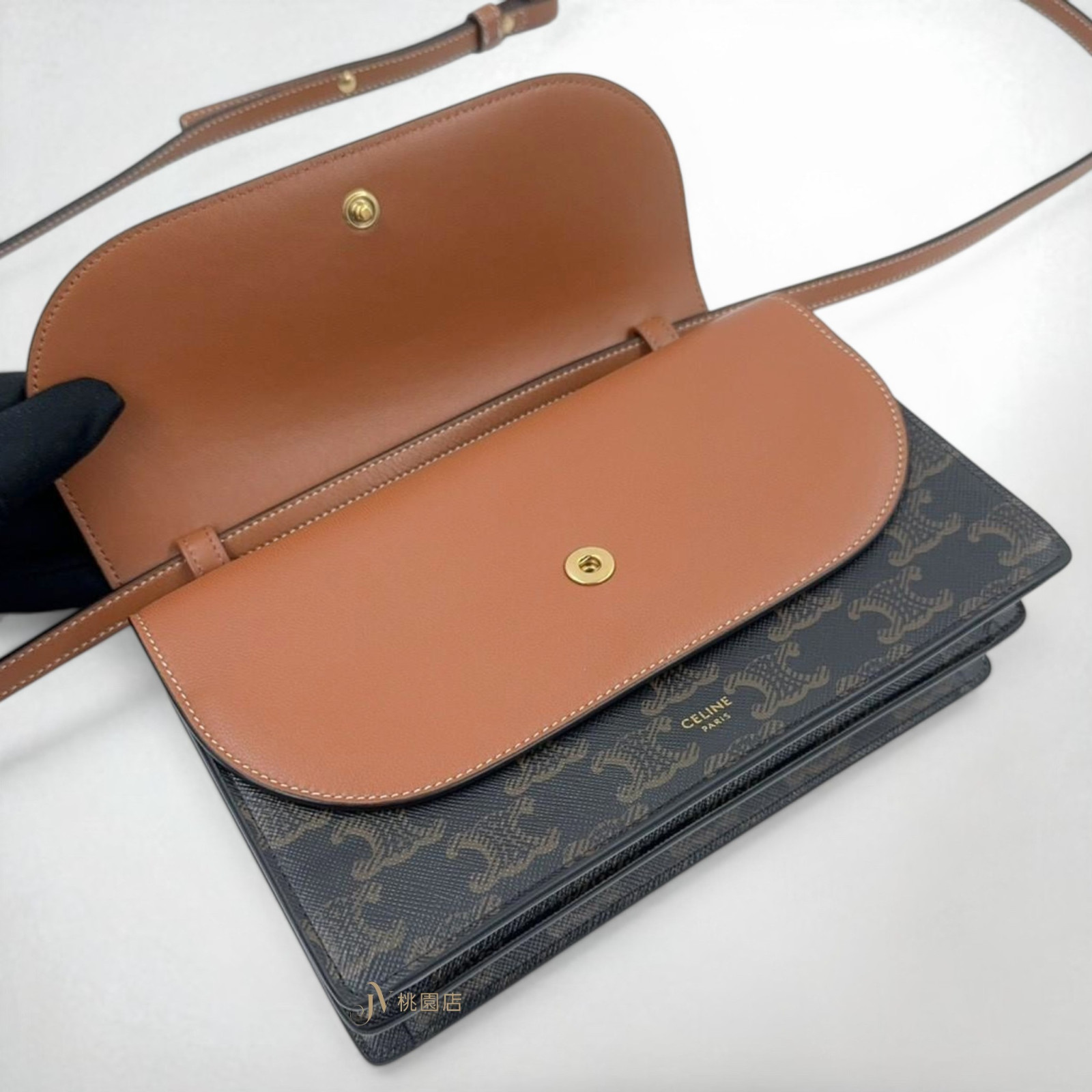 路徑: 首頁 / 精品賣場 / CELINE / CELINE-包款 / JA2302 Celine包包 原花凱旋門雙蓋woc斜背包10D852CG9.04LU (桃園店)...