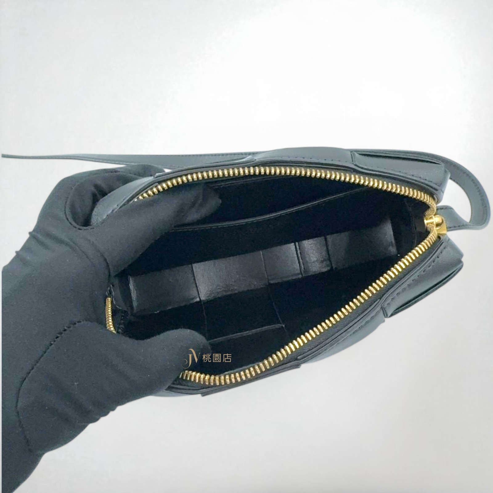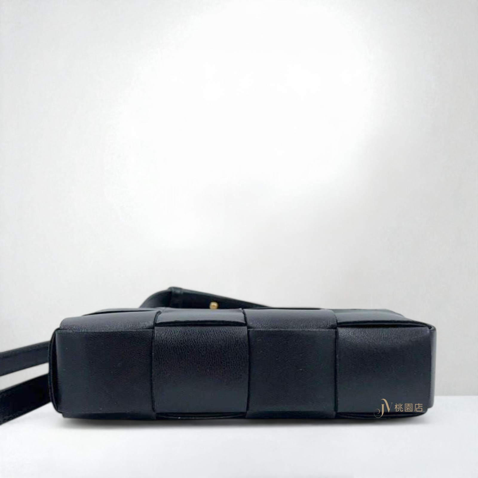 JA2303 BV包包 黑羊皮金釦Mini Cassette拉鍊側背包755031U (桃園店)