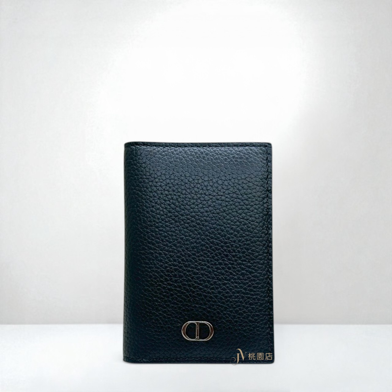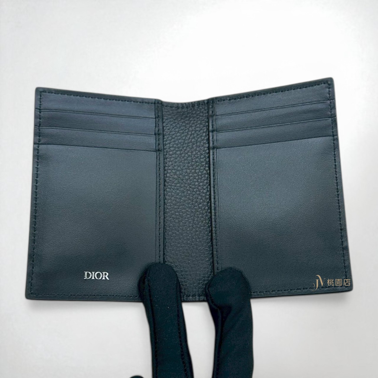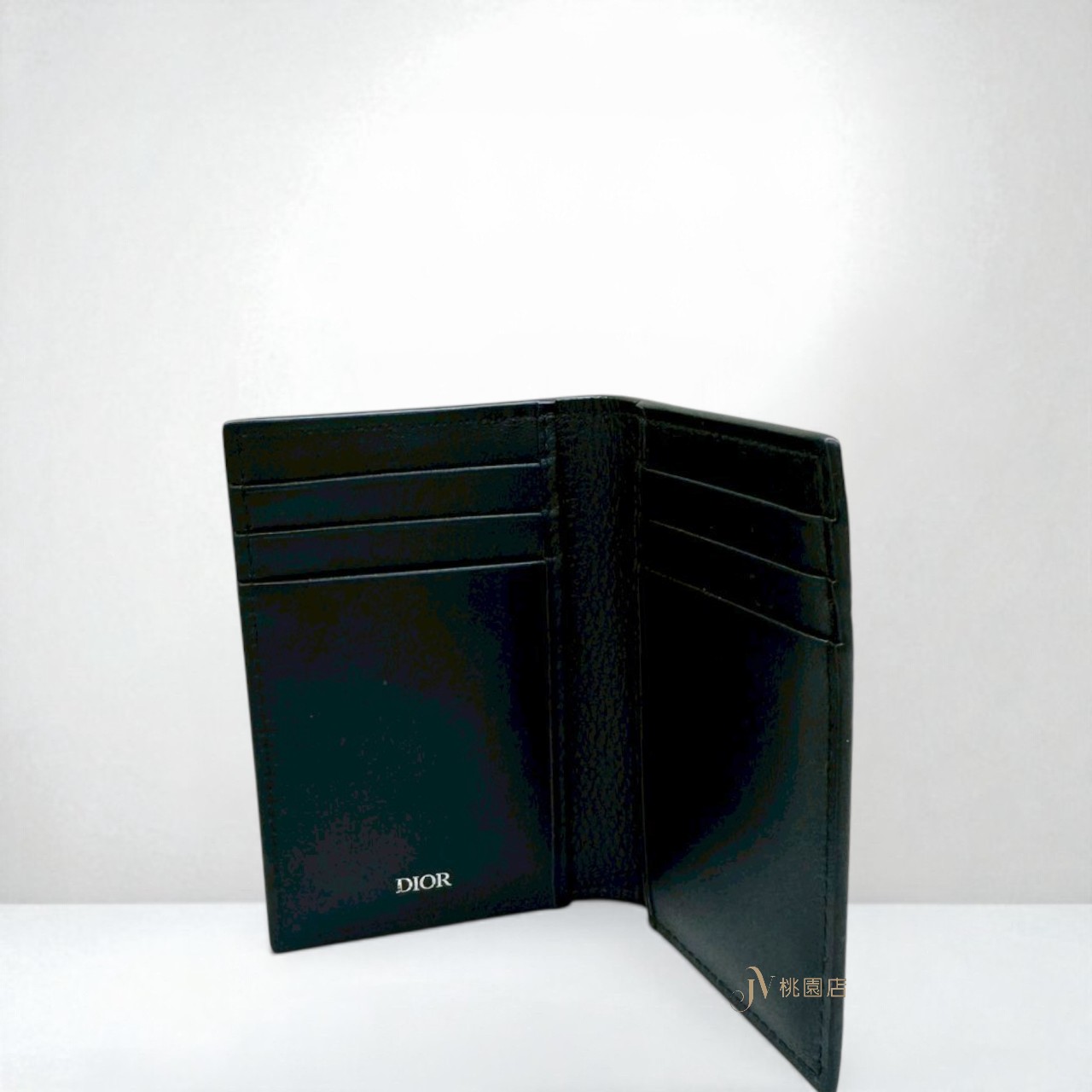 JA2306 DIOR卡夾 黑色粒紋牛皮ICON對開直立式卡夾2ESCH138CDI (桃園店)