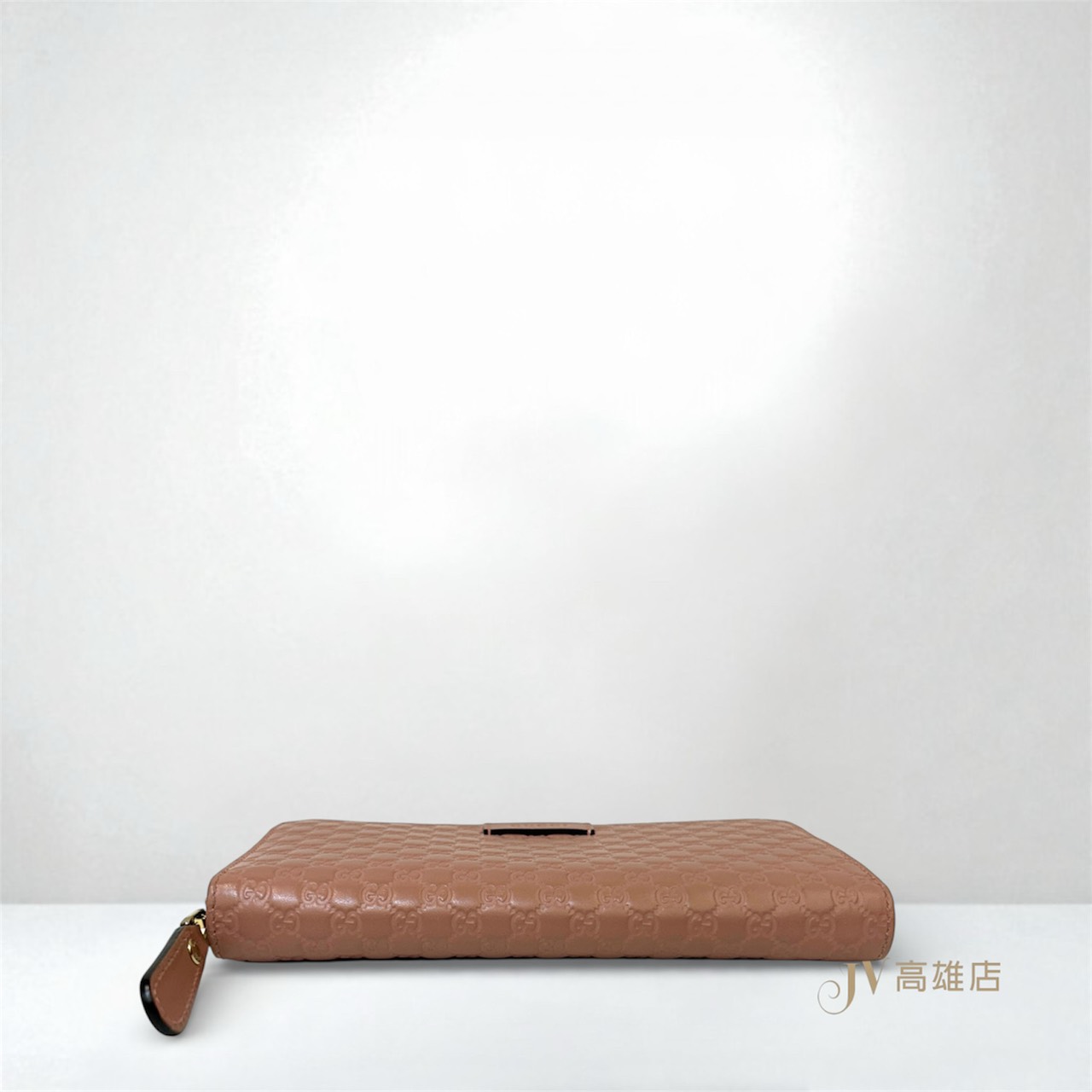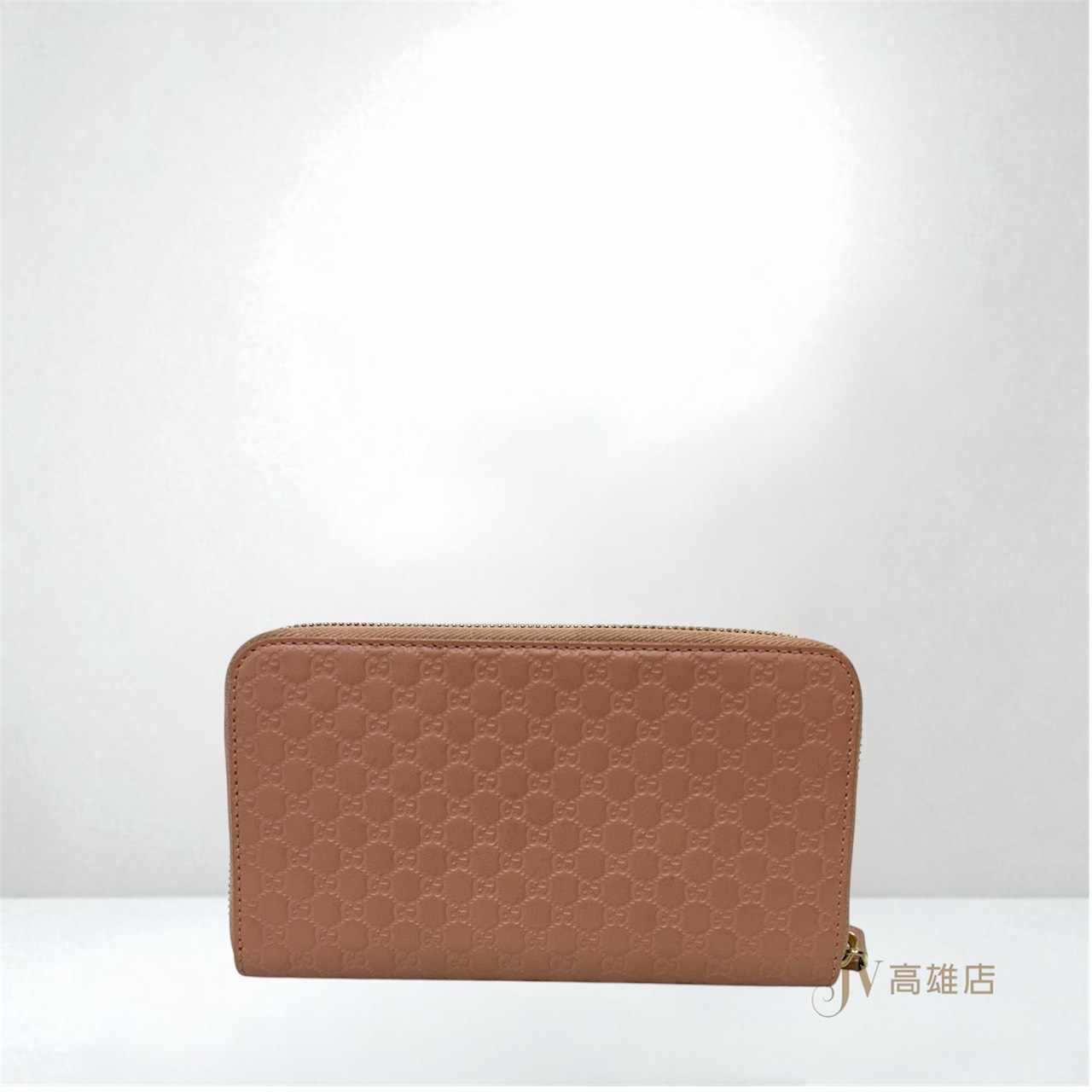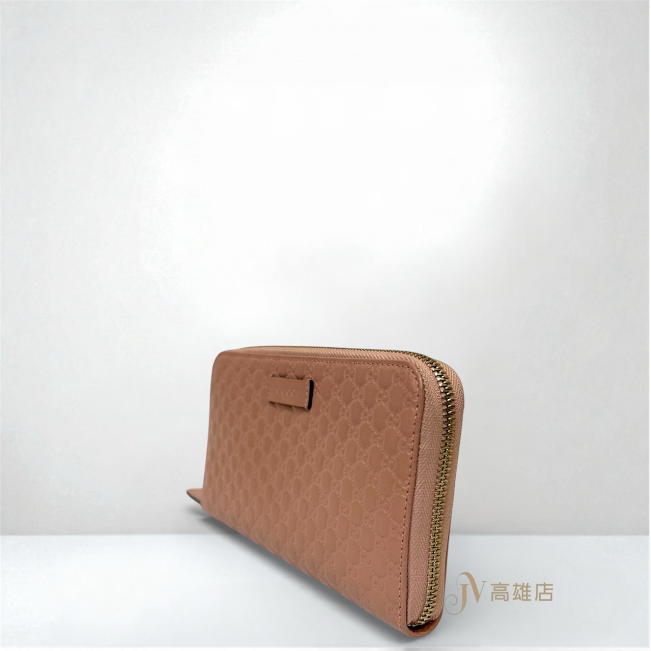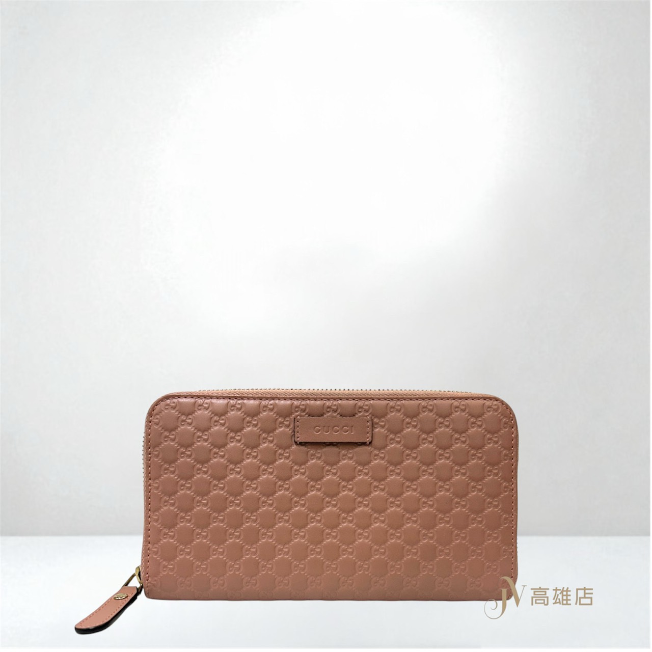 JK0188 Gucci皮夾 櫻花粉小G牛皮壓紋淡金釦12卡ㄇ拉長夾(高雄店)