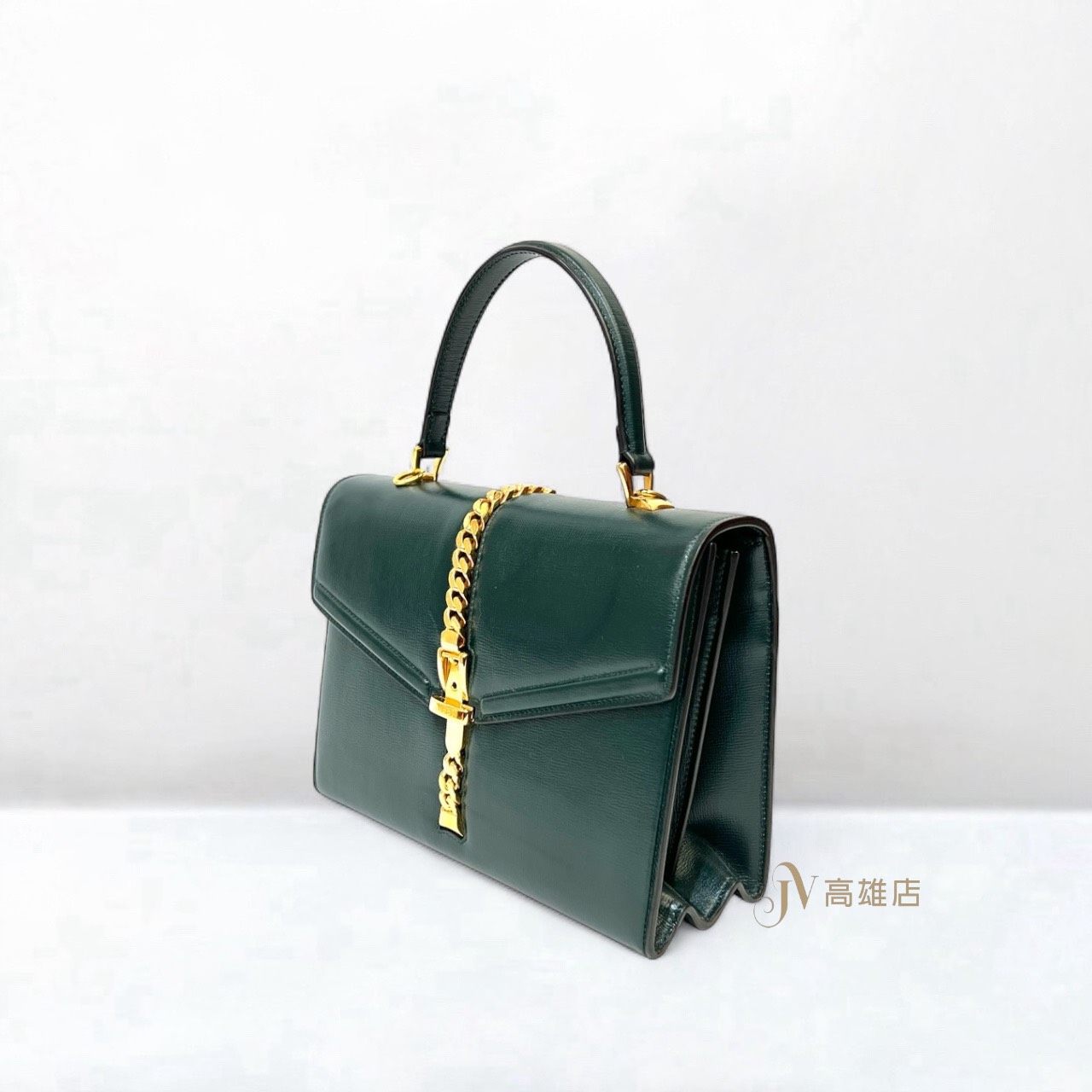 JK0363 Gucci包包綠牛皮金釦下蓋單手提斜背包小Sylvie1969(喬萱高雄店)