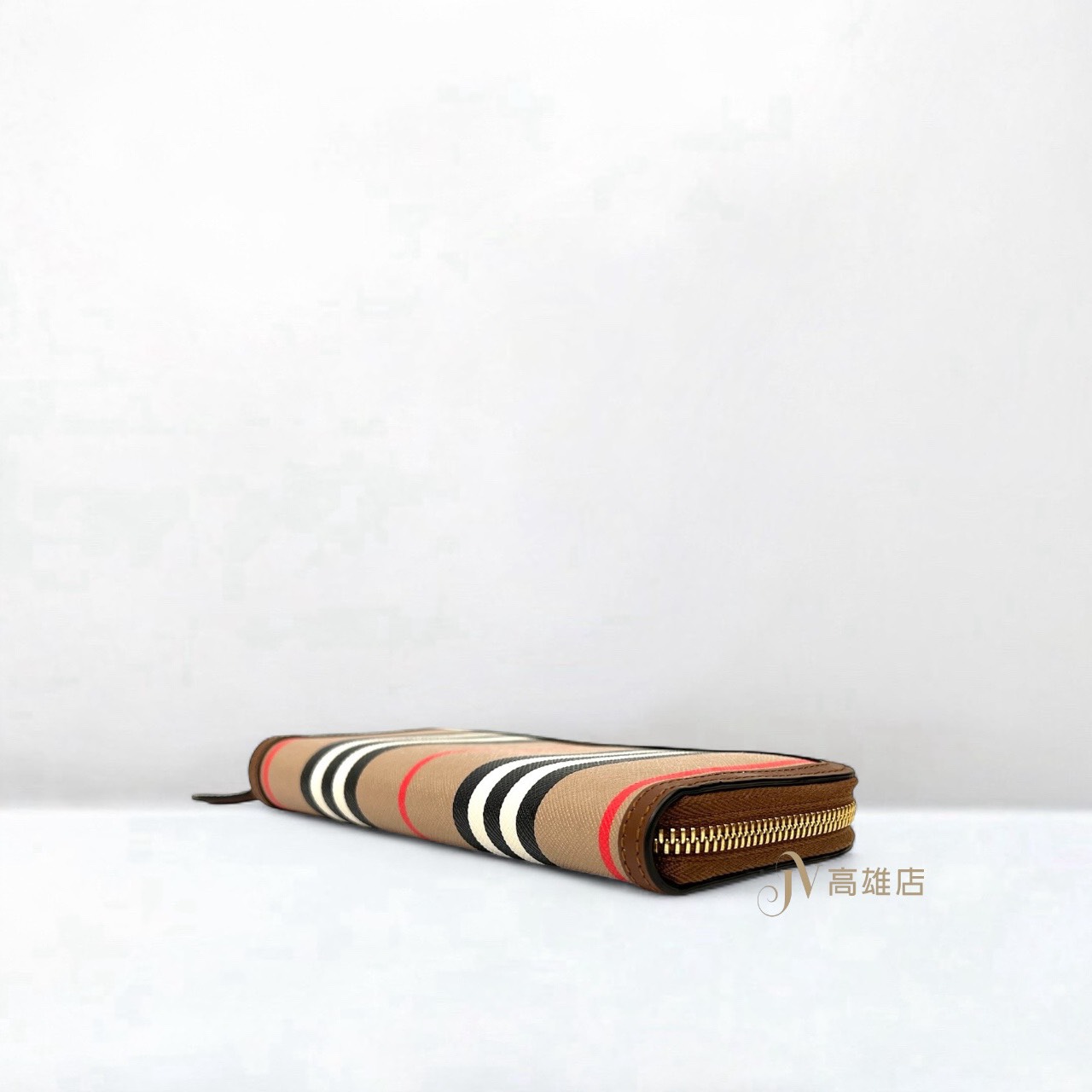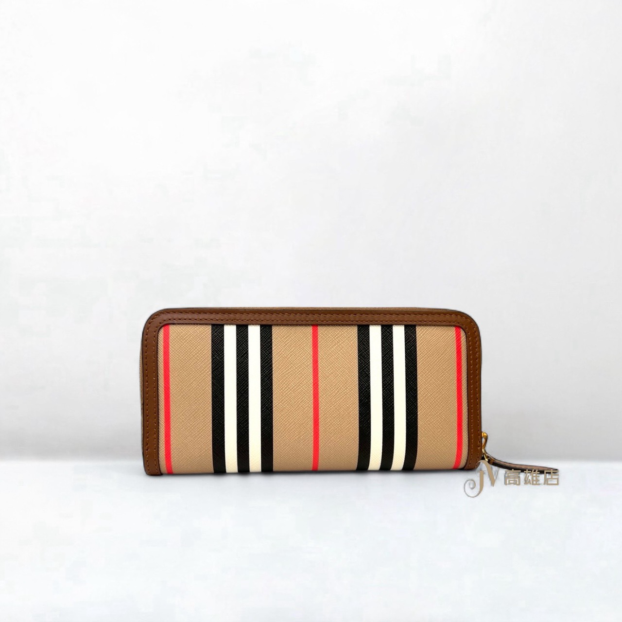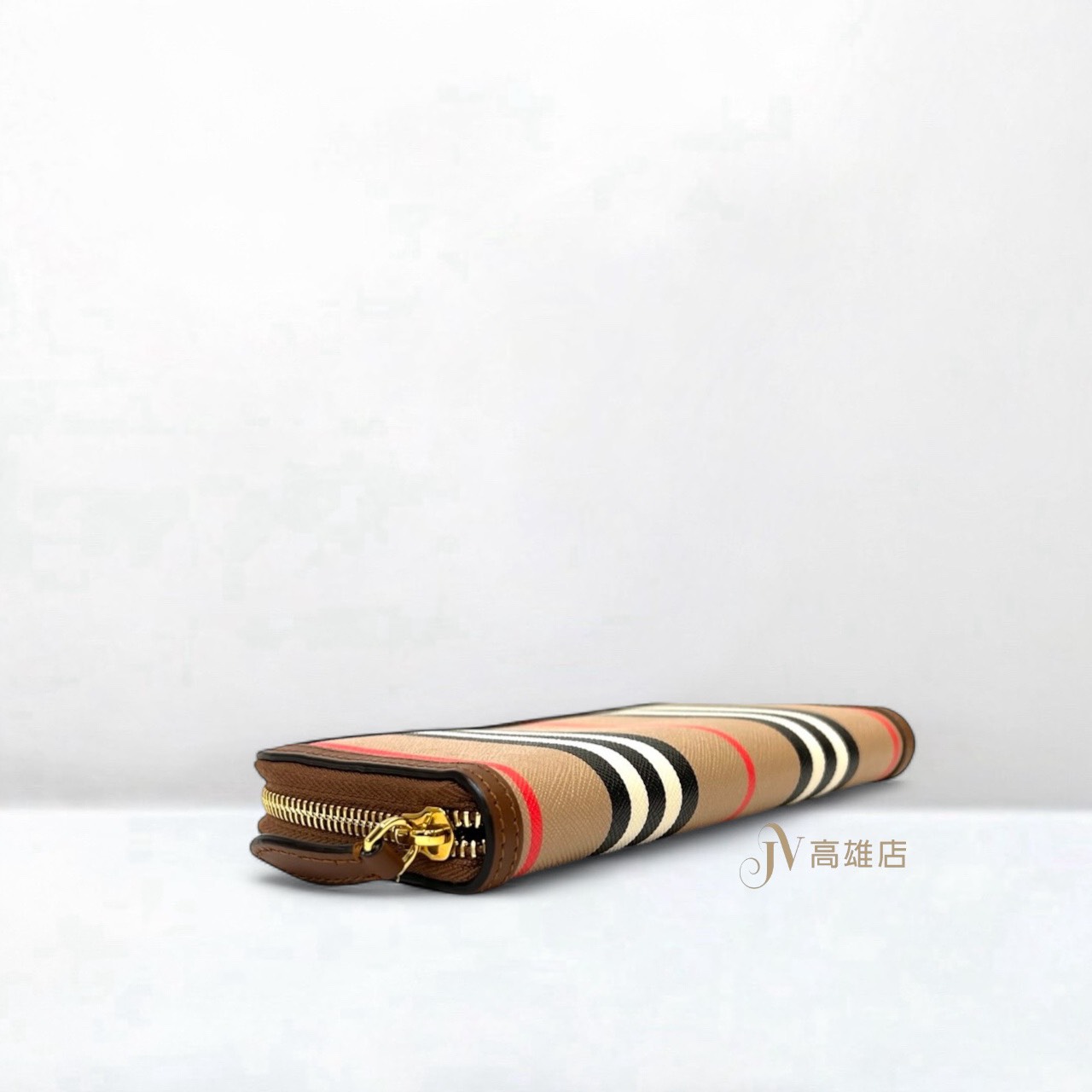 JK1191 Burberry皮夾 PVC咖牛皮邊金釦6卡ㄇ拉長夾8073079(喬萱高雄店)