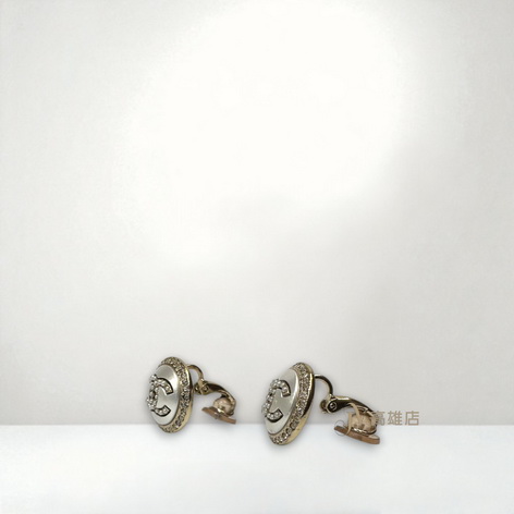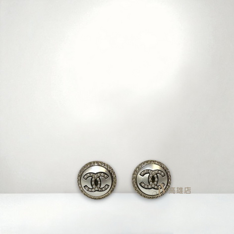 JK1222 Chanel耳環 灰白珍珠雙C Logo外圈鑽圓形淡金釦耳夾式耳環(高雄店)